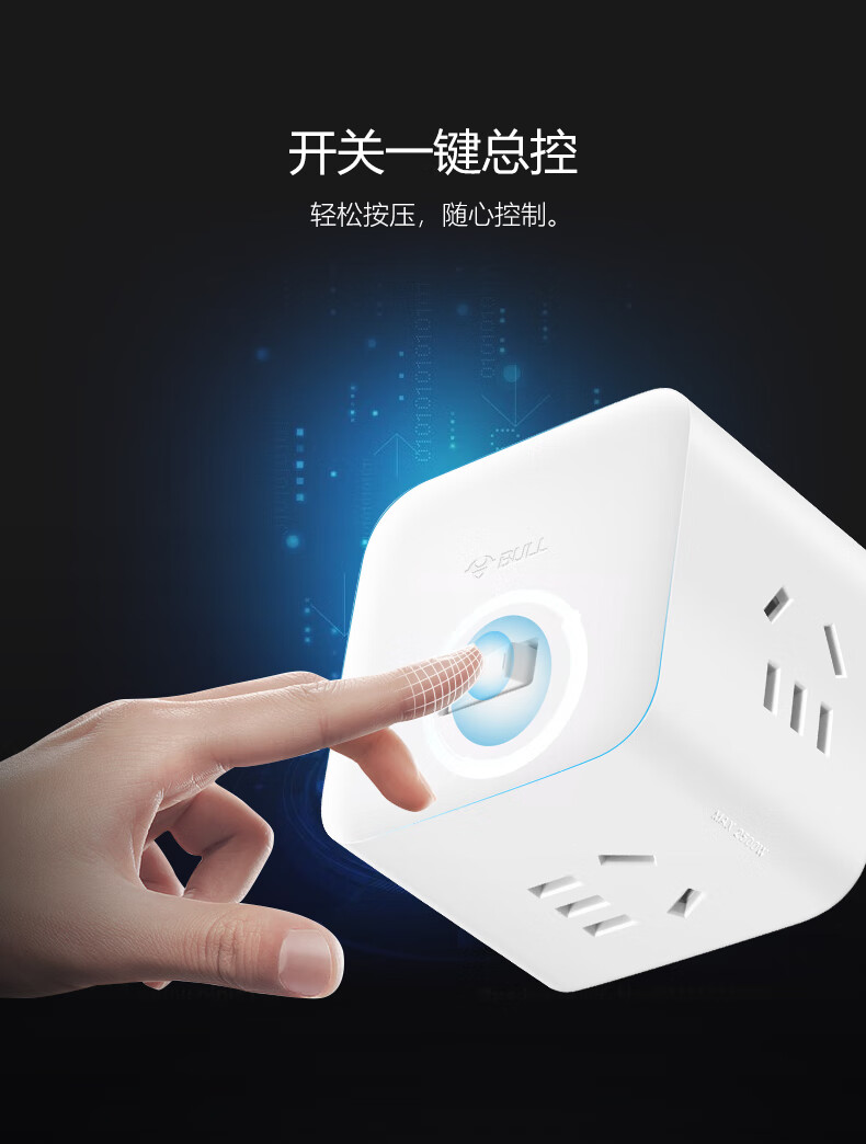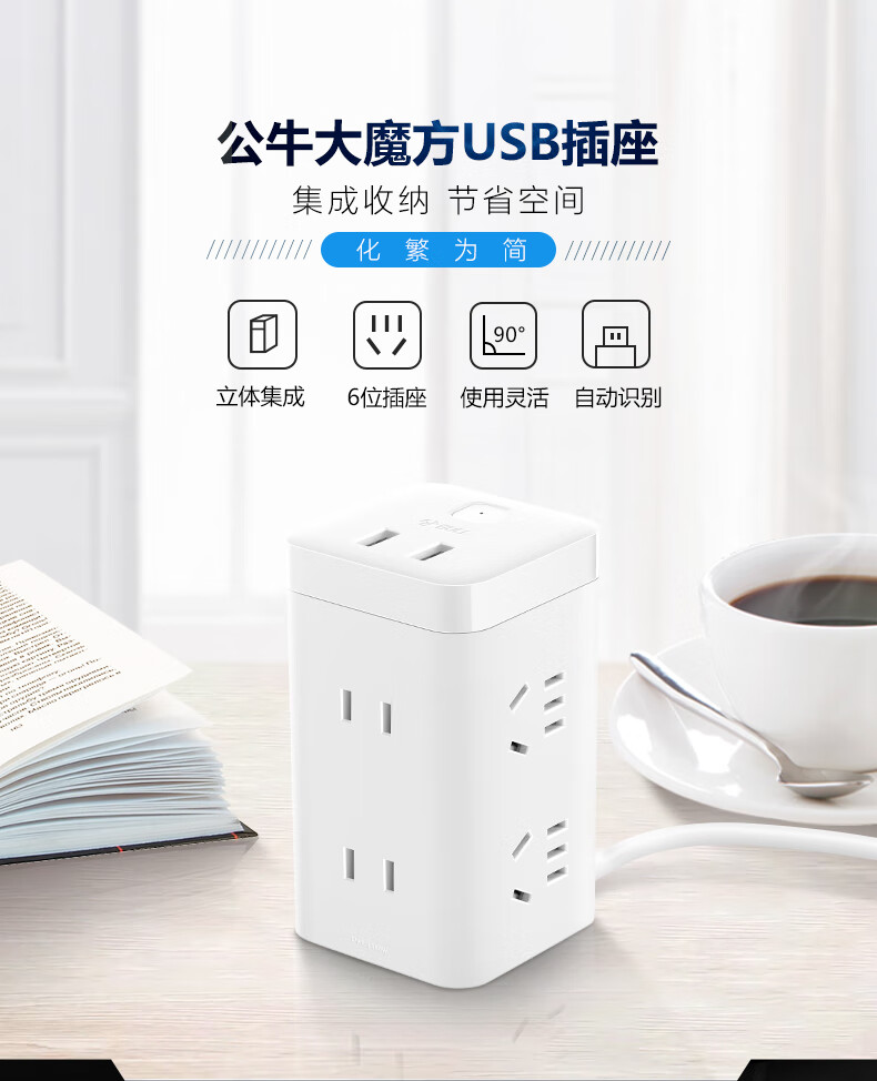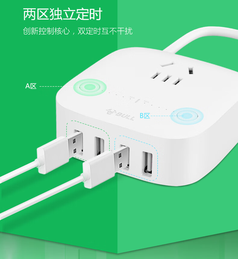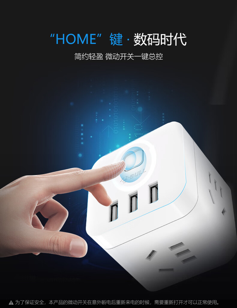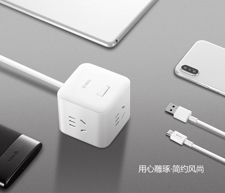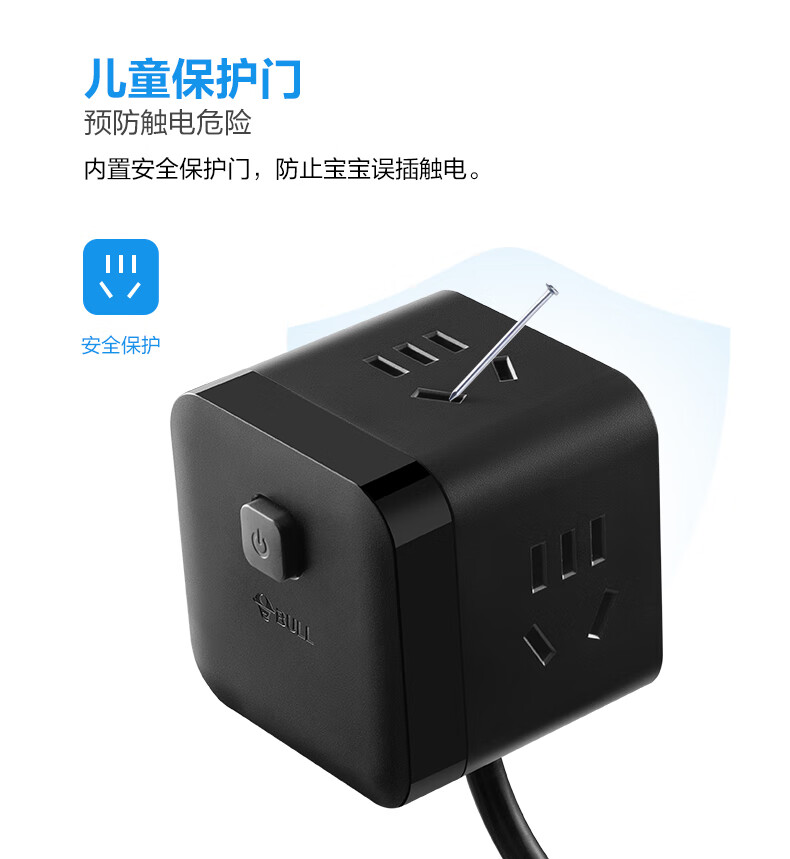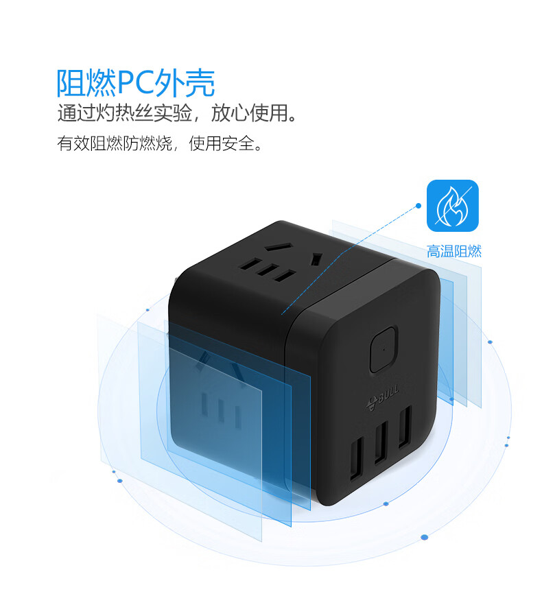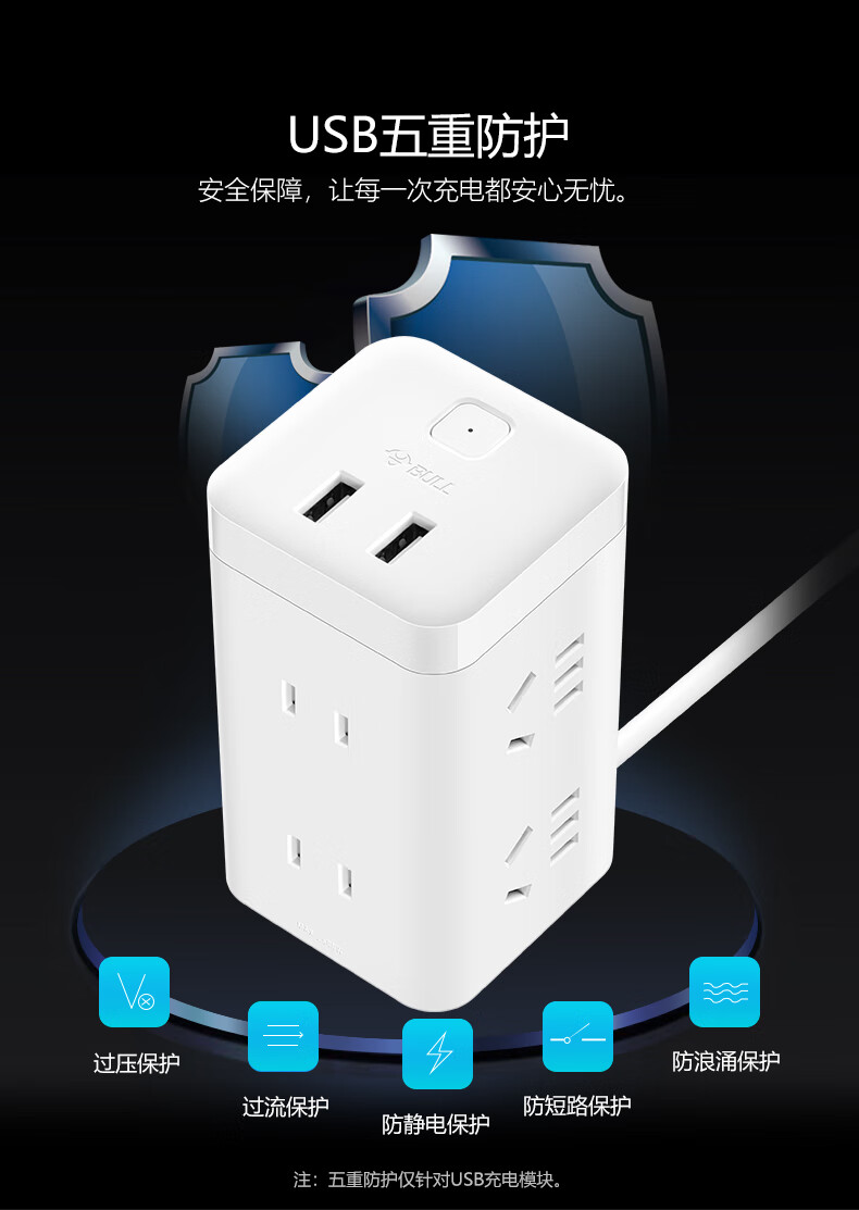 BULL Rubik's Cube Smart USB Socket Socket/Smart USB Socket/Plug Strip/Plug Board 3 Positions + 3 USB Total Control 1.5 Meters White-U303U