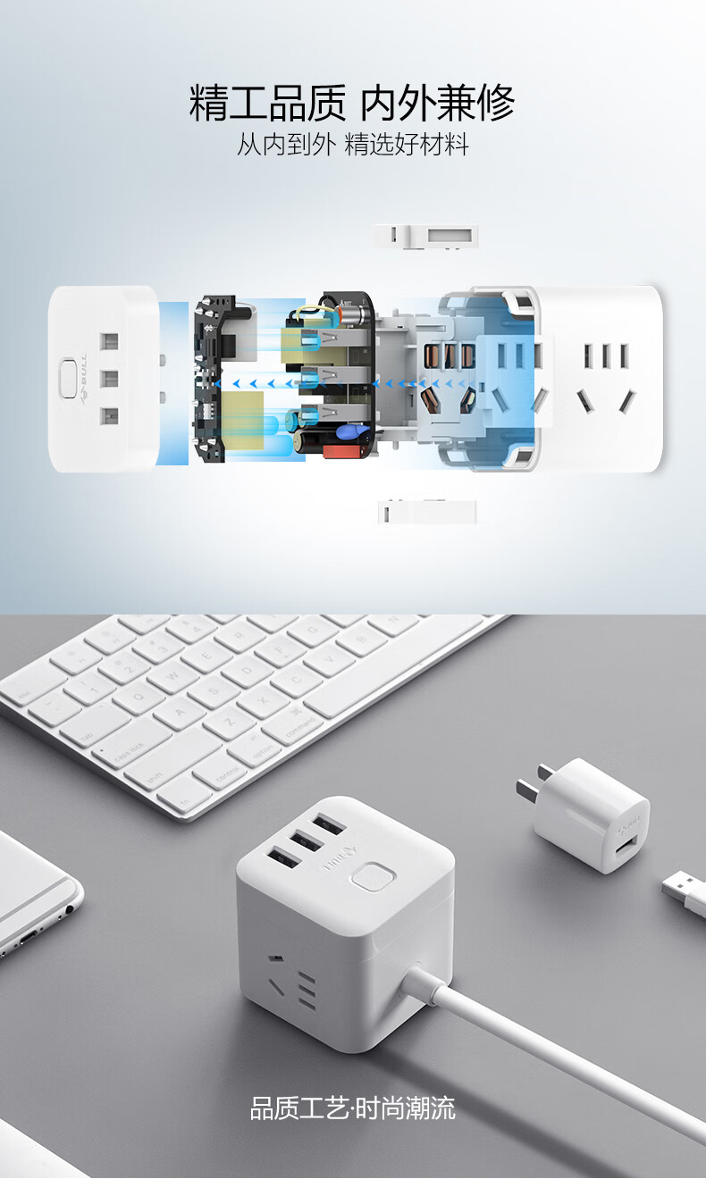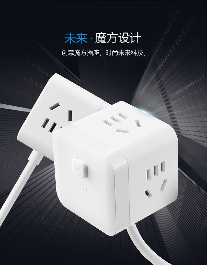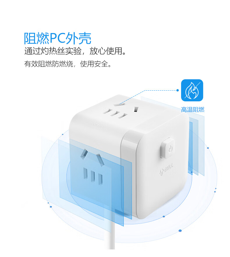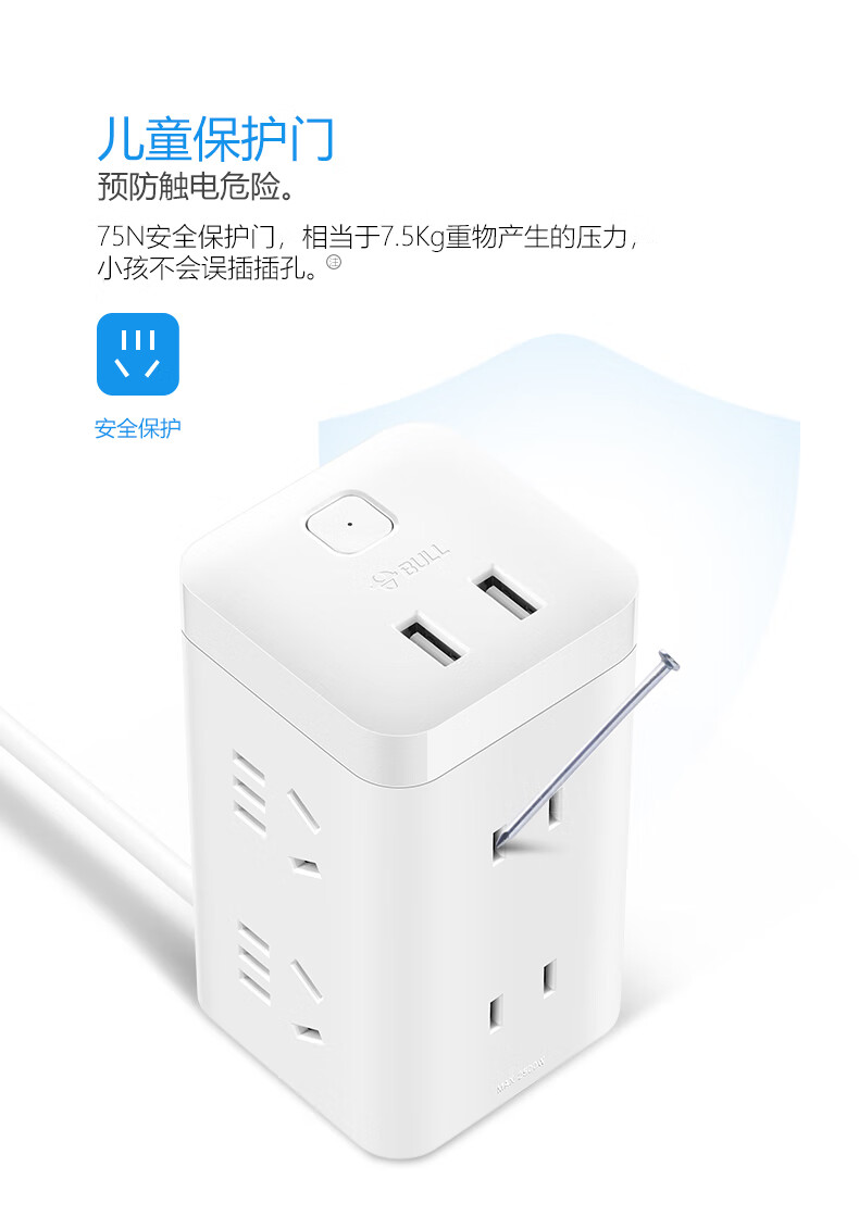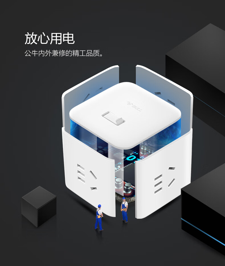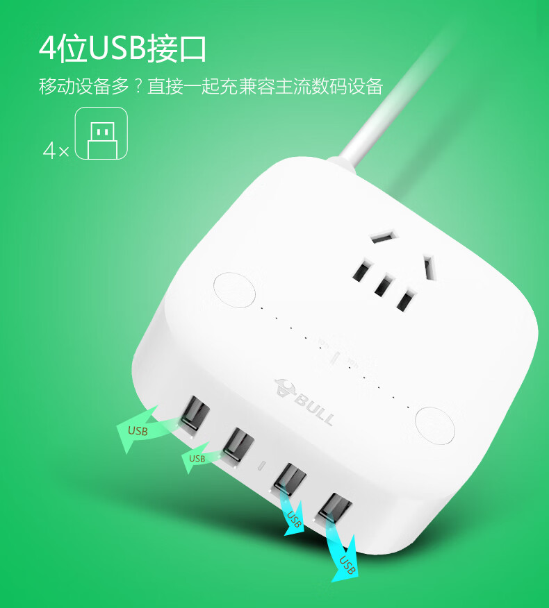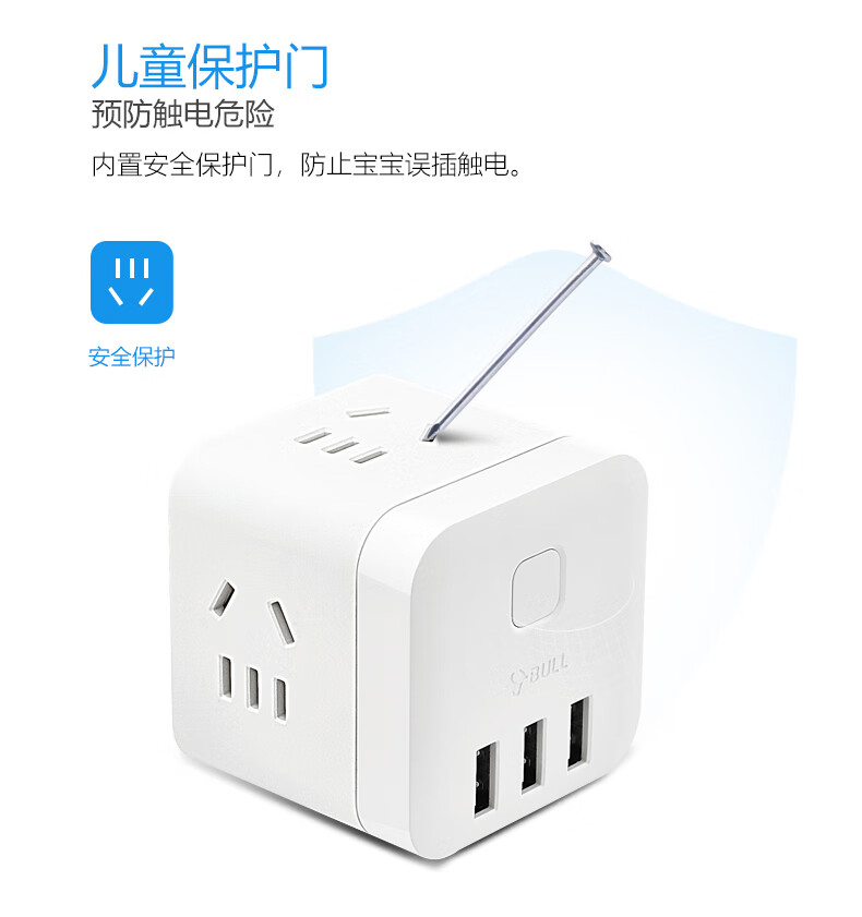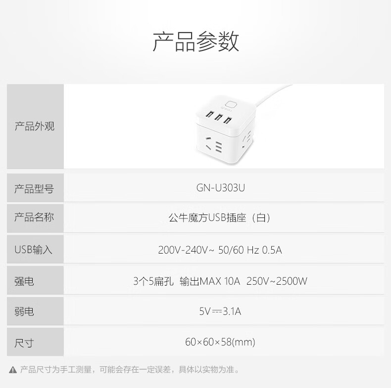 BULL Rubik's Cube Smart USB Socket Socket/Smart USB Socket/Plug Strip/Plug Board 3 Positions + 3 USB Total Control 1.5 Meters White-U303U