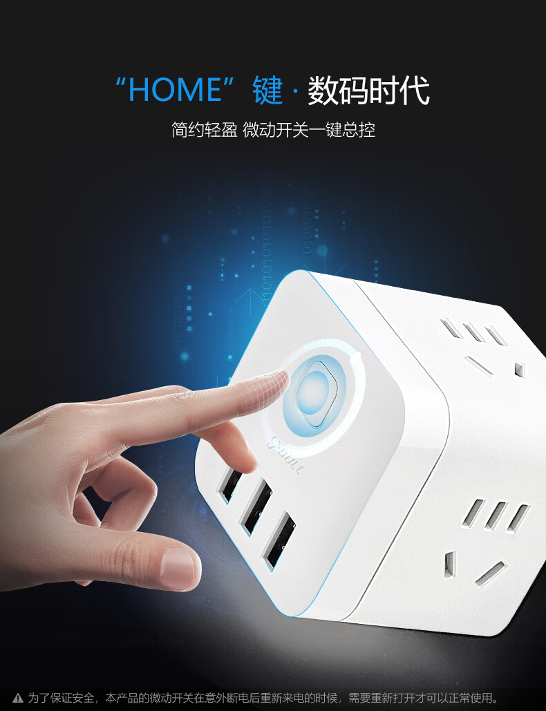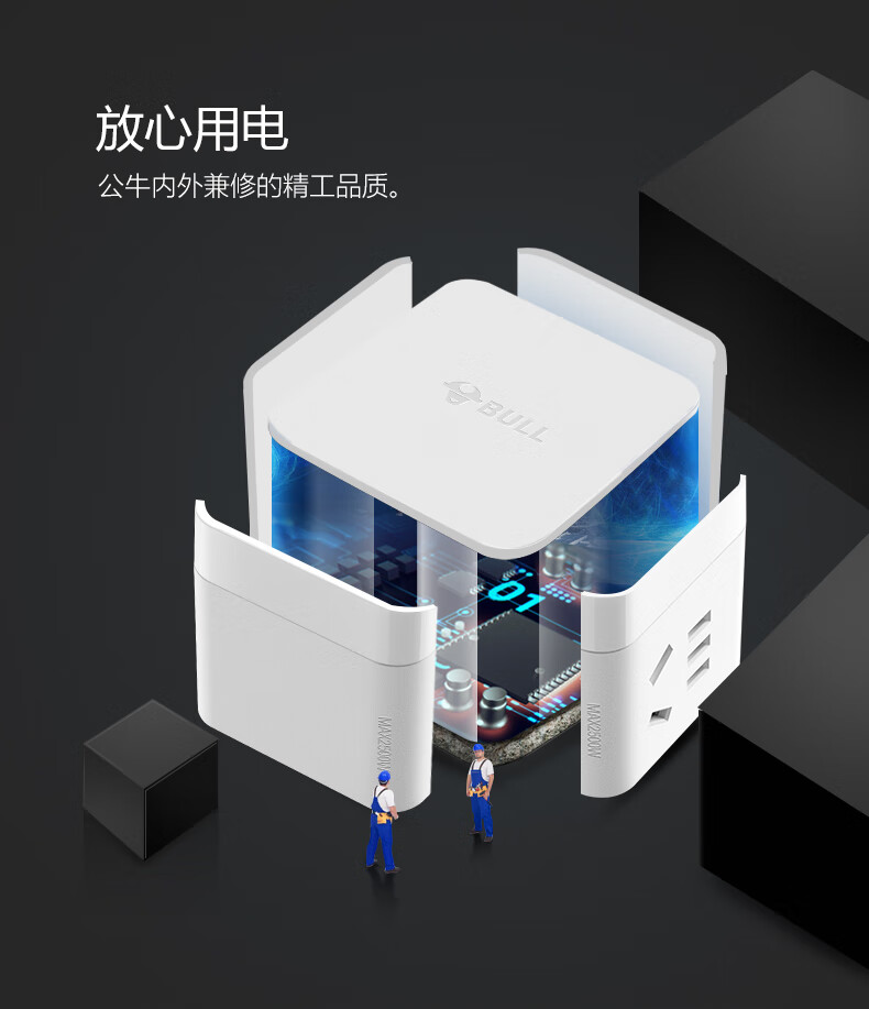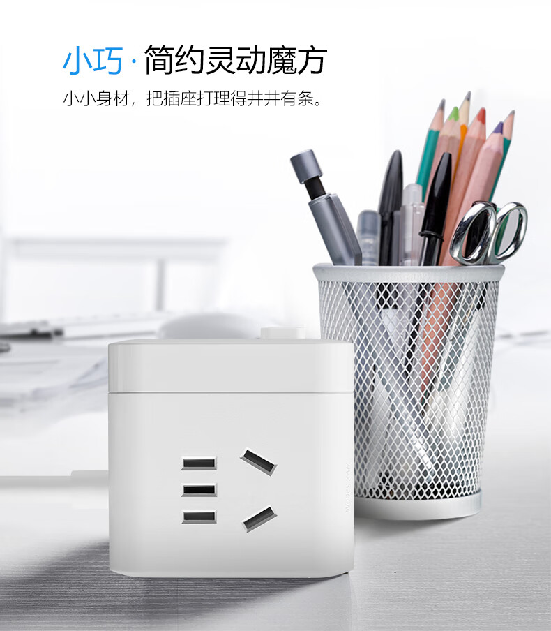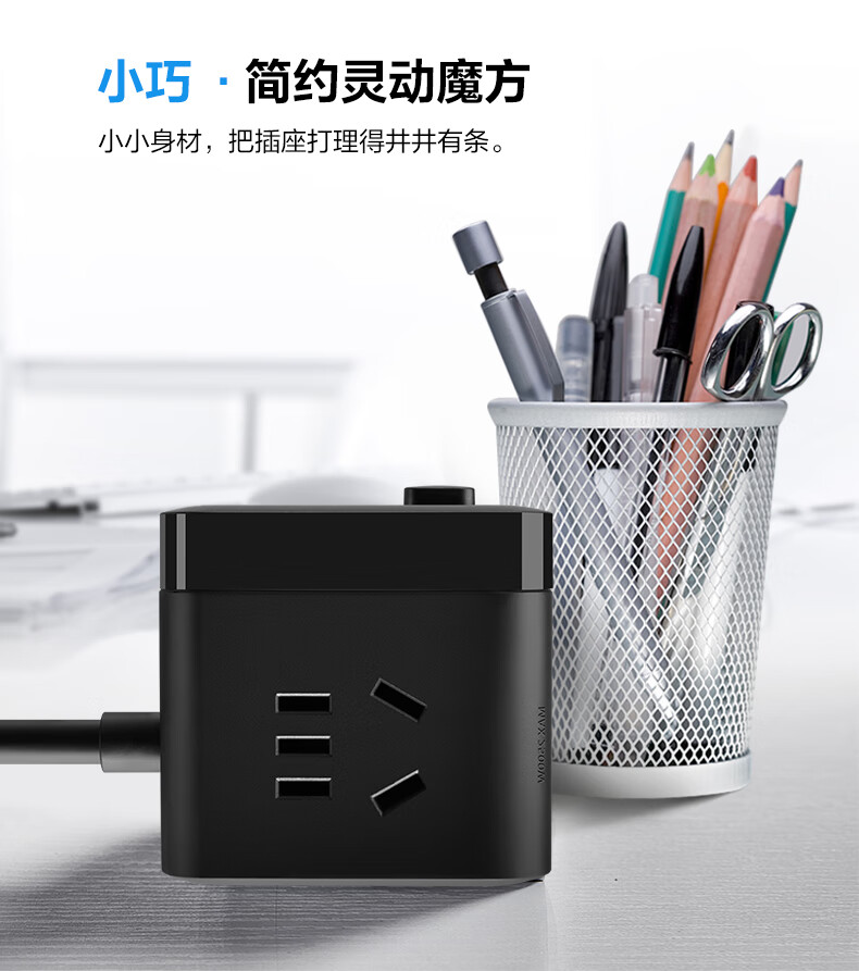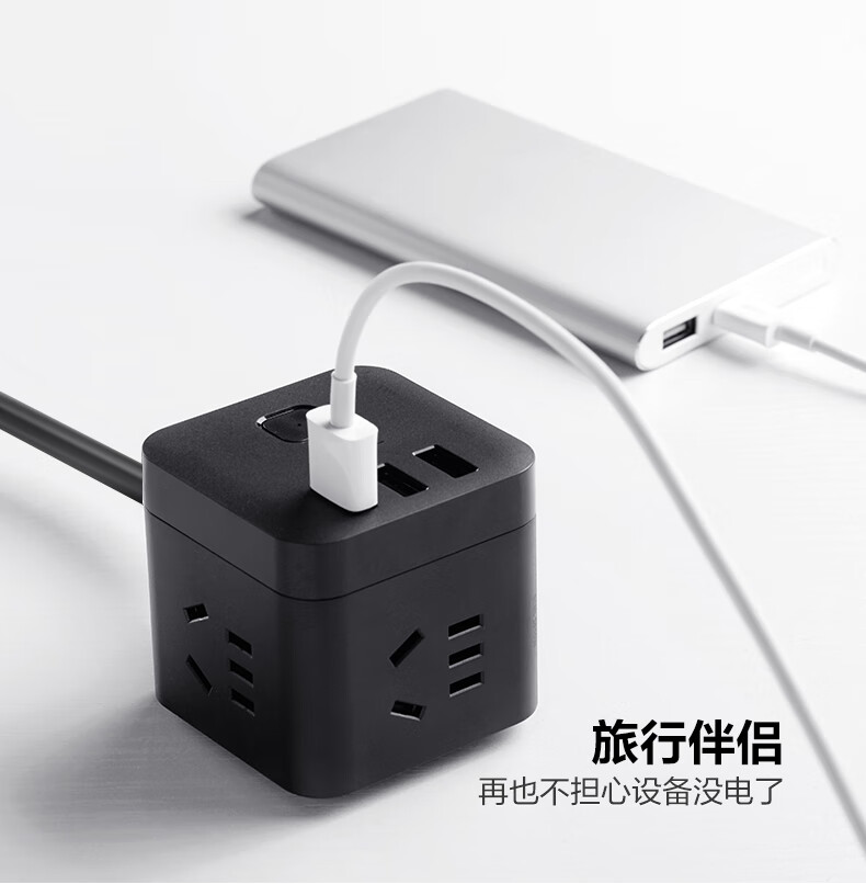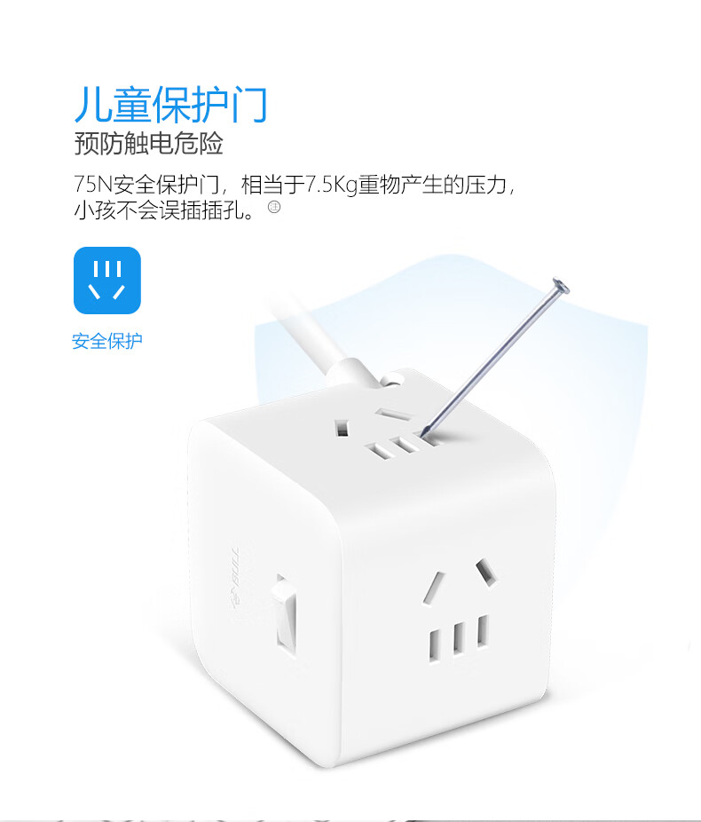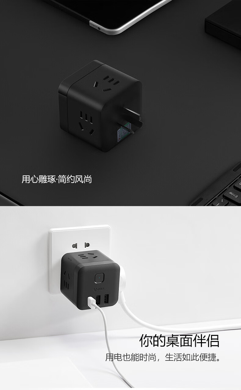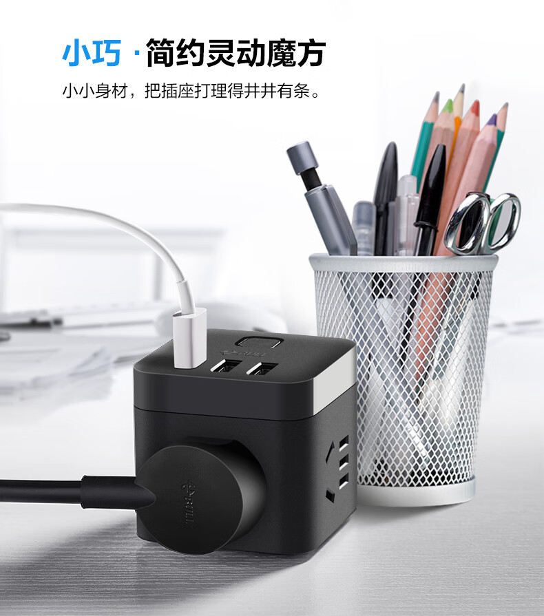 BULL Rubik's Cube Smart USB Socket Socket/Smart USB Socket/Plug Strip/Plug Board 3 Positions + 3 USB Total Control 1.5 Meters White-U303U