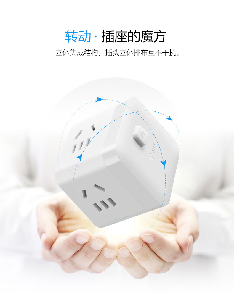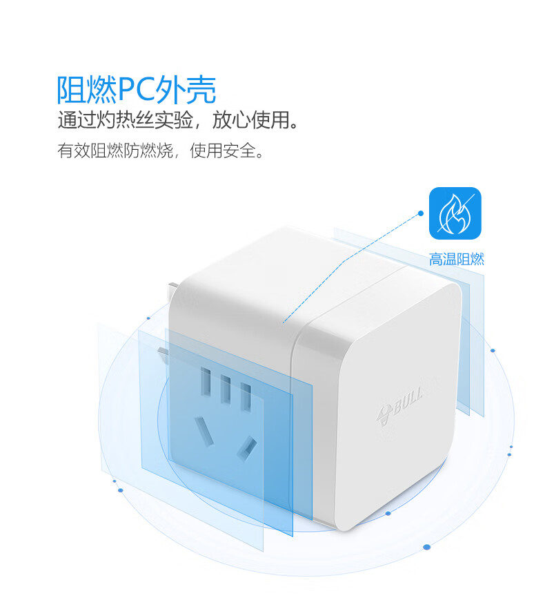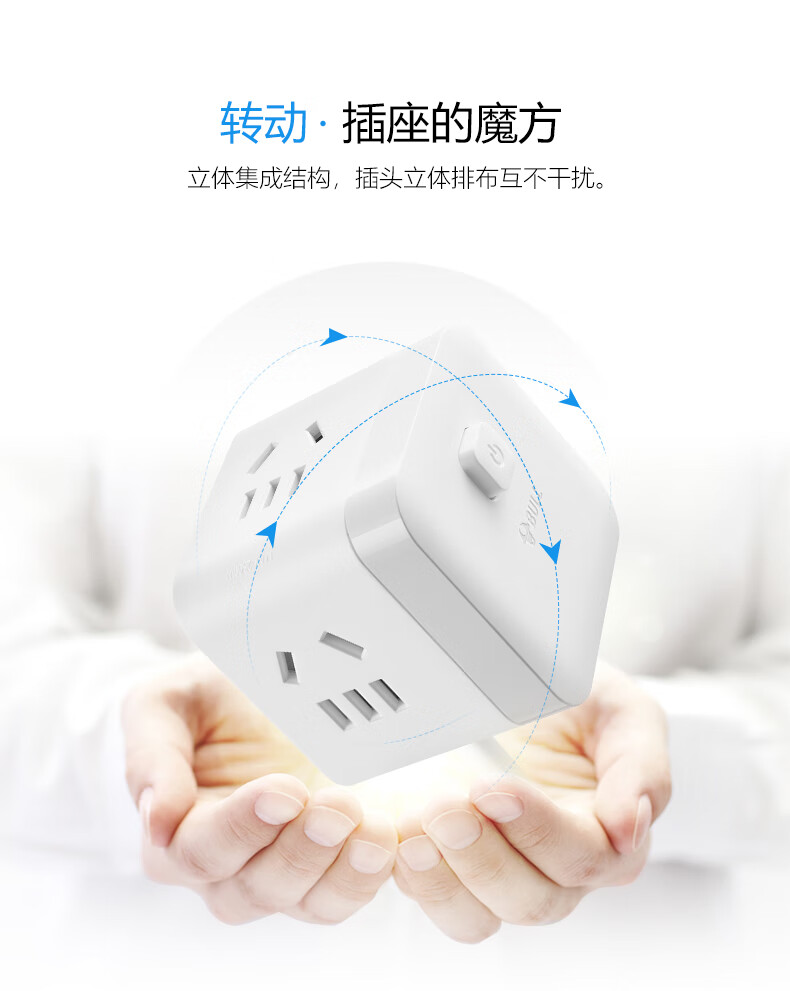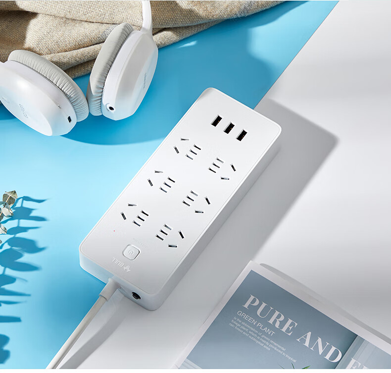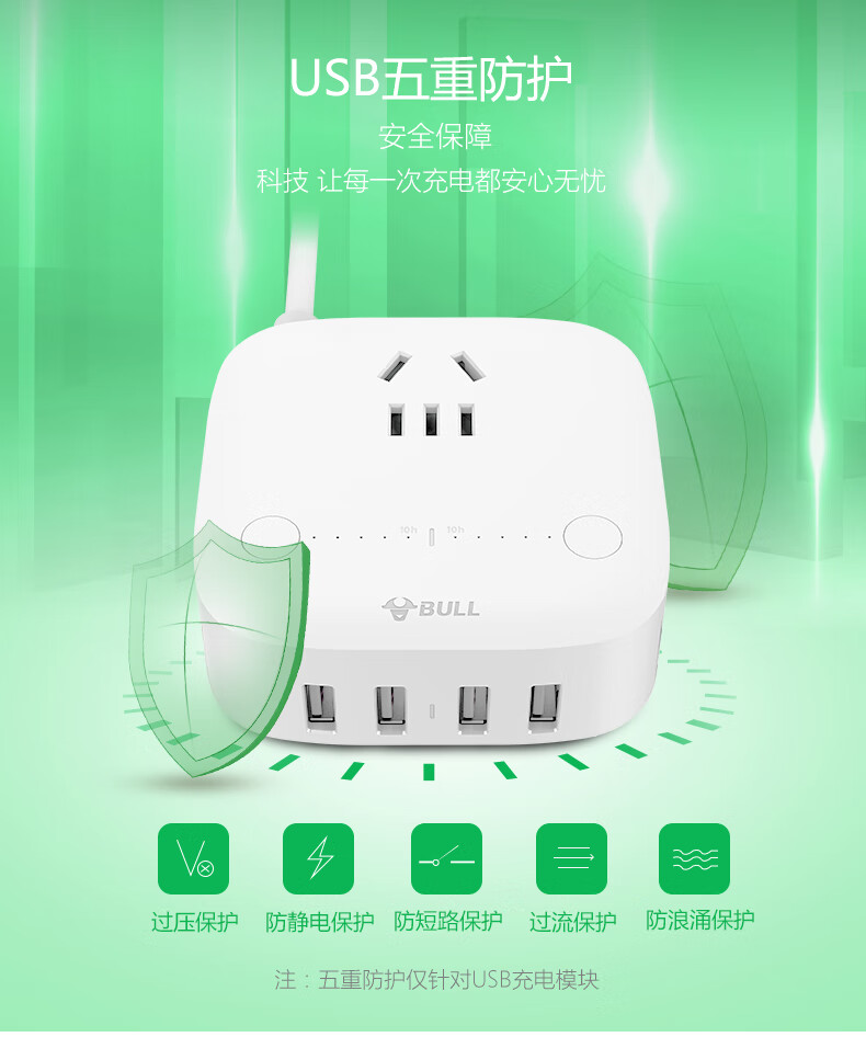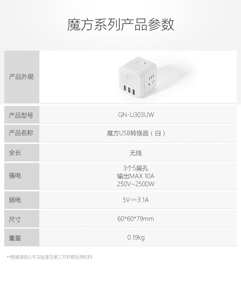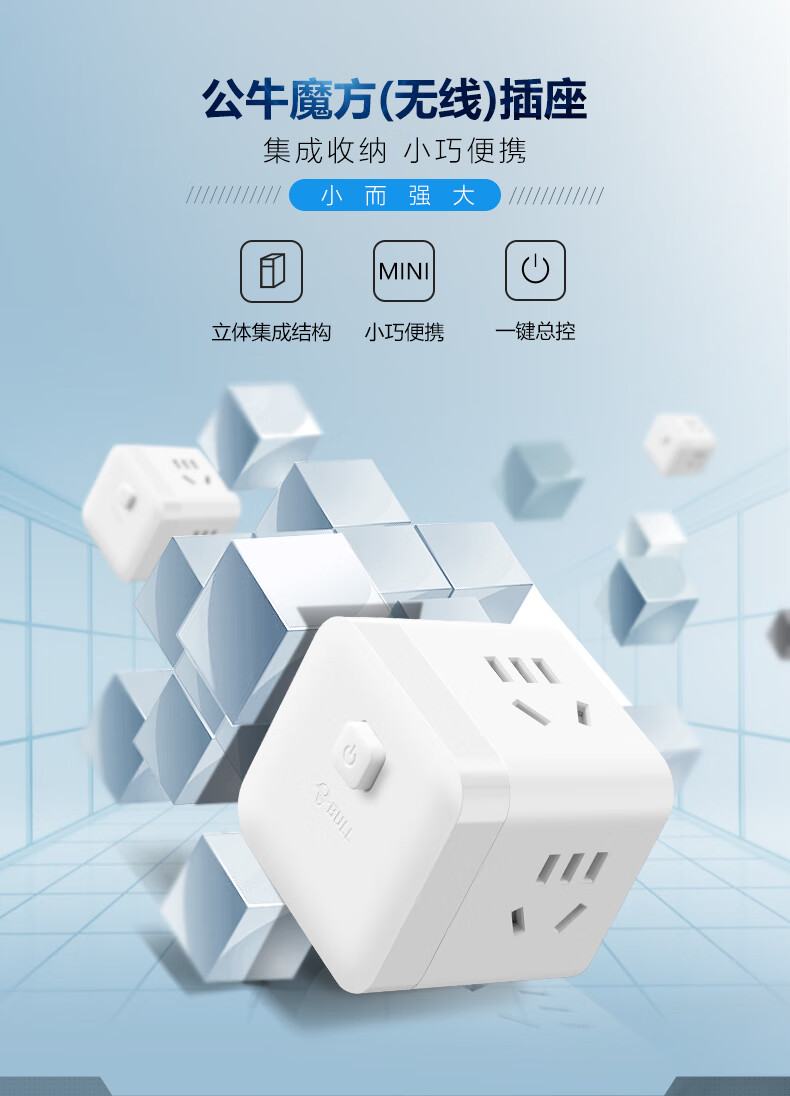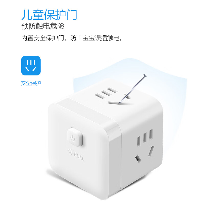 BULL Rubik's Cube Smart USB Socket Socket/Smart USB Socket/Plug Strip/Plug Board 3 Positions + 3 USB Total Control 1.5 Meters White-U303U