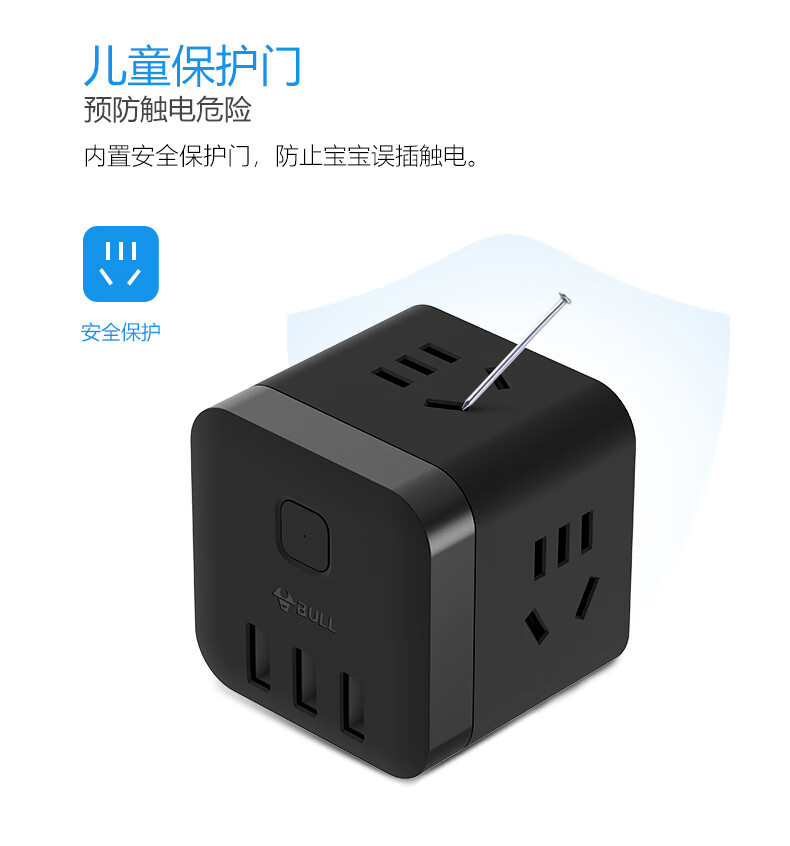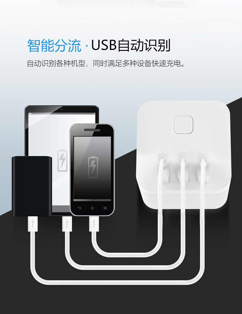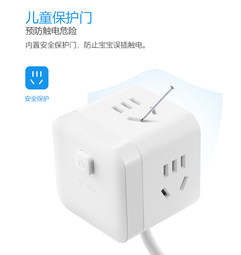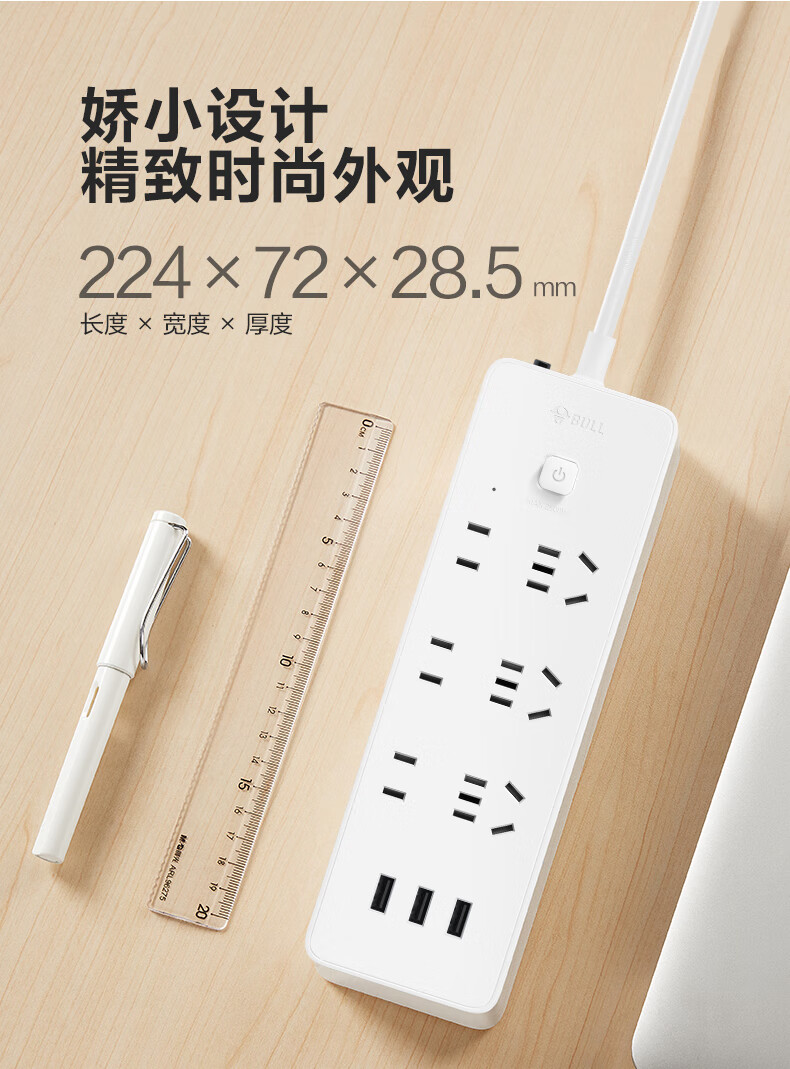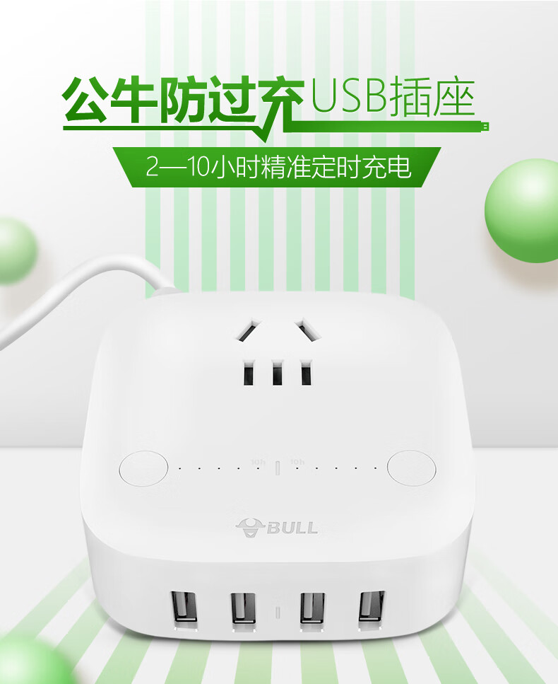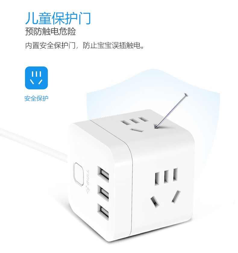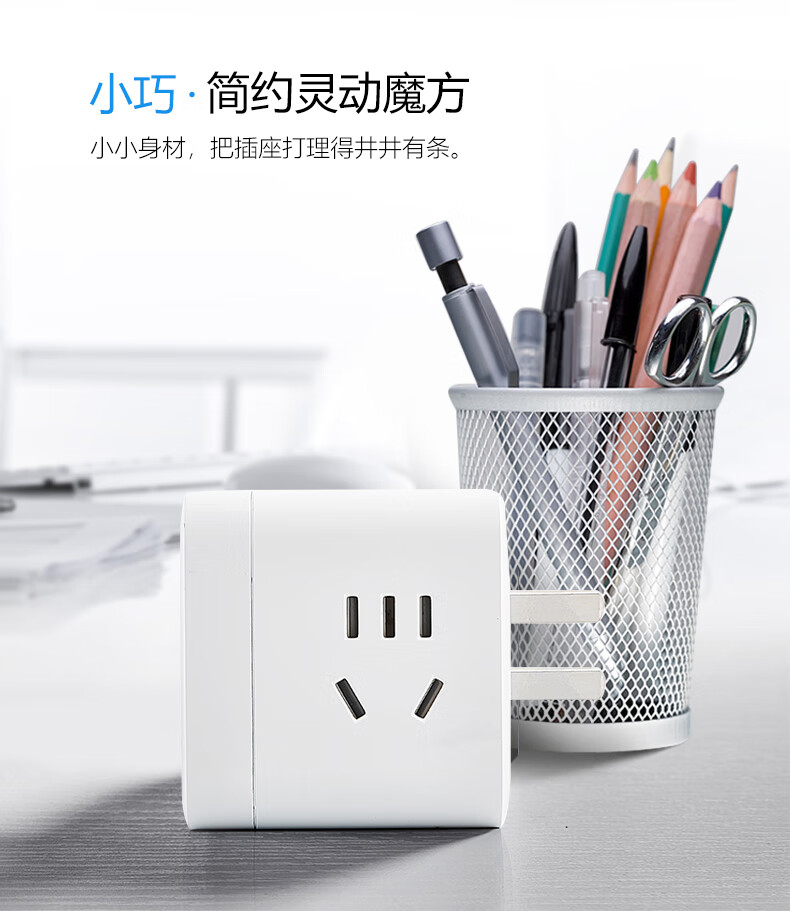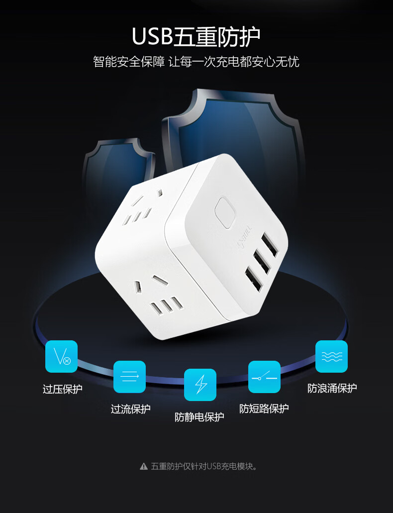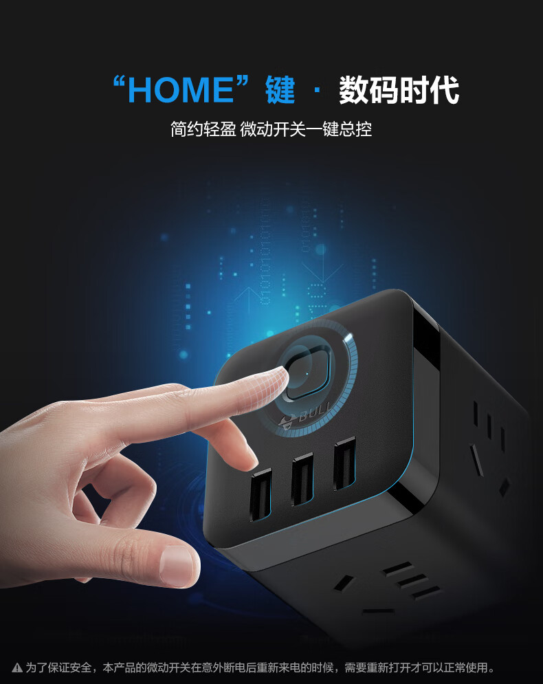 BULL Rubik's Cube Smart USB Socket Socket/Smart USB Socket/Plug Strip/Plug Board 3 Positions + 3 USB Total Control 1.5 Meters White-U303U