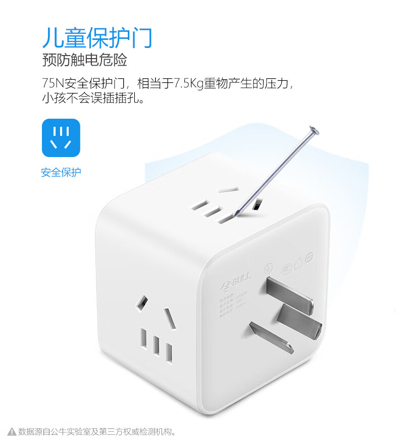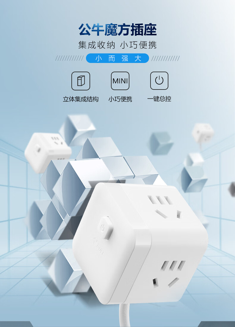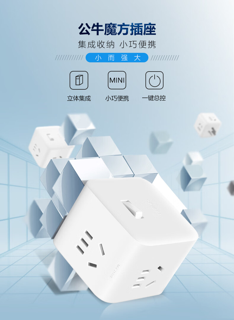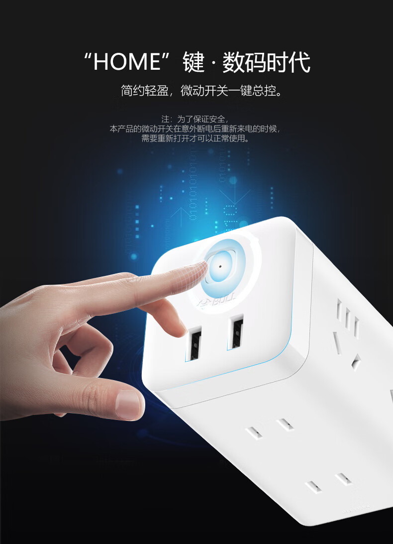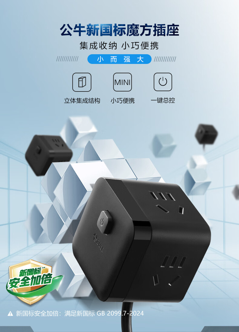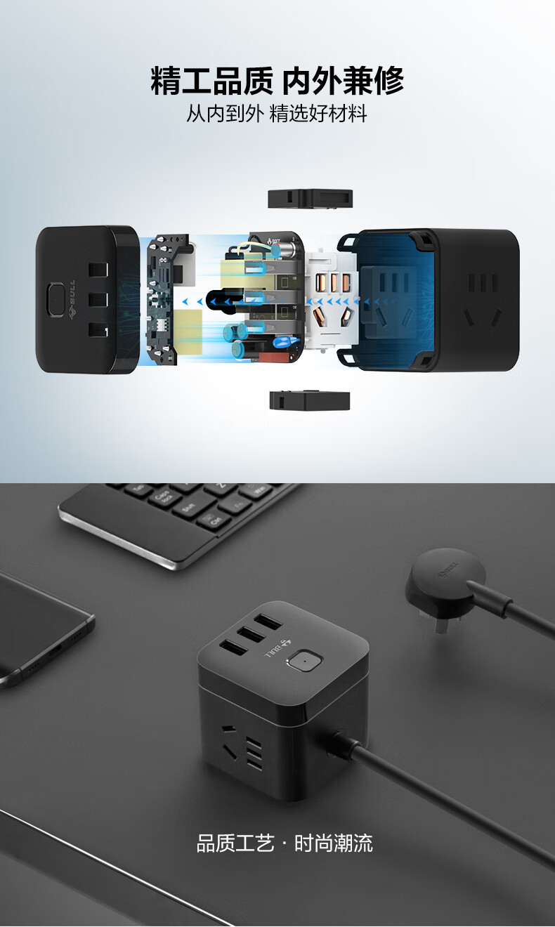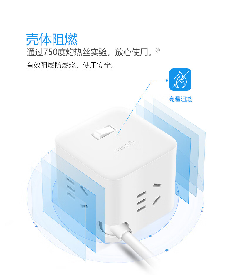 BULL Rubik's Cube Smart USB Socket Socket/Smart USB Socket/Plug Strip/Plug Board 3 Positions + 3 USB Total Control 1.5 Meters White-U303U