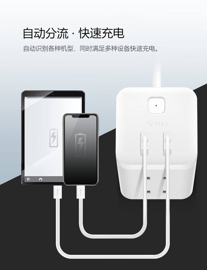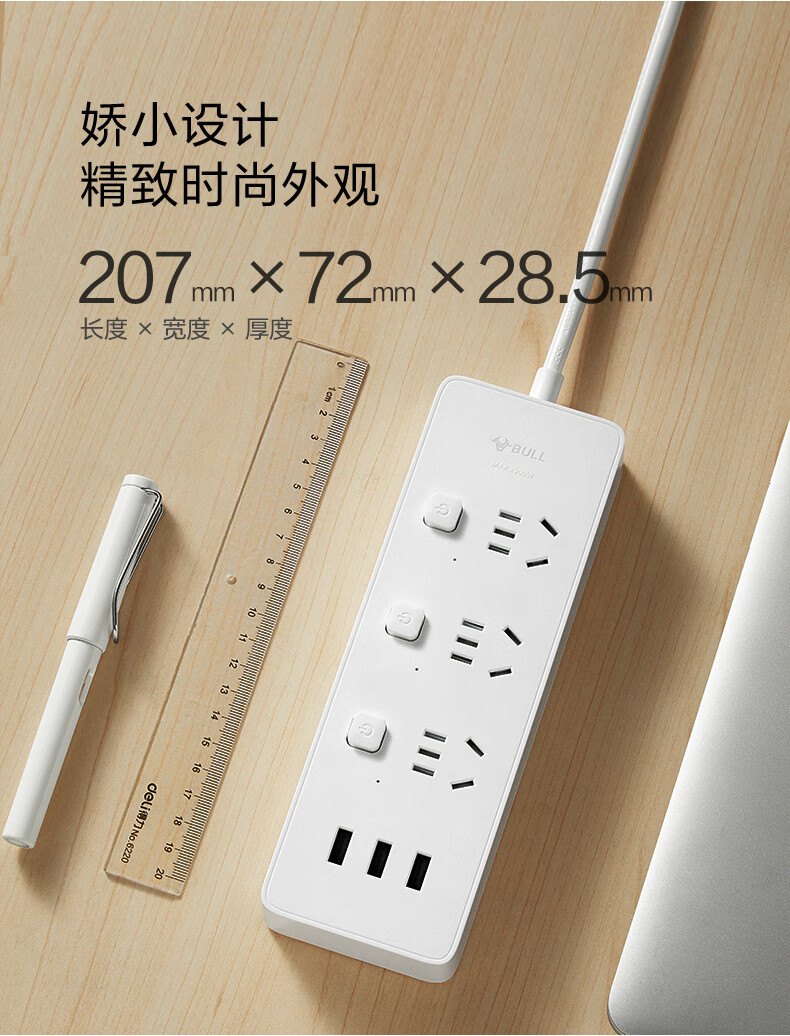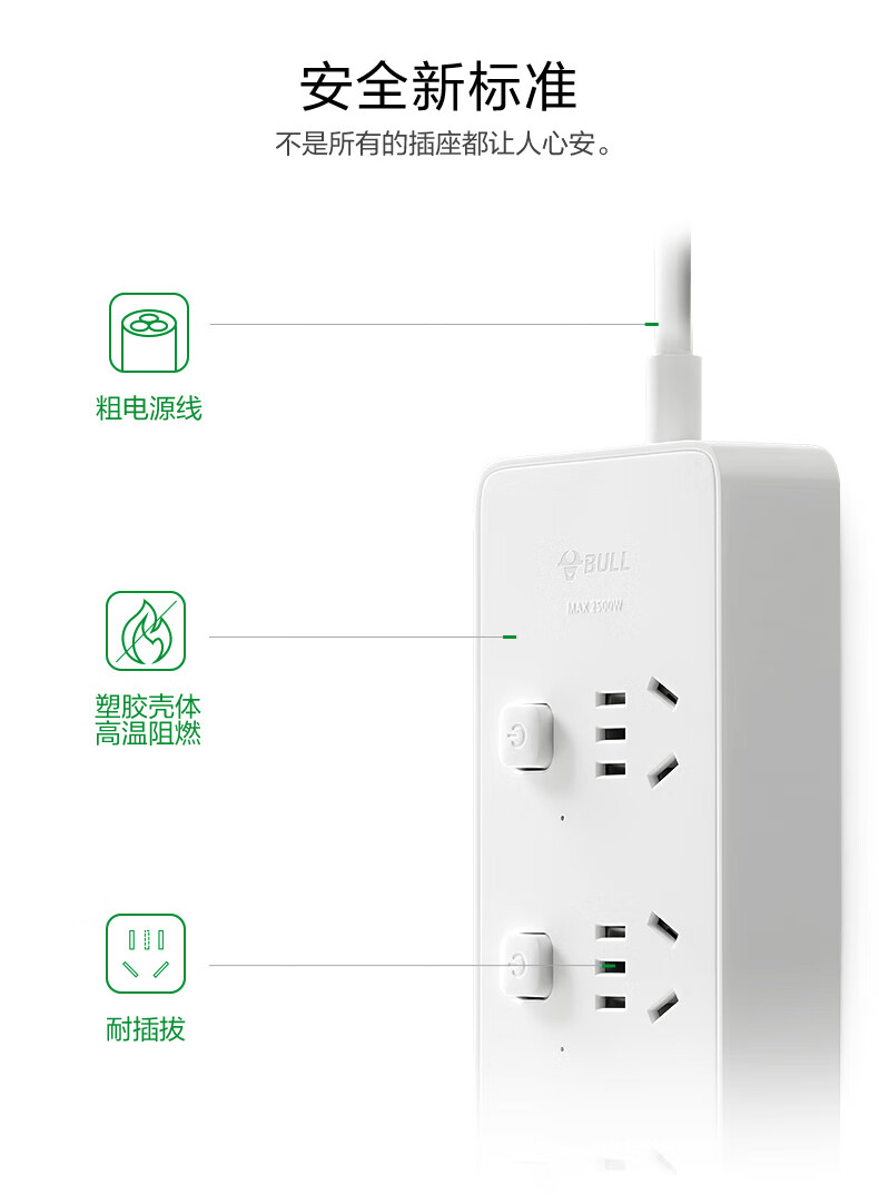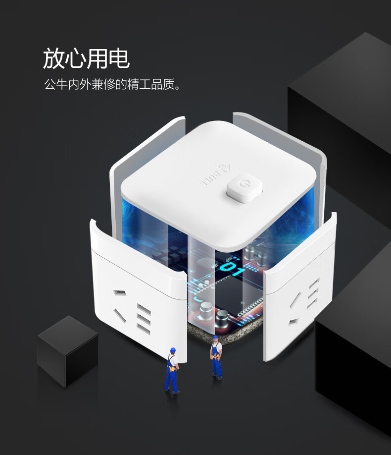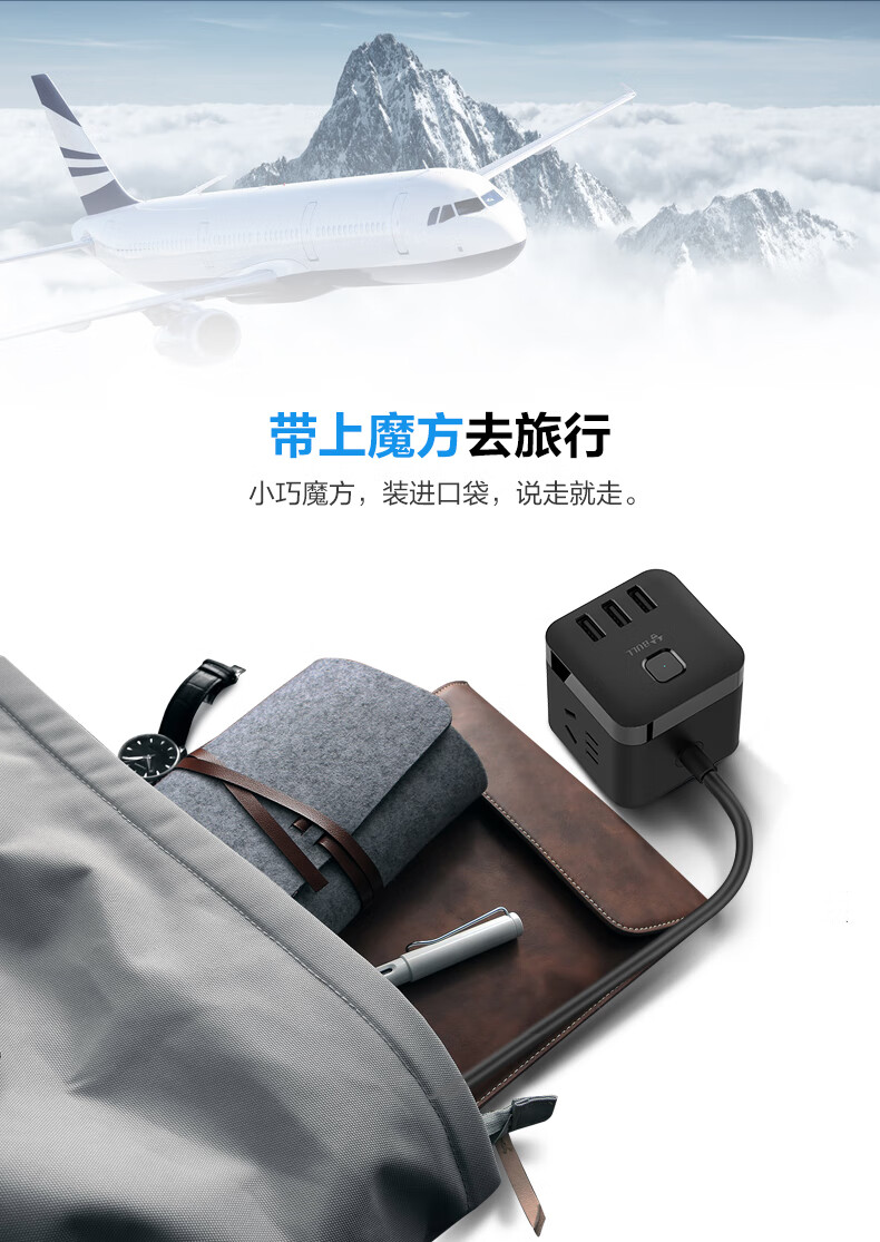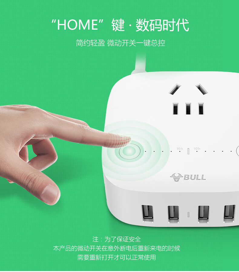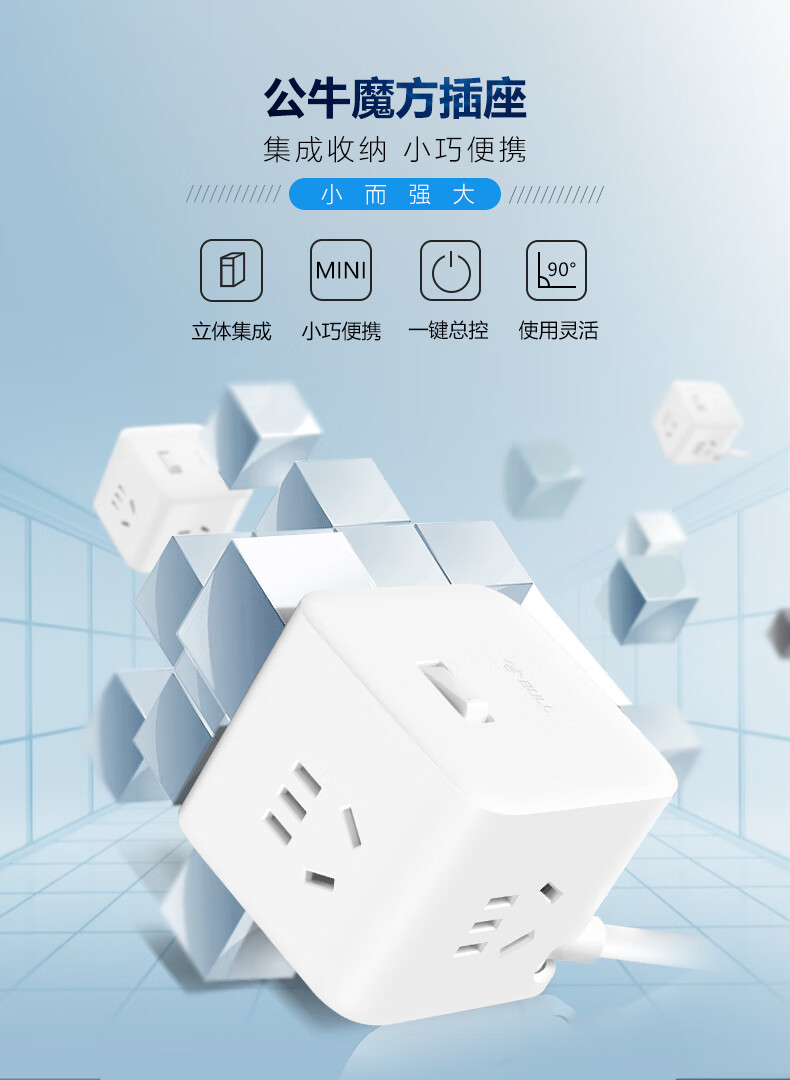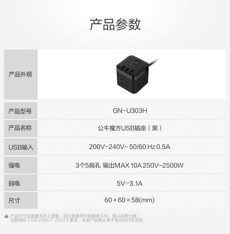 BULL Rubik's Cube Smart USB Socket Socket/Smart USB Socket/Plug Strip/Plug Board 3 Positions + 3 USB Total Control 1.5 Meters White-U303U