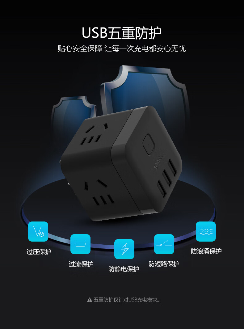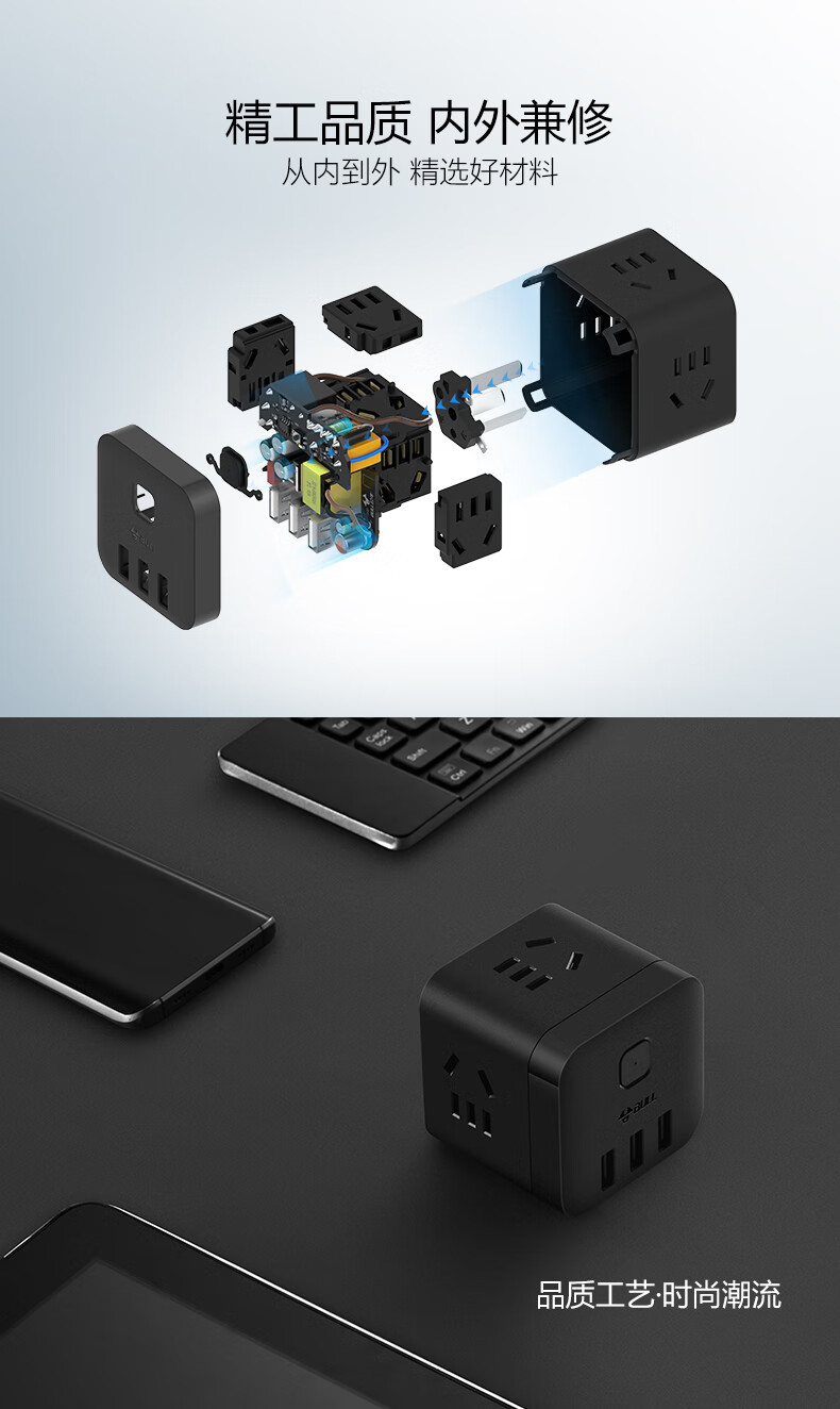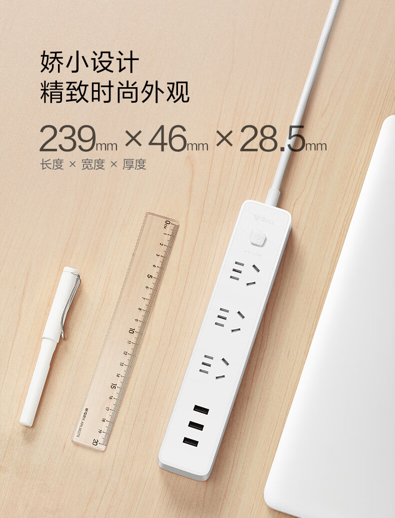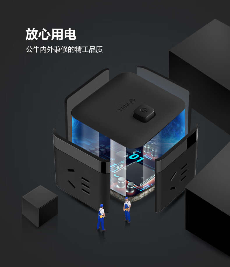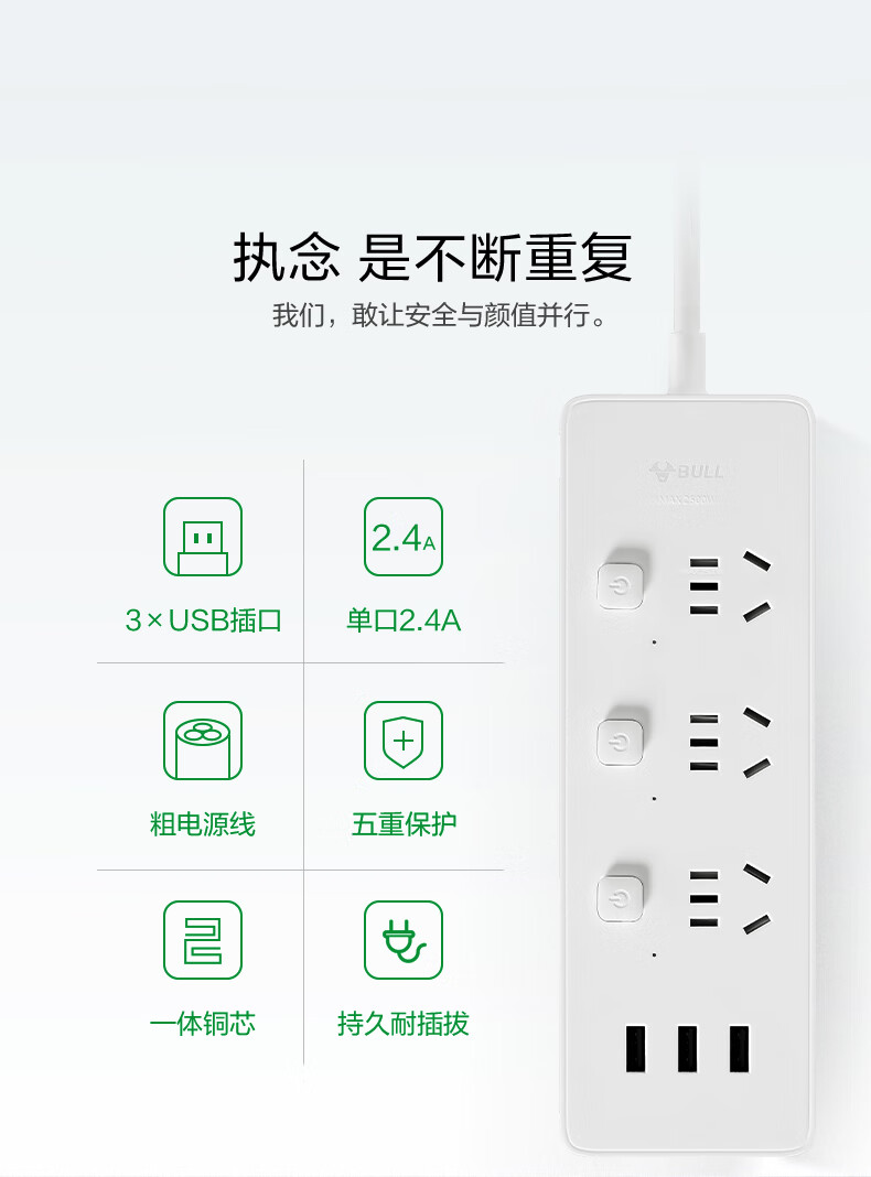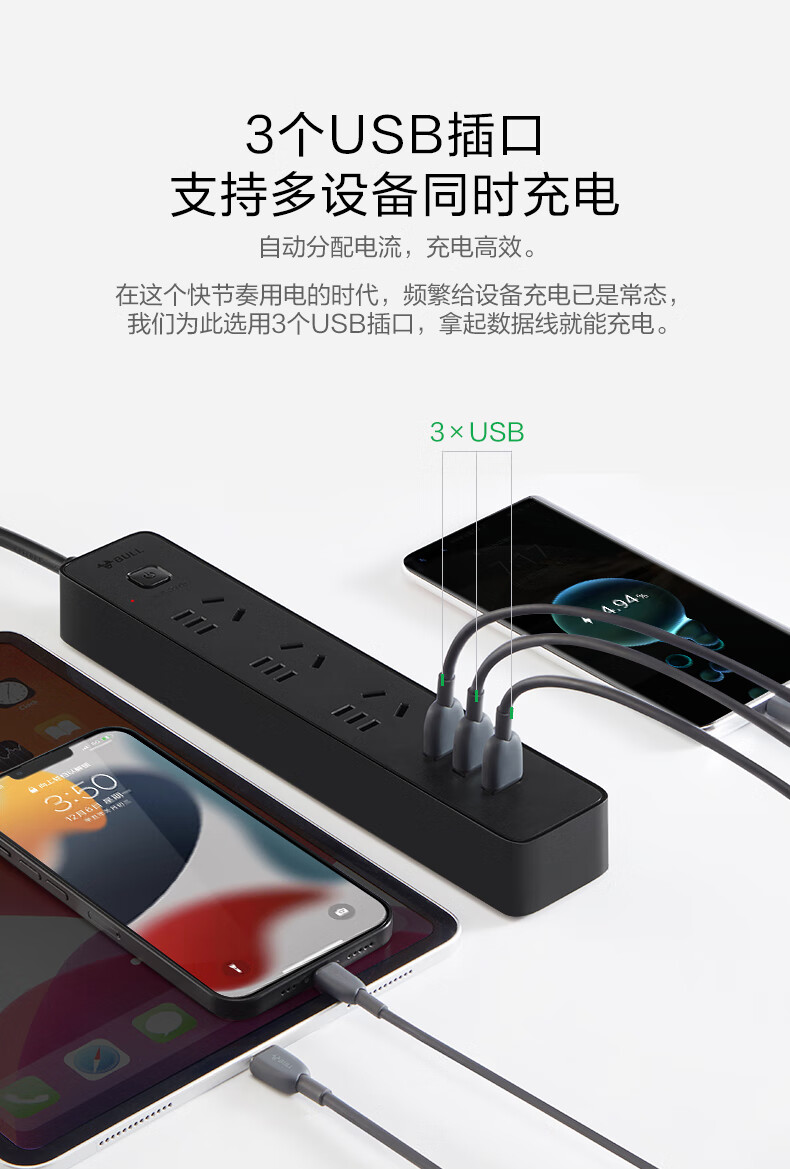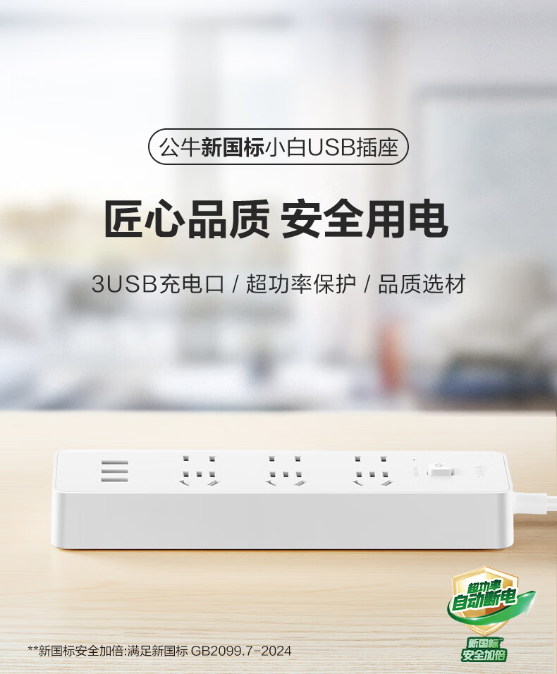 BULL Rubik's Cube Smart USB Socket Socket/Smart USB Socket/Plug Strip/Plug Board 3 Positions + 3 USB Total Control 1.5 Meters White-U303U