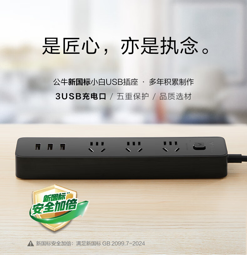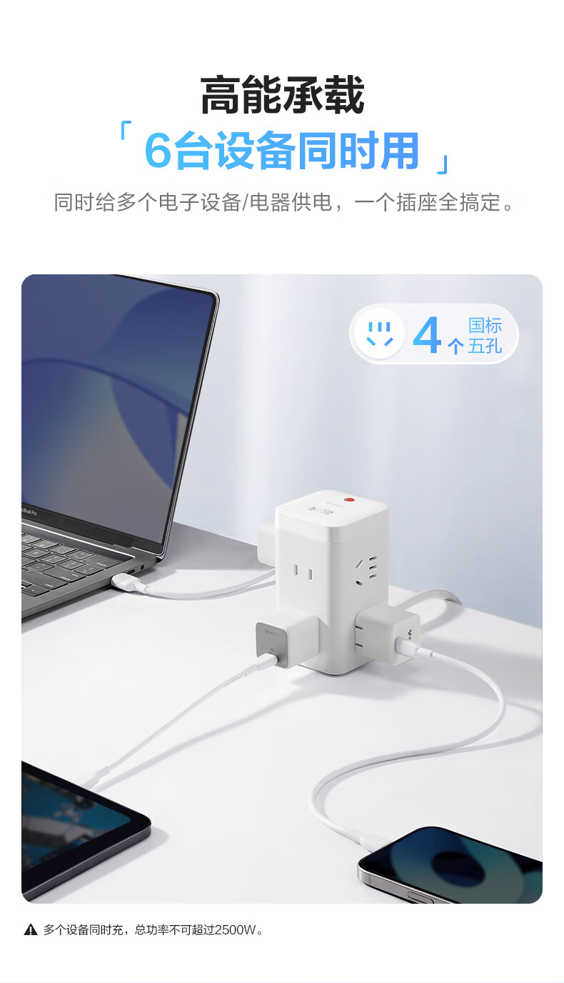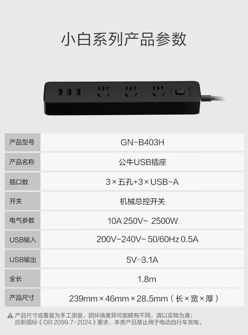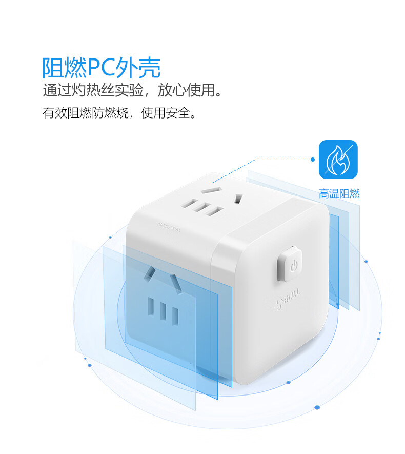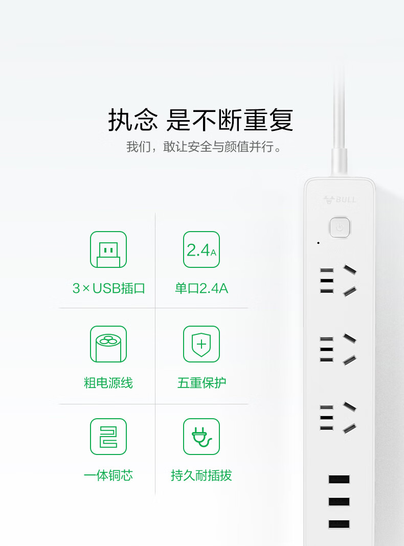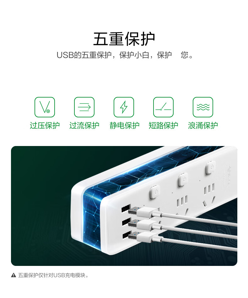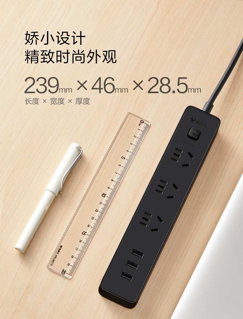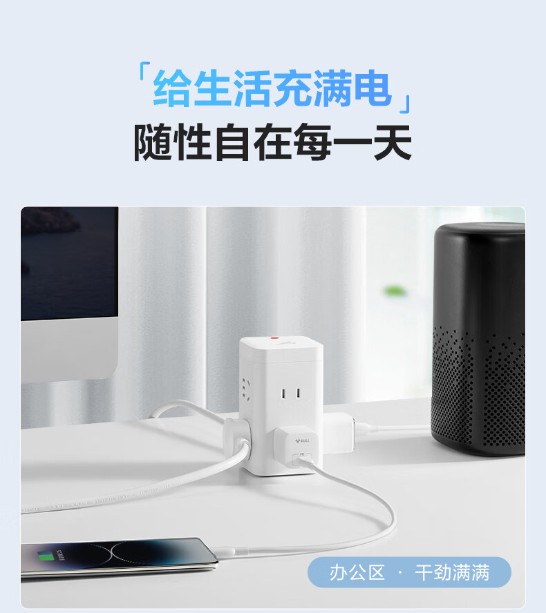 BULL Rubik's Cube Smart USB Socket Socket/Smart USB Socket/Plug Strip/Plug Board 3 Positions + 3 USB Total Control 1.5 Meters White-U303U