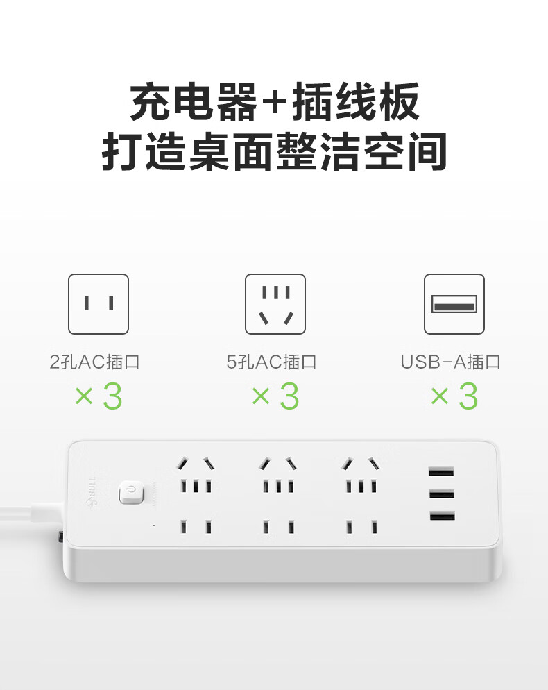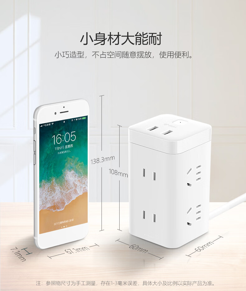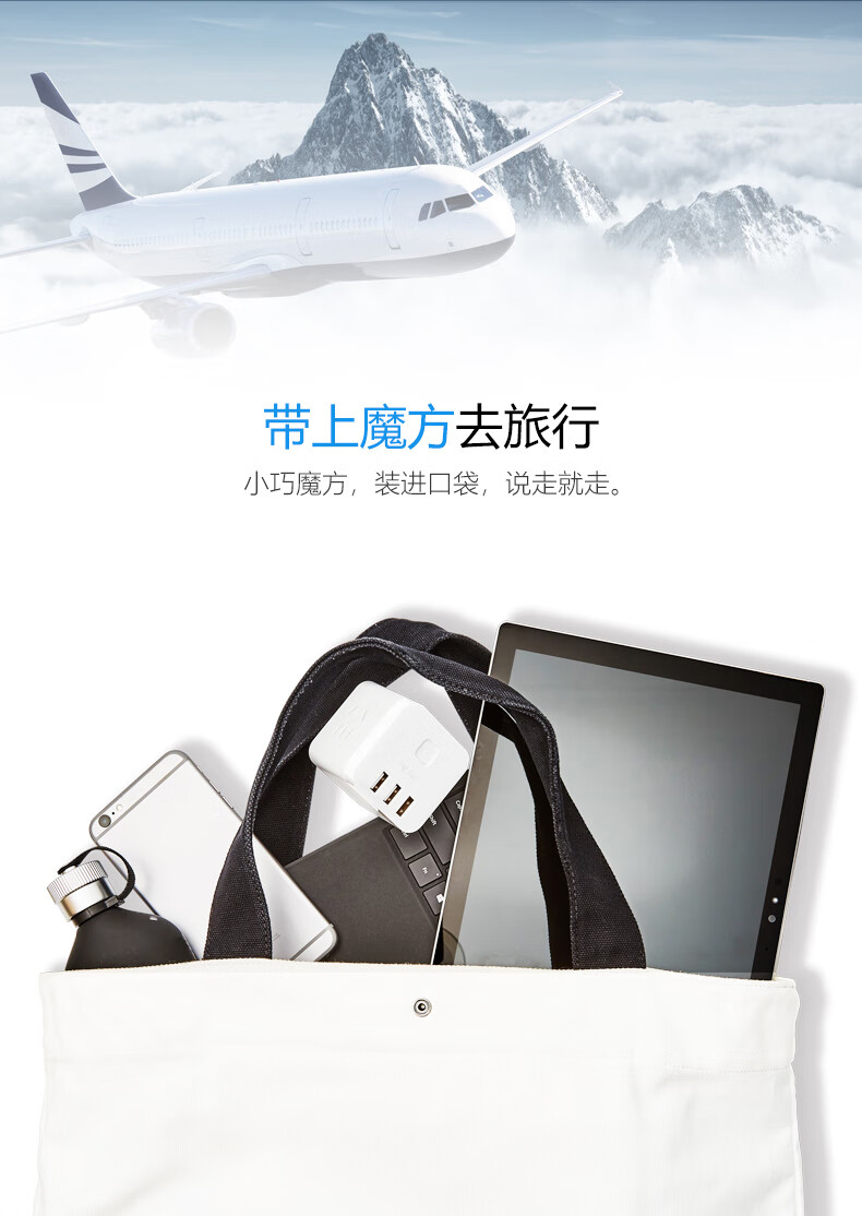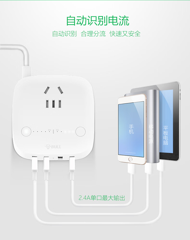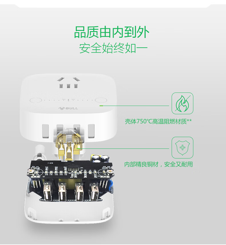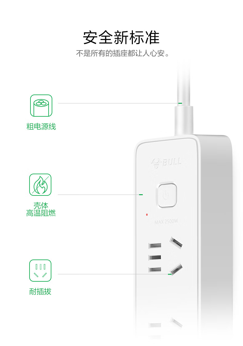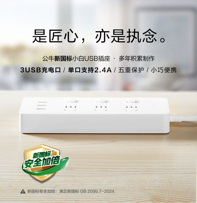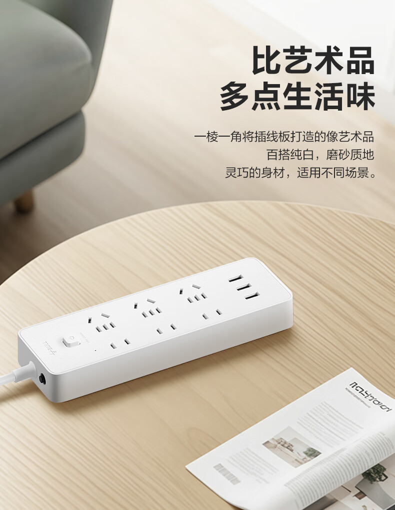 BULL Rubik's Cube Smart USB Socket Socket/Smart USB Socket/Plug Strip/Plug Board 3 Positions + 3 USB Total Control 1.5 Meters White-U303U