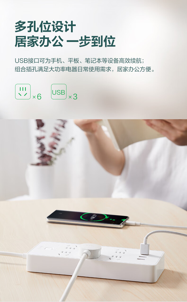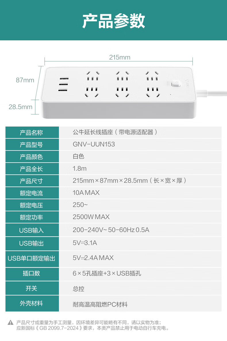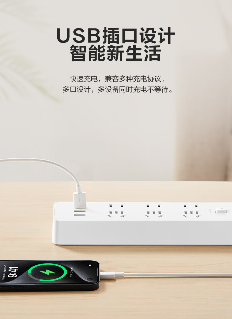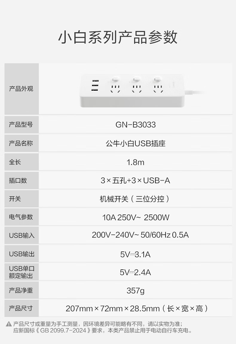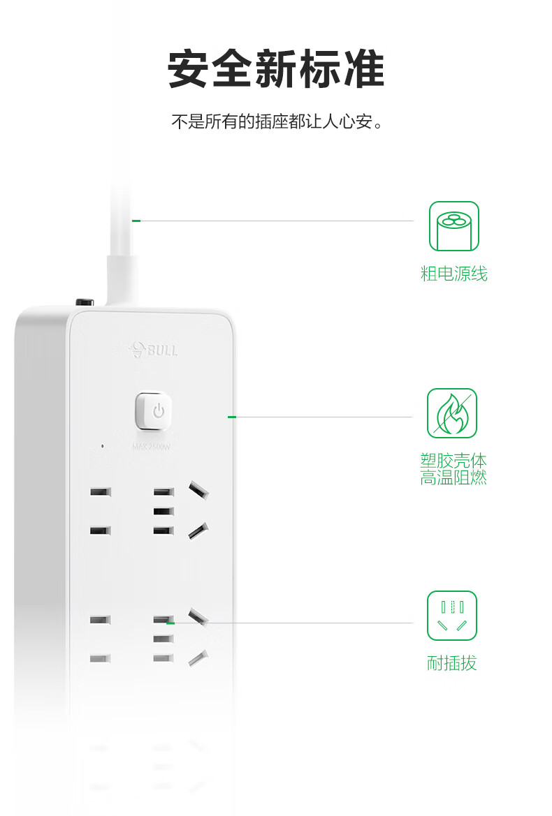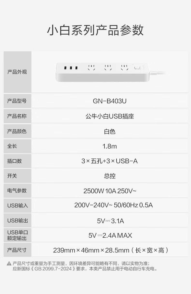 BULL Rubik's Cube Smart USB Socket Socket/Smart USB Socket/Plug Strip/Plug Board 3 Positions + 3 USB Total Control 1.5 Meters White-U303U