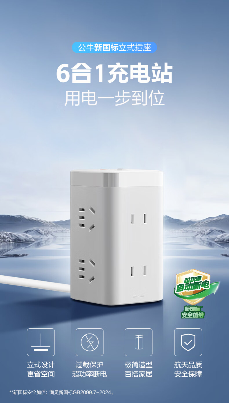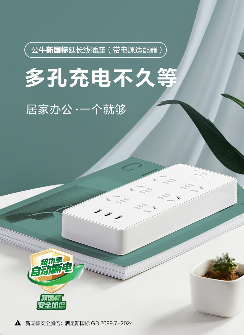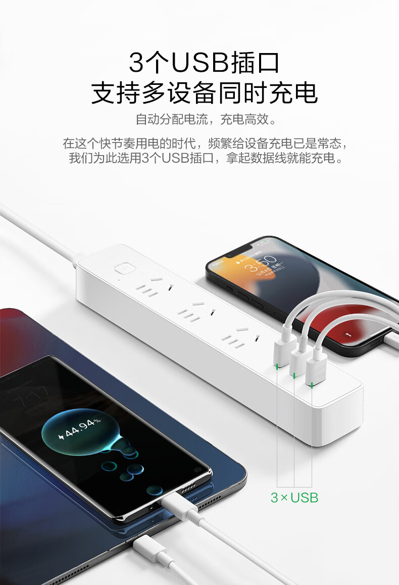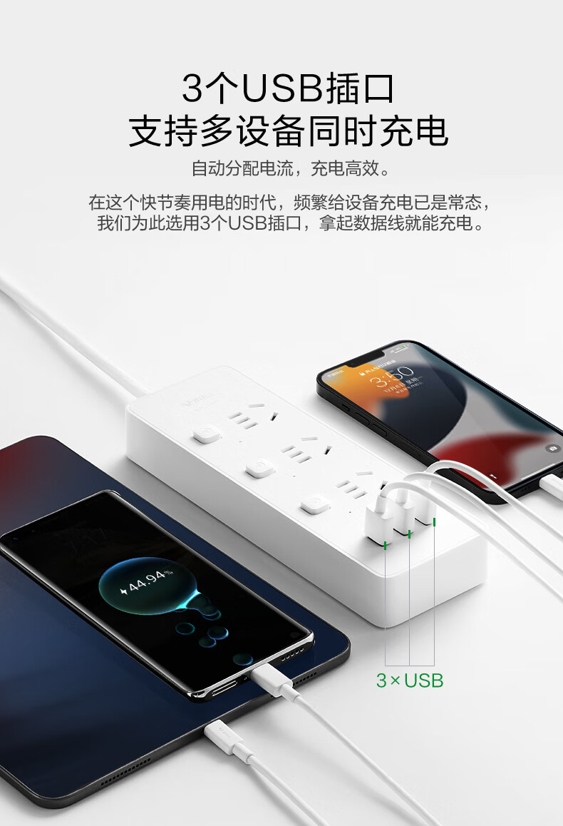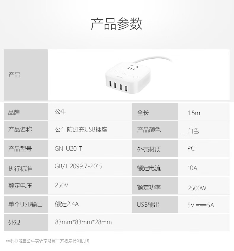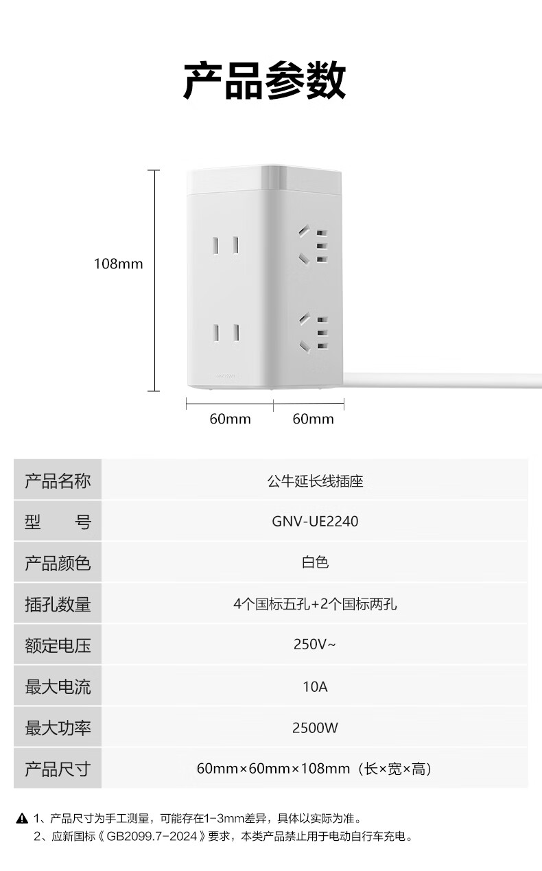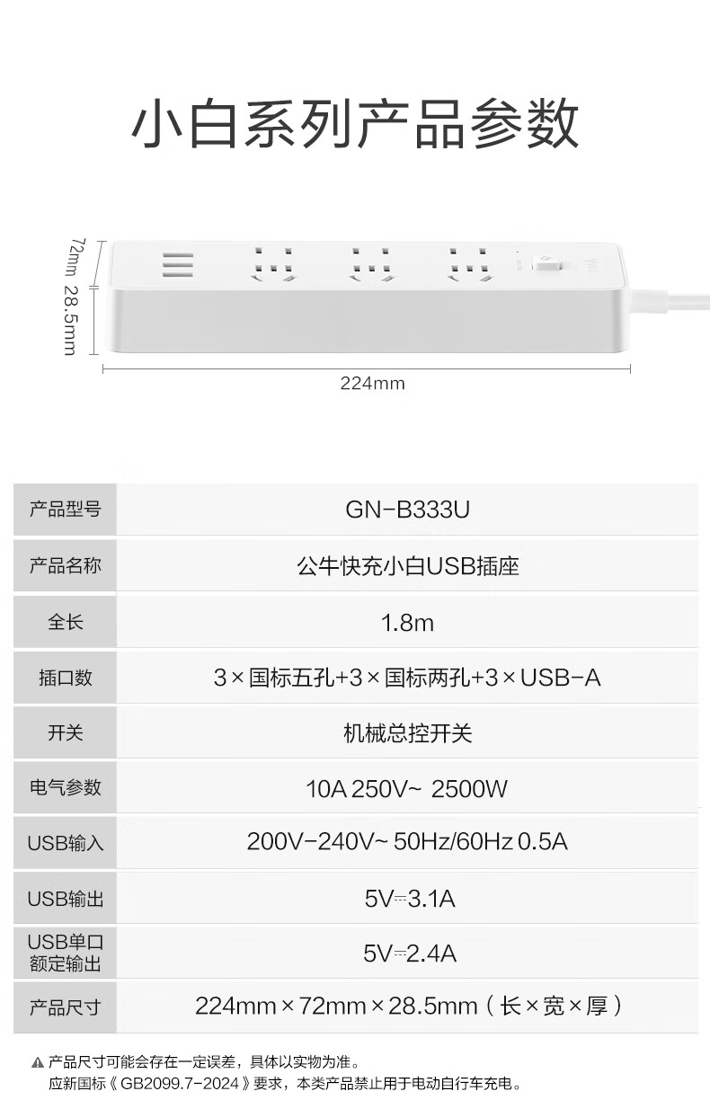 BULL Rubik's Cube Smart USB Socket Socket/Smart USB Socket/Plug Strip/Plug Board 3 Positions + 3 USB Total Control 1.5 Meters White-U303U