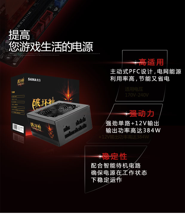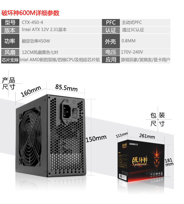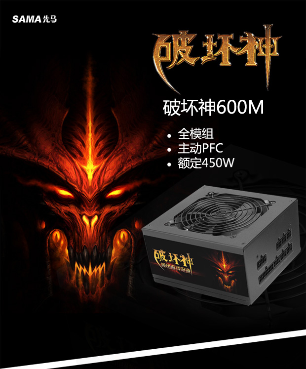 SAMA rated 450W God of Destruction 600M power supply (full module/wide format/dual graphics card connector/single +12V/backline/powerful 12V output power/computer power supply)