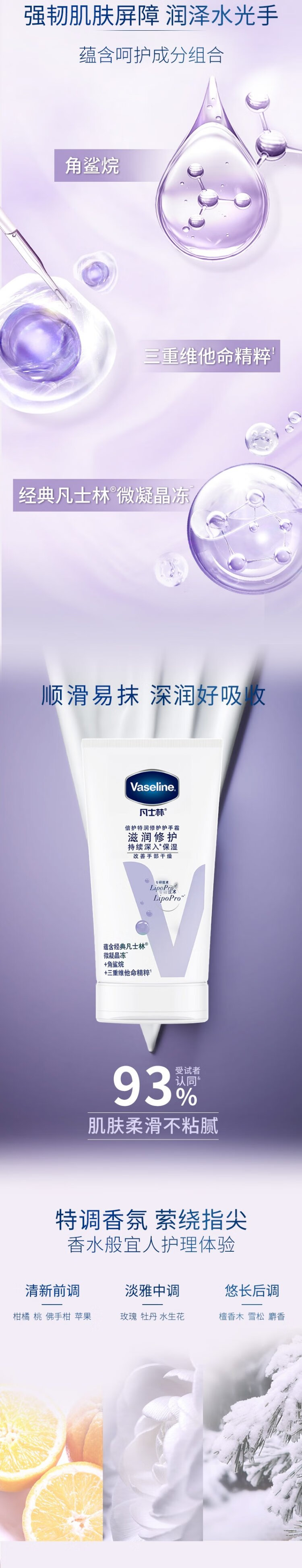 Vaseline hand cream 50ml special moisturizing and repairing, moisturizing and long-lasting fragrance, men and women autumn and winter moisturizing