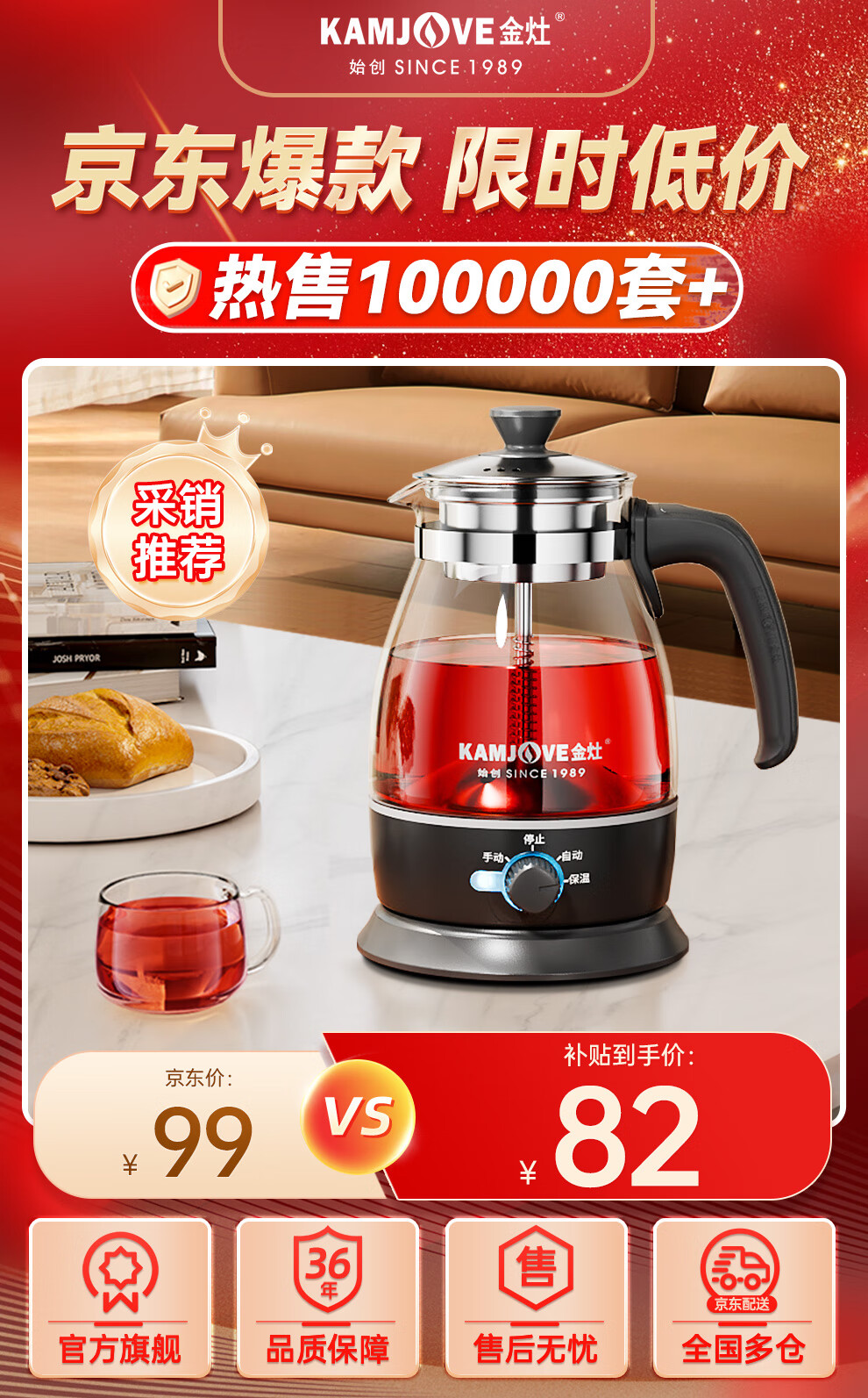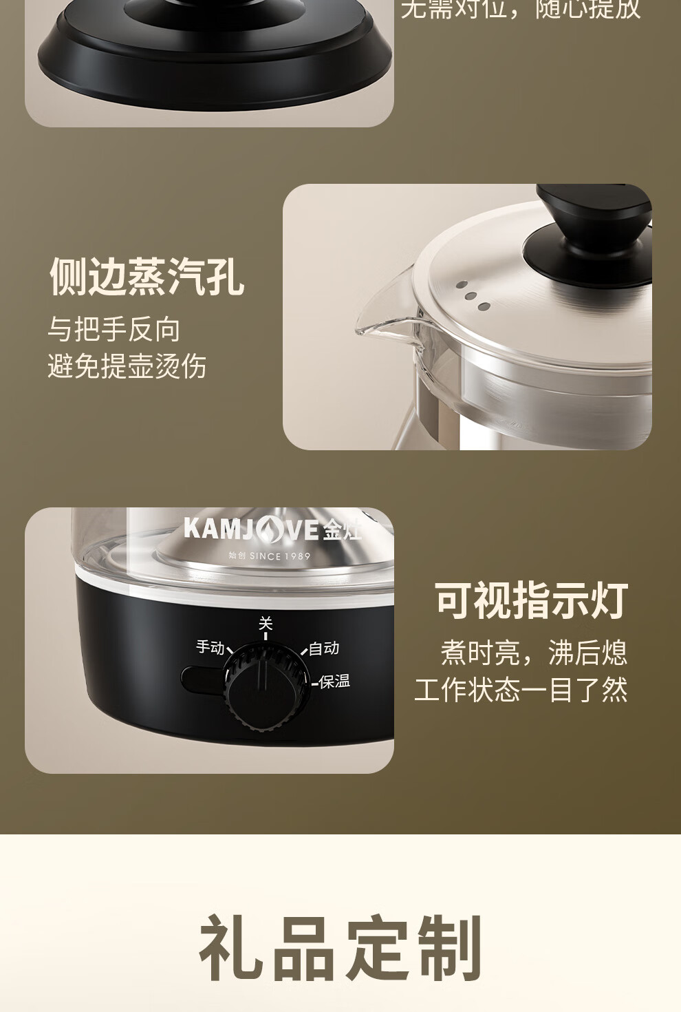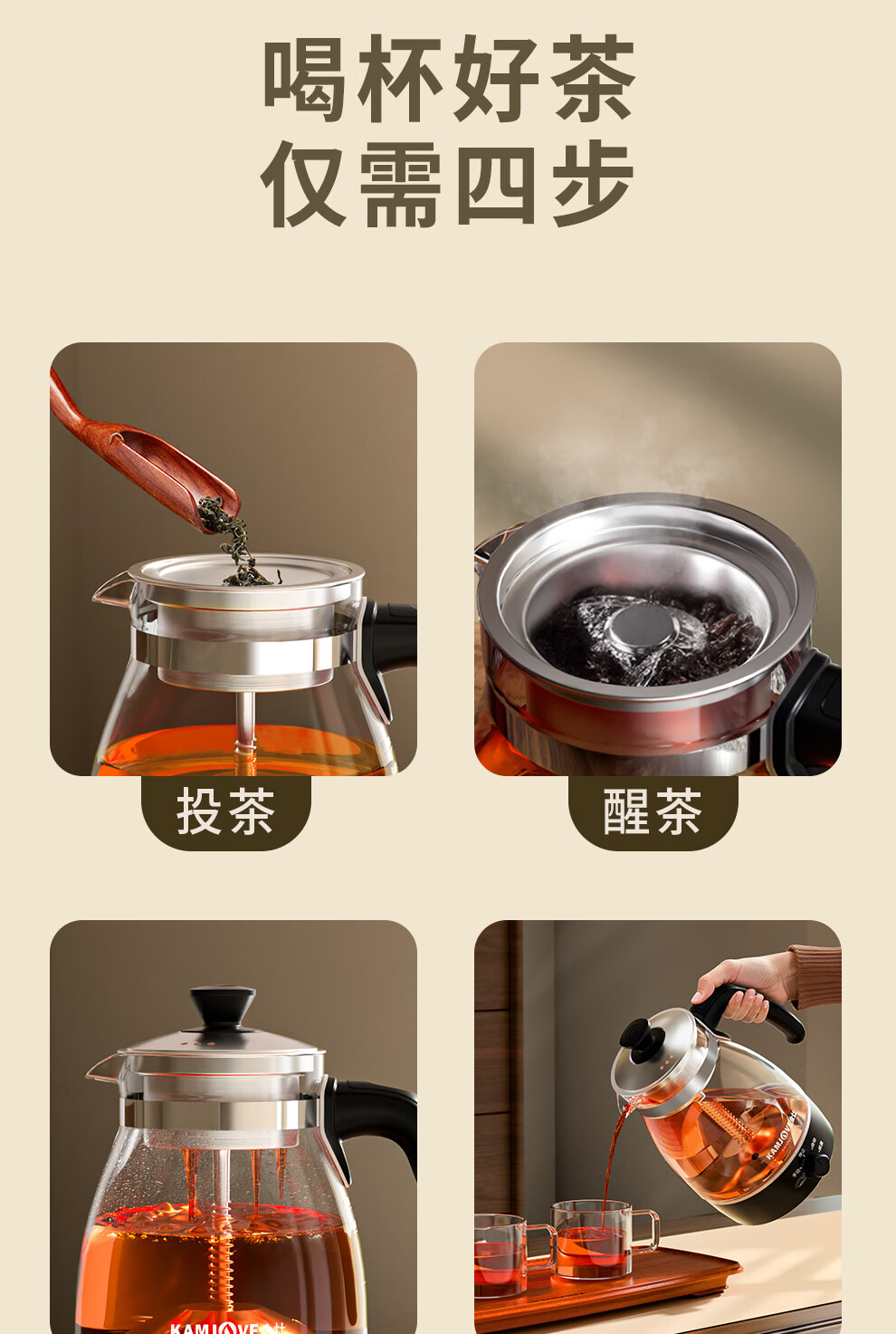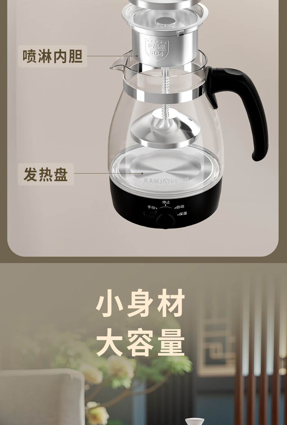 KAMJOVE health pot tea boiler spray tea boiler white teapot black teapot office household steam teapot 1L black 1L