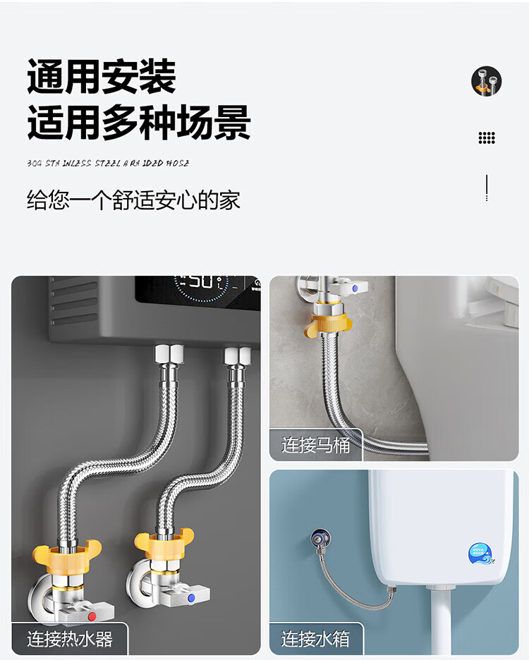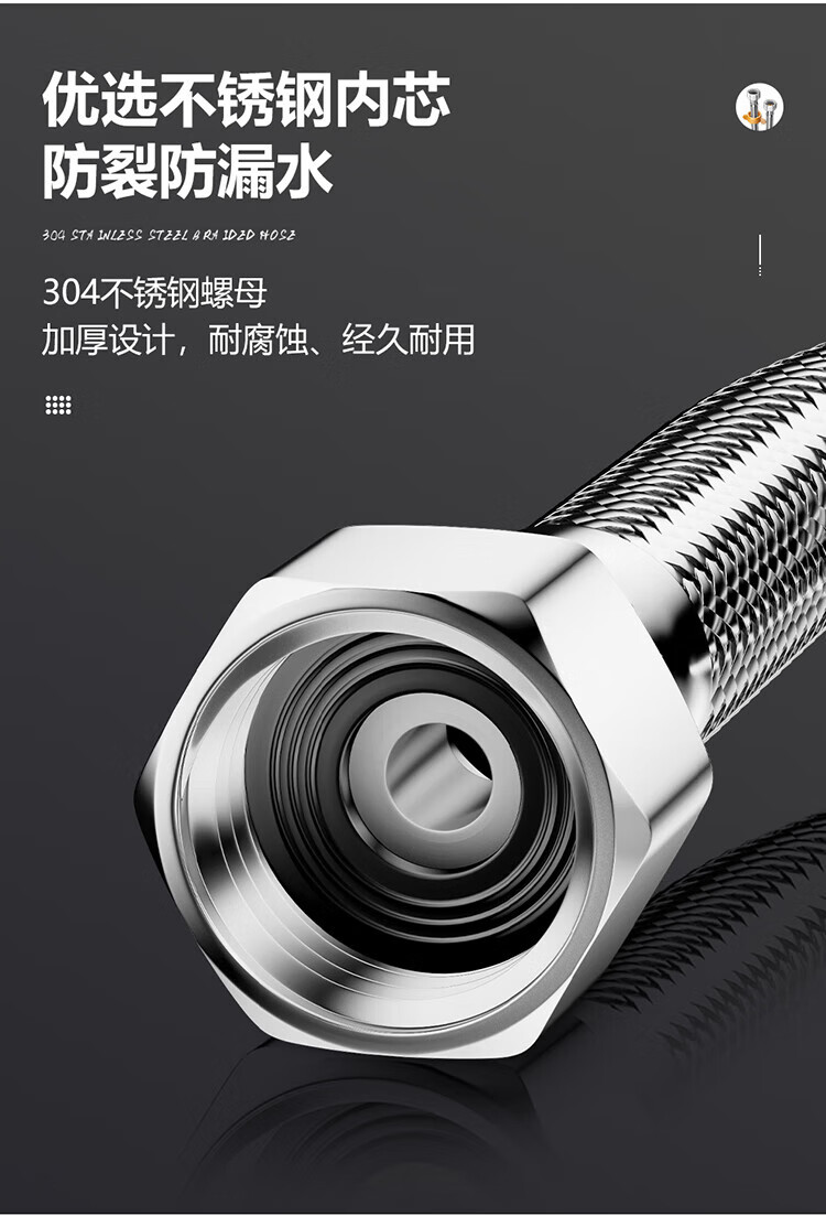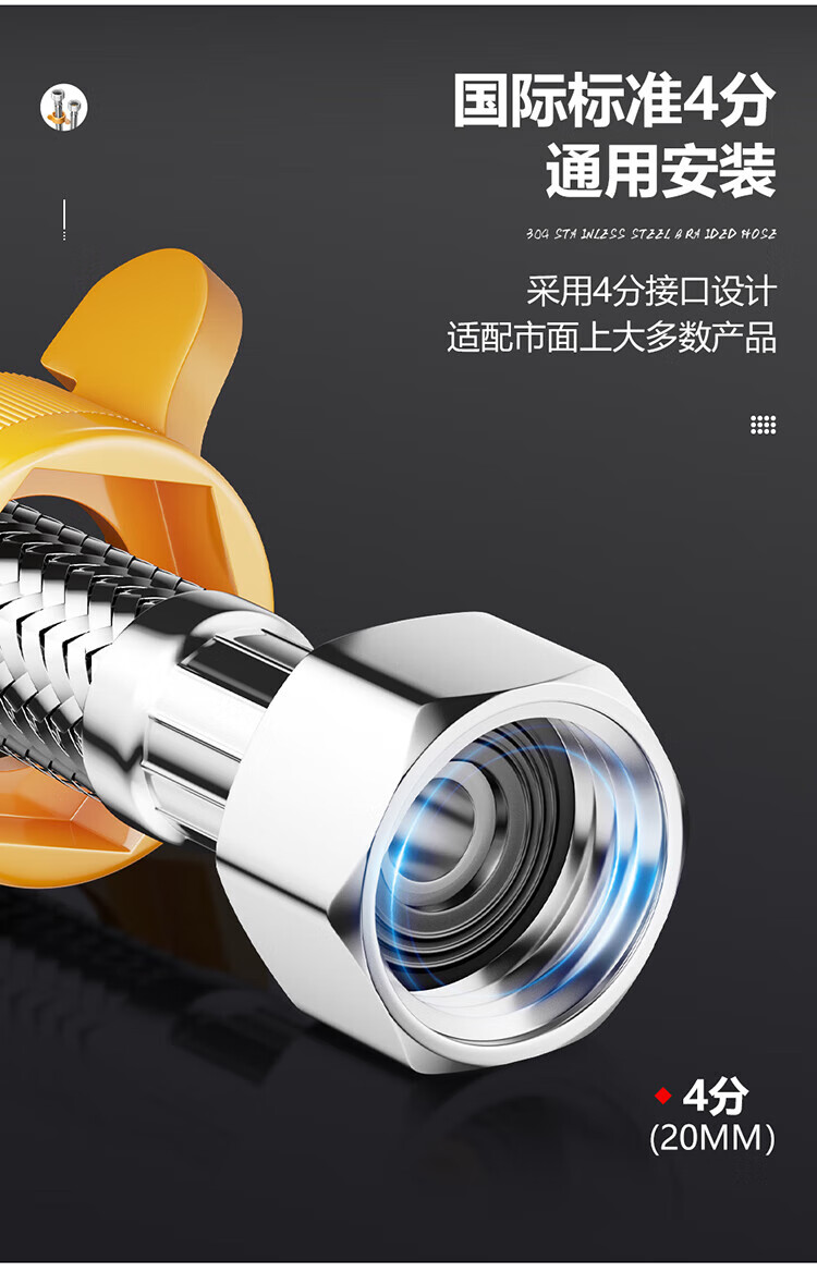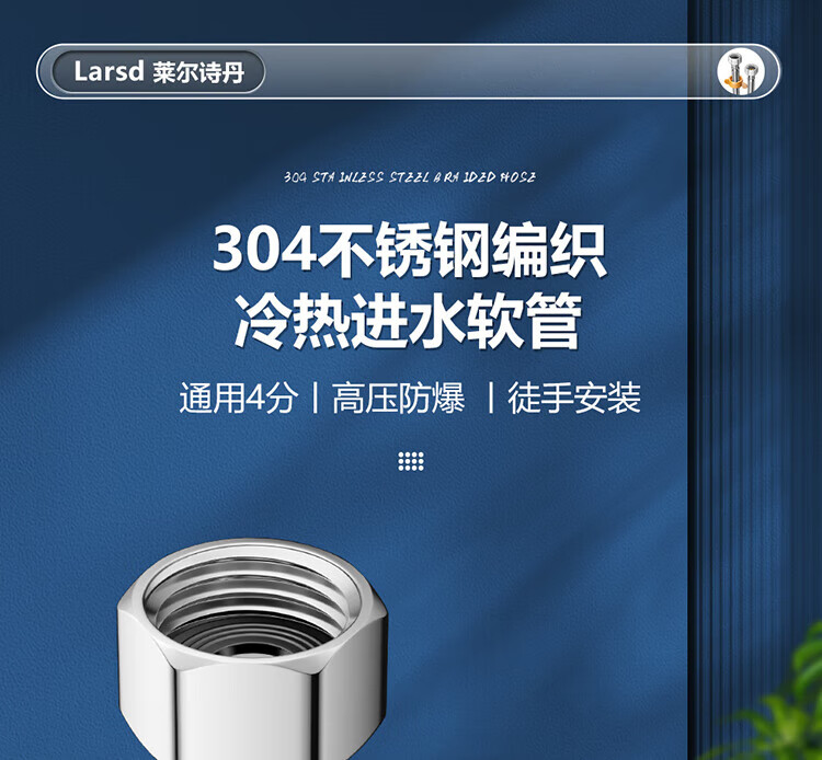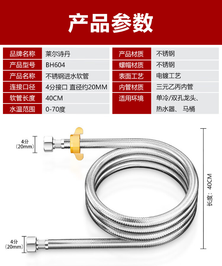 Larsd 304 stainless steel water inlet hose 40CM toilet water inlet pipe water heater hot and cold universal 4-point water supply pipe BH604