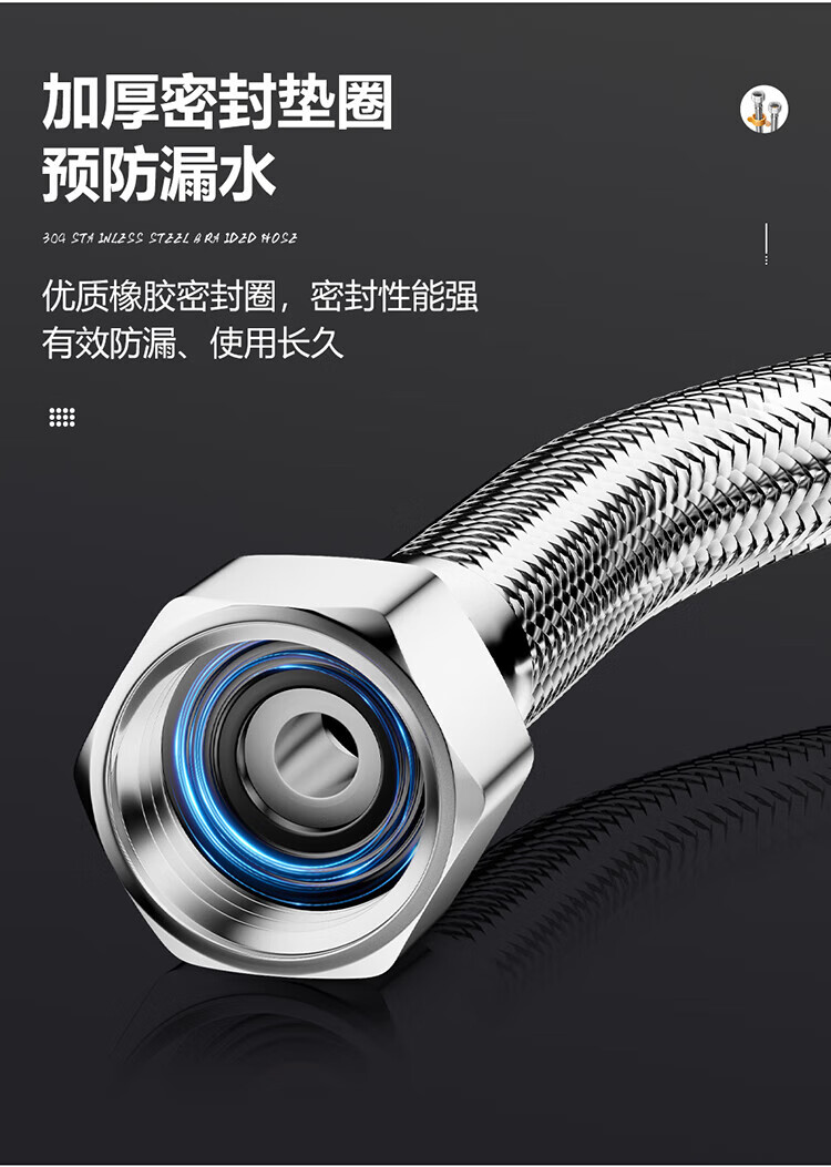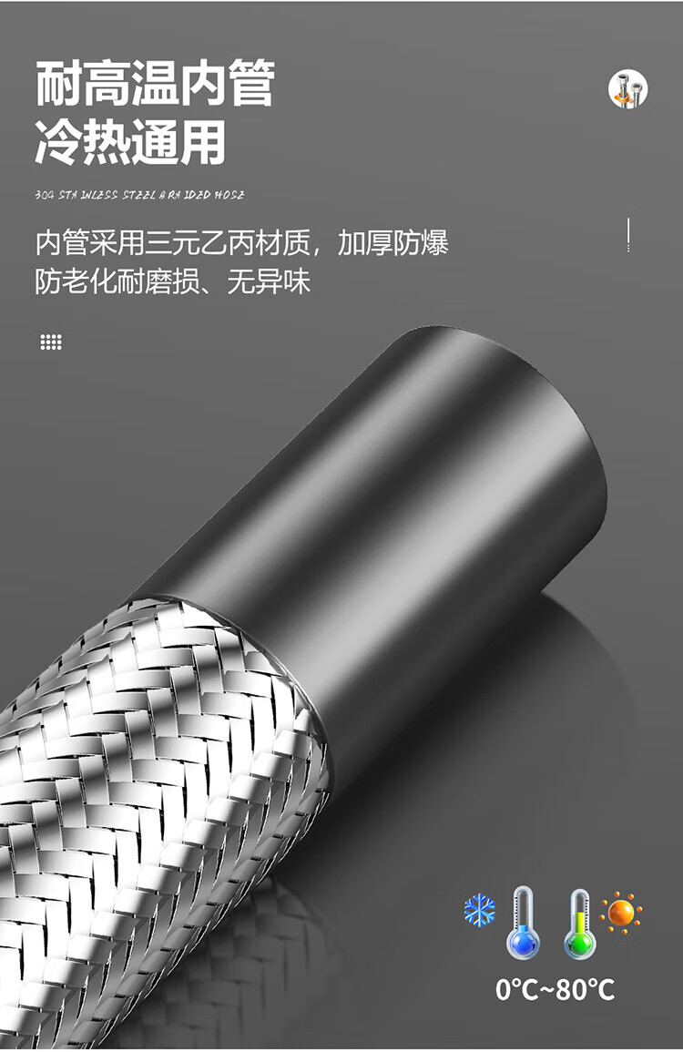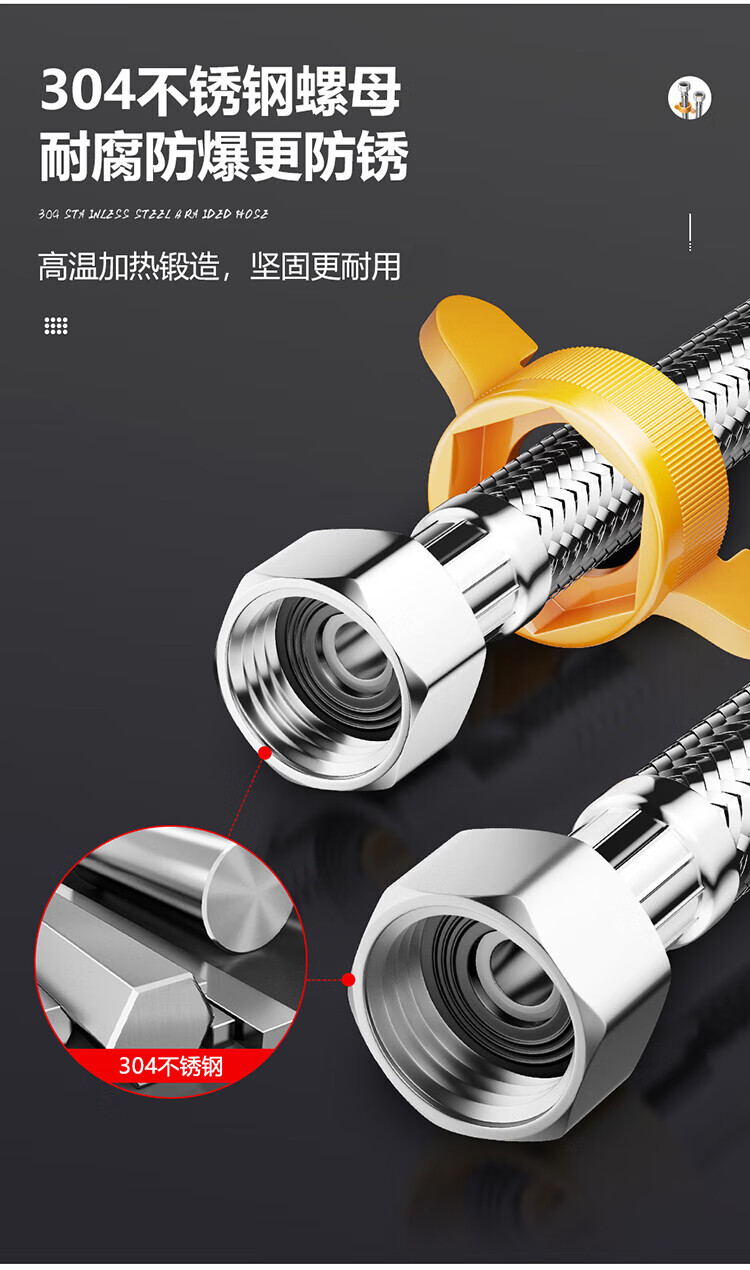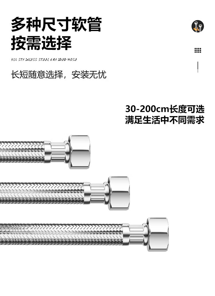 Larsd 304 stainless steel water inlet hose 40CM toilet water inlet pipe water heater hot and cold universal 4-point water supply pipe BH604