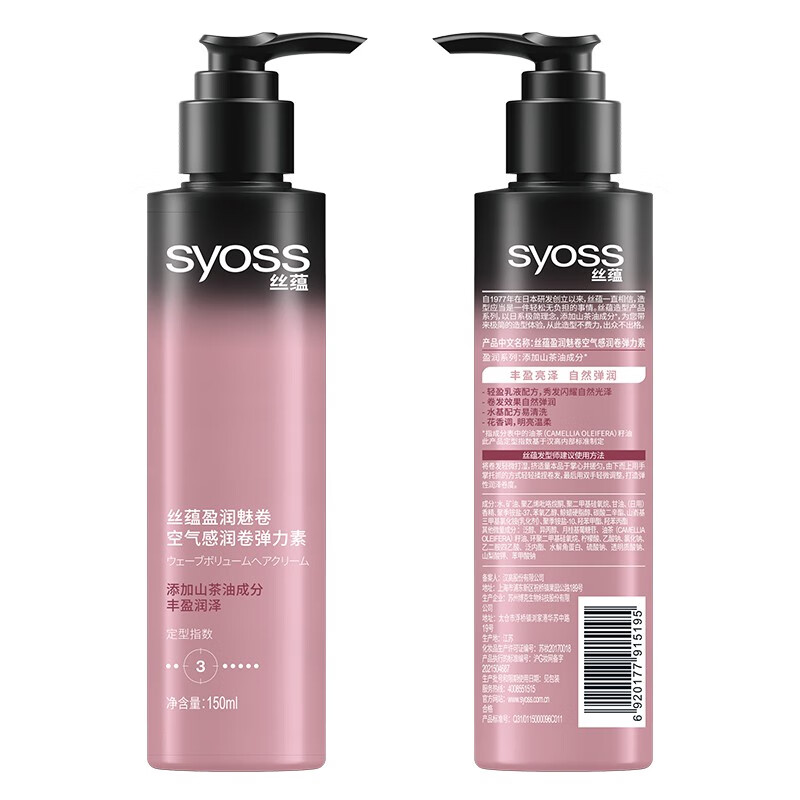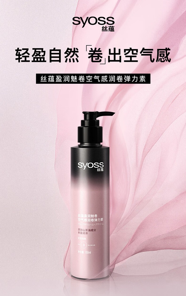 Silk Yun (syoss) elastin, moisturizing and charming curls, air-feeling elastin for curls, styling and protecting curls, anti-frizz, fluffy, long-lasting and refreshing, moisturizing and charming curls, air-feeling and moisturizing elastin 150ml