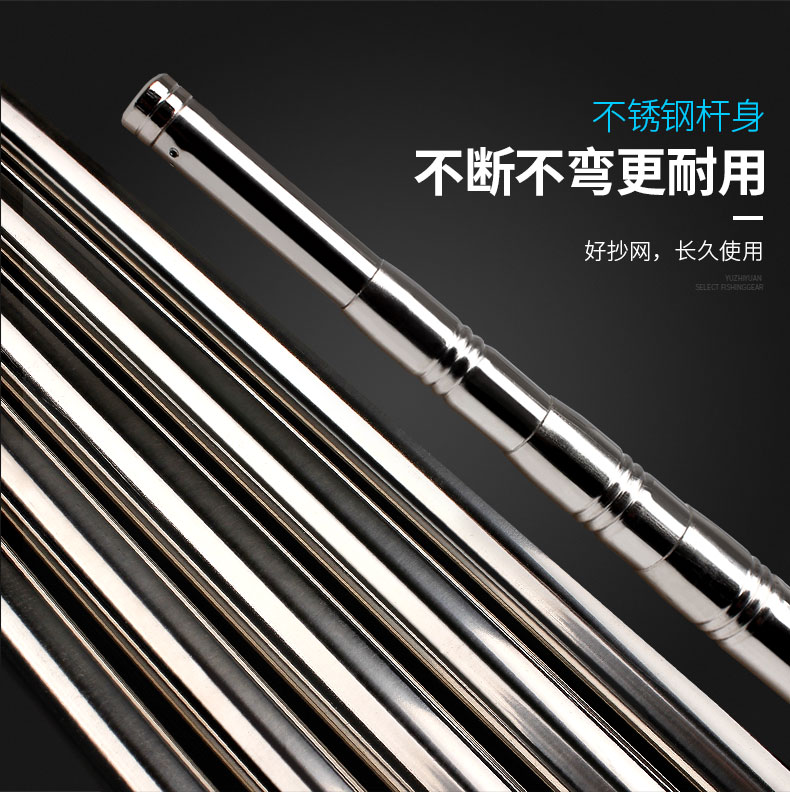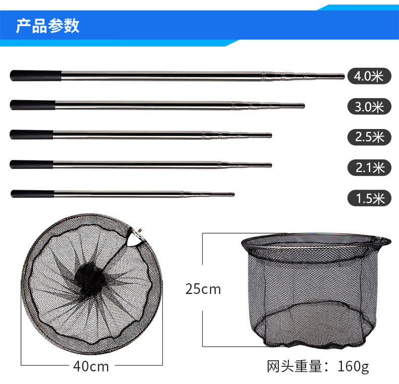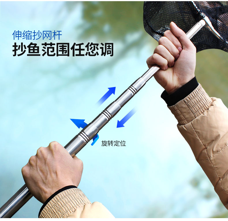 Conversion rate fishing net rod stainless steel positioning telescopic net rod folding net head fishing net bag fishing net bag rod set 1.5m rod + 40cm net head