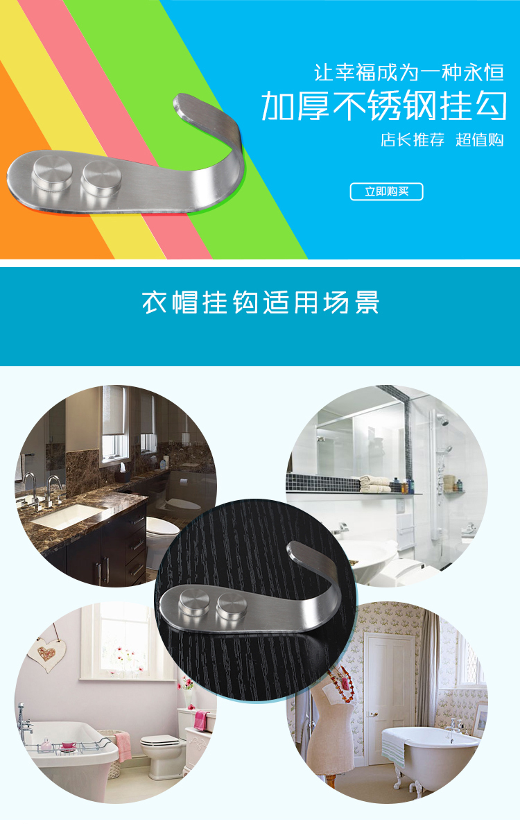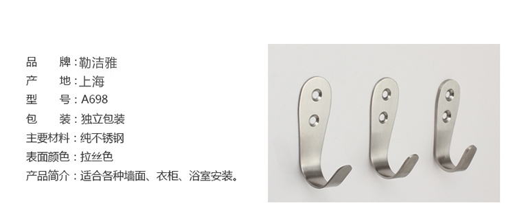 Lejieya fully solid punch-free stainless steel clothes hook and coat hook single hook clothes hook high and low hook wall hook clothes hook single hook punching dual use