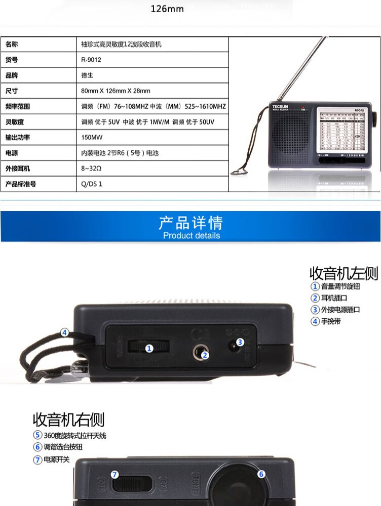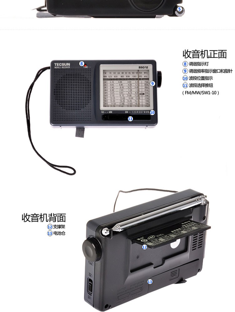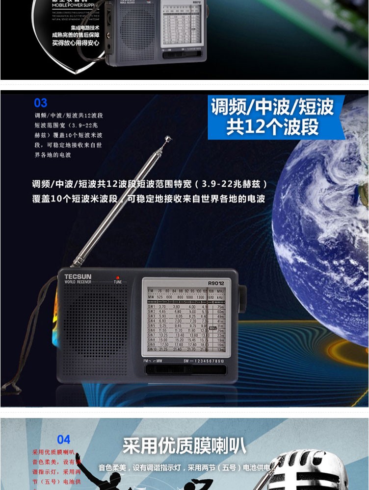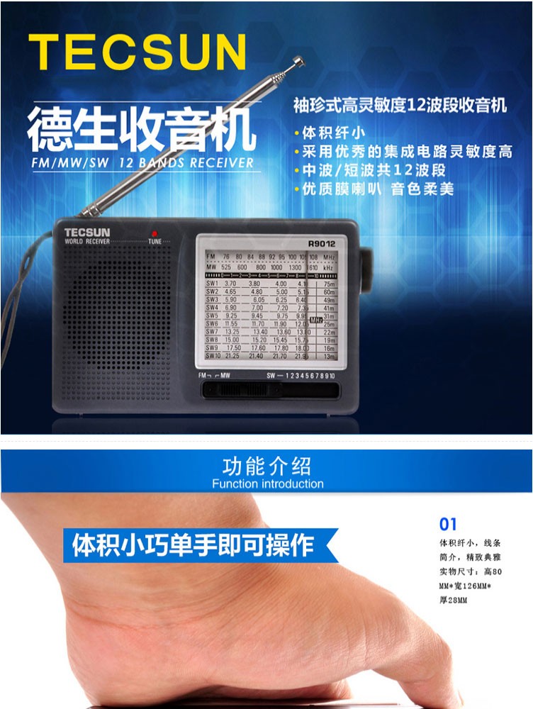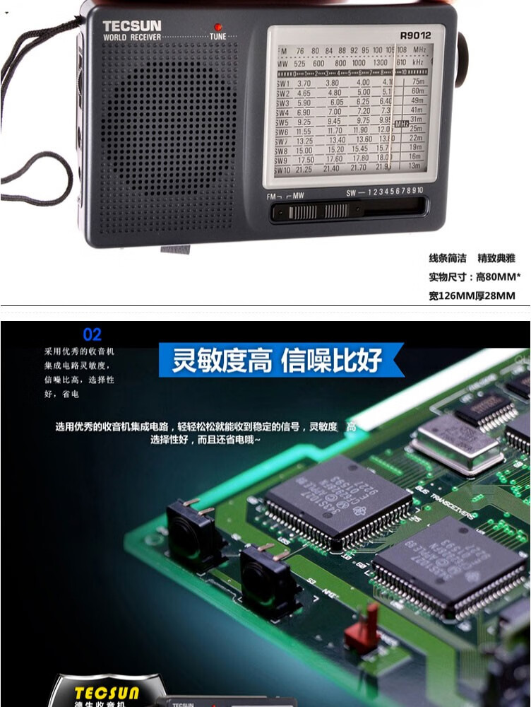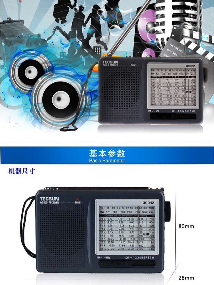 Tecsun R9012 Radio Full Band Pointer Portable Elderly Broadcasting Semiconductor English CET-4-6 College Entrance Examination Listening Test Radio Iron Gray
