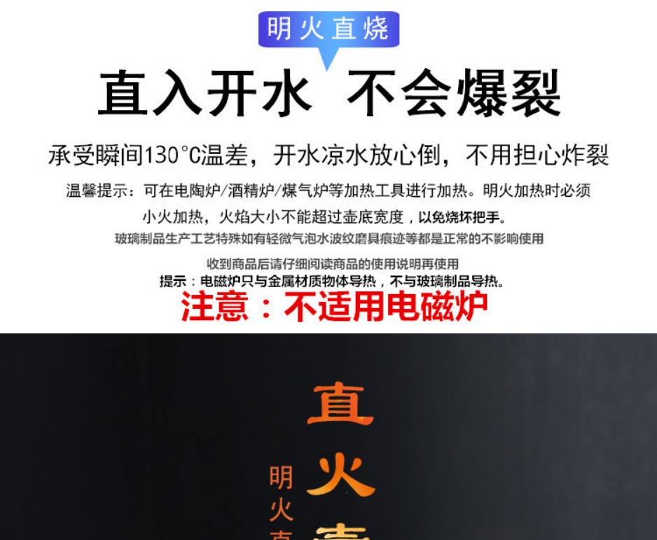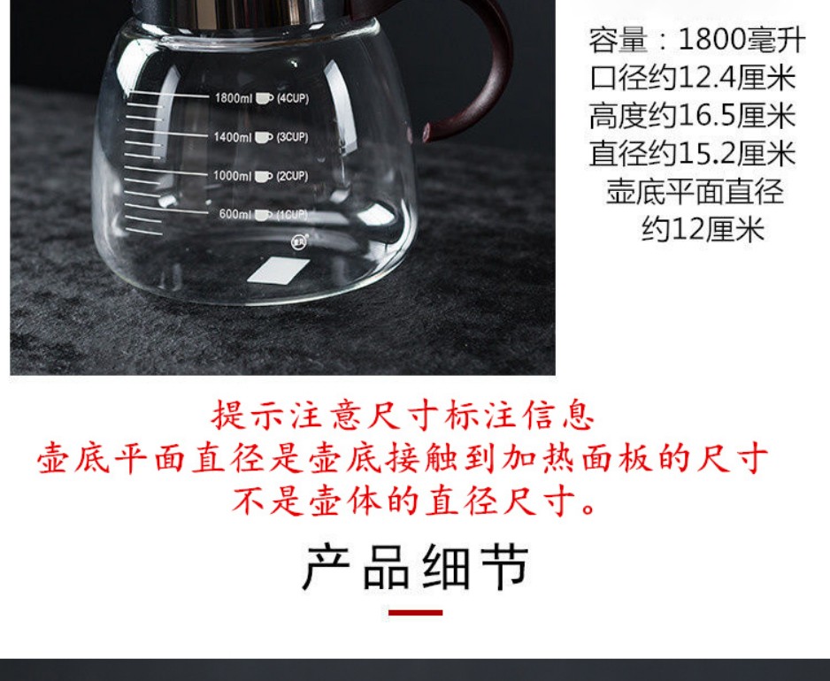 Chuyi open flame heating direct fire kettle high temperature resistant electric ceramic stove gas stove direct burning glass hot water kettle filled with boiling water tea kettle 1800ml kettle