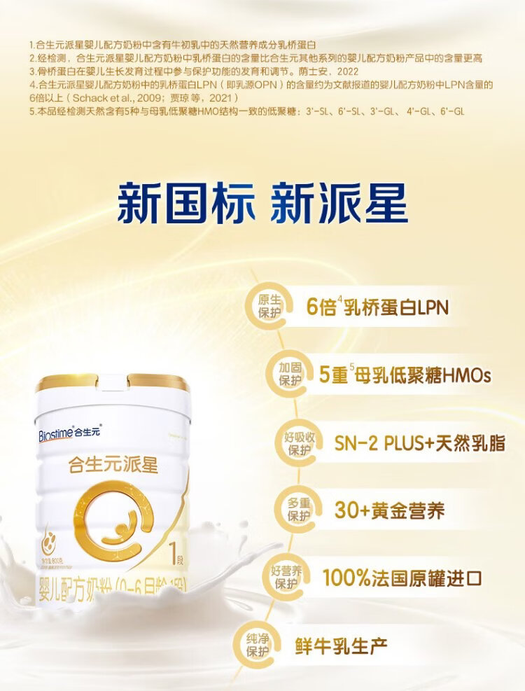 BIOSTIME Paixing infant formula milk powder 1 stage (0-6 months) imported from France 800g new national standard