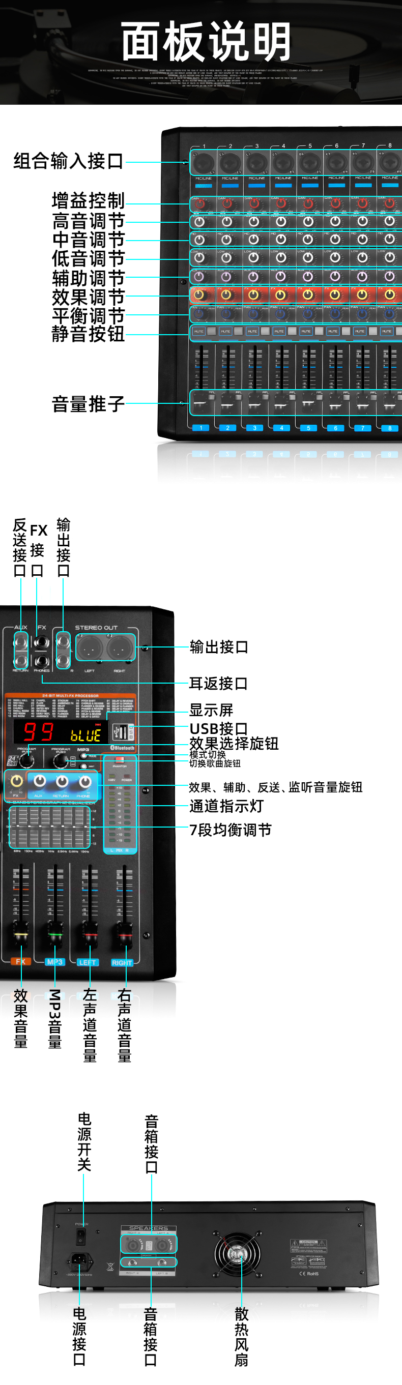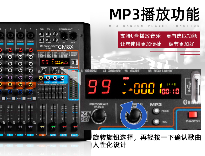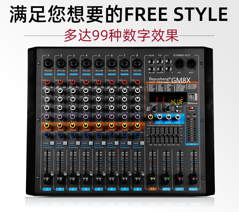 Depusheng GM8X professional 8-way power amplifier mixer all-in-one stage conference reverberation effect with Bluetooth playback wedding high-power performance GM8X with power amplifier