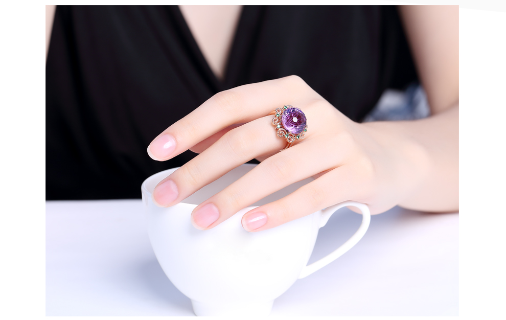 Ouchini Amethyst Ring Millennium Cut Amethyst Gemstone Ring Gift 11 Carats 18K Rose Gold Customized