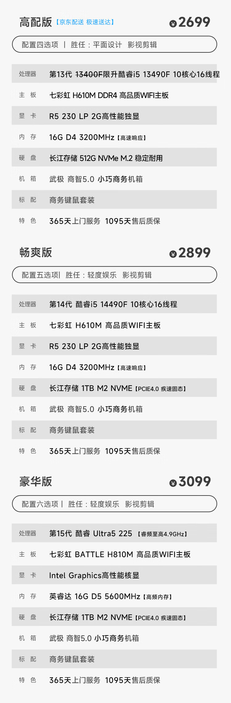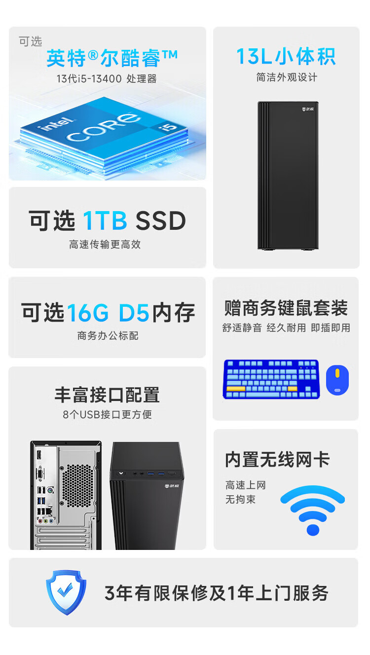 Wuji Shangzhi Core 14th Generation i5 14490F Enterprise Procurement Mini Office Design Commercial Home Desktop Computer Game Console Complete Machine DIY Assembly Machine JD Logistics 13490F + Independent Display + 512G | Configuration Four