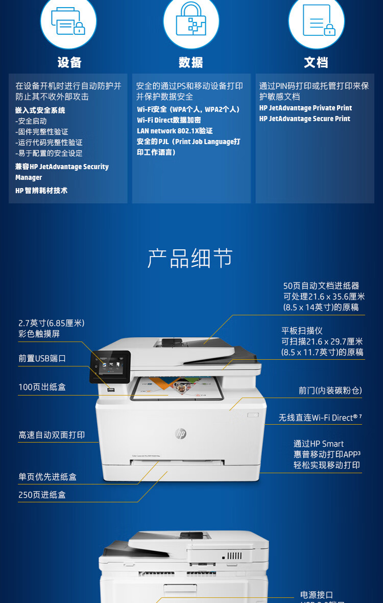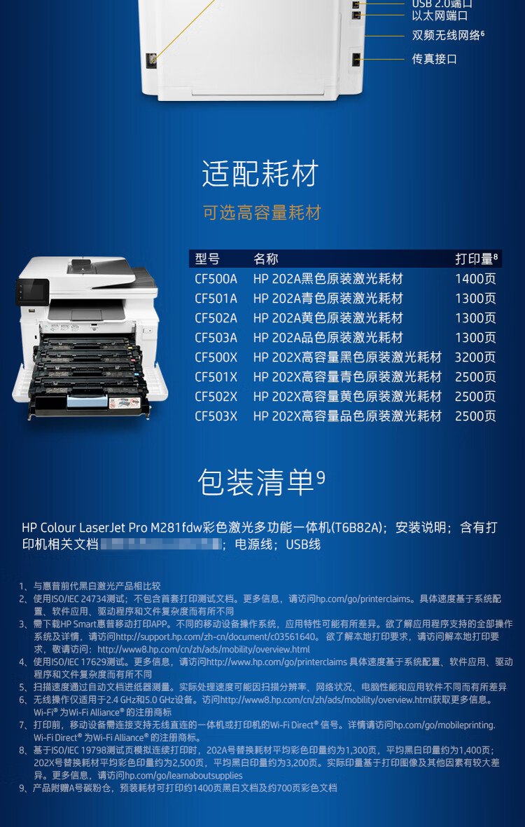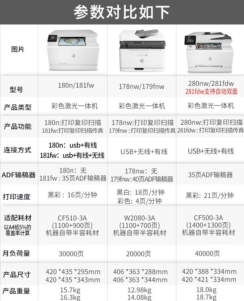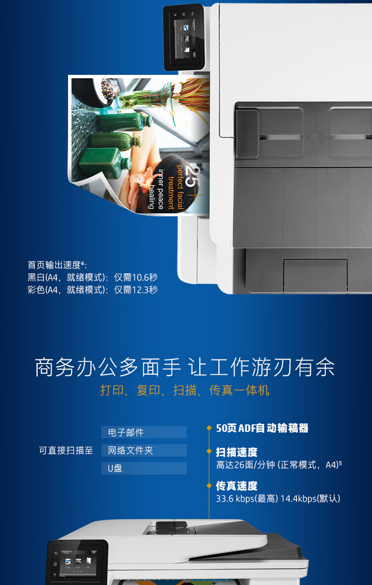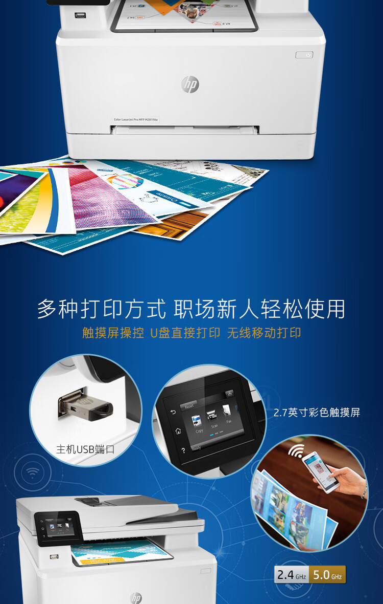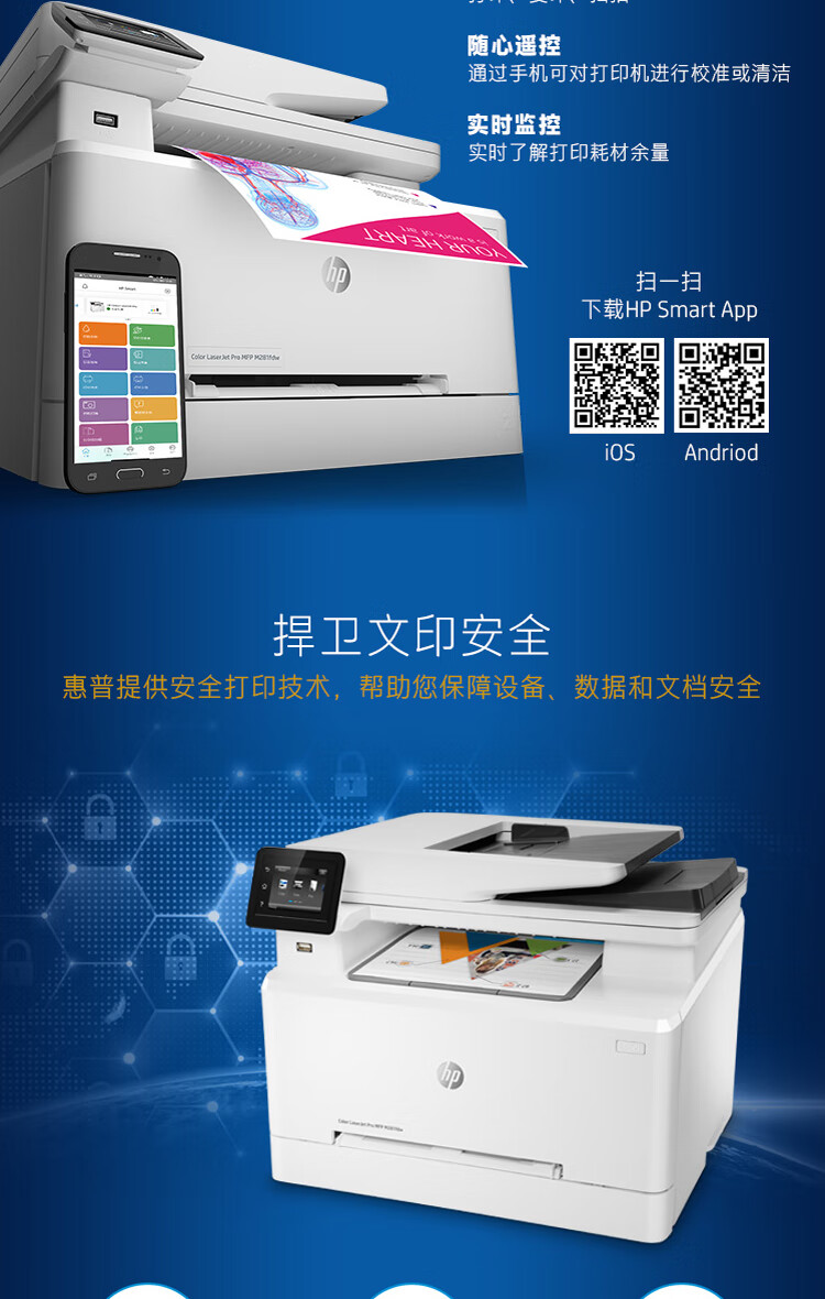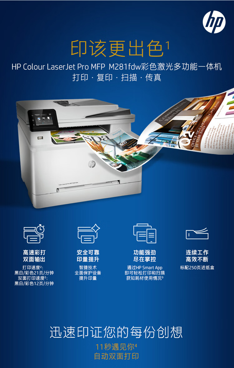 HP (HP) 281fdw A4 color laser printer copy and scan multi-function all-in-one machine continuous copy and scan automatic double-sided printing home office 281fdw print copy scan fax + wired and wireless) black color at the same speed