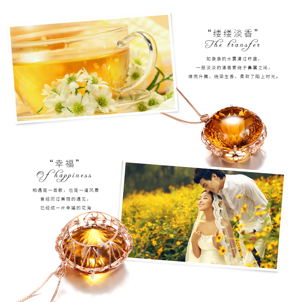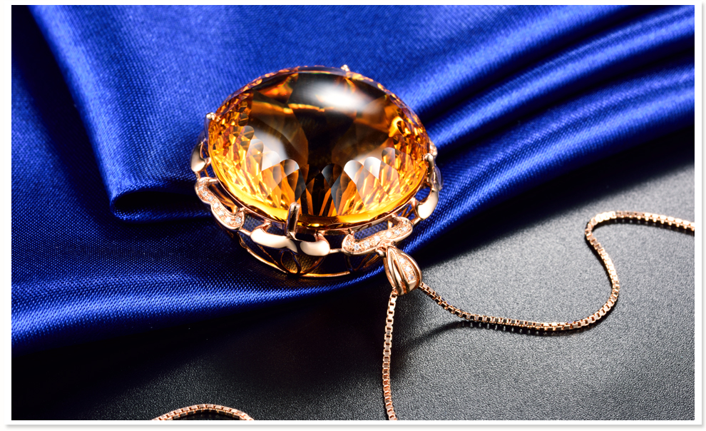 OUCERNY 18k gold set with natural citrine pendant, millennium cut jewelry, colored gemstone pendant certificate, gift to your lover