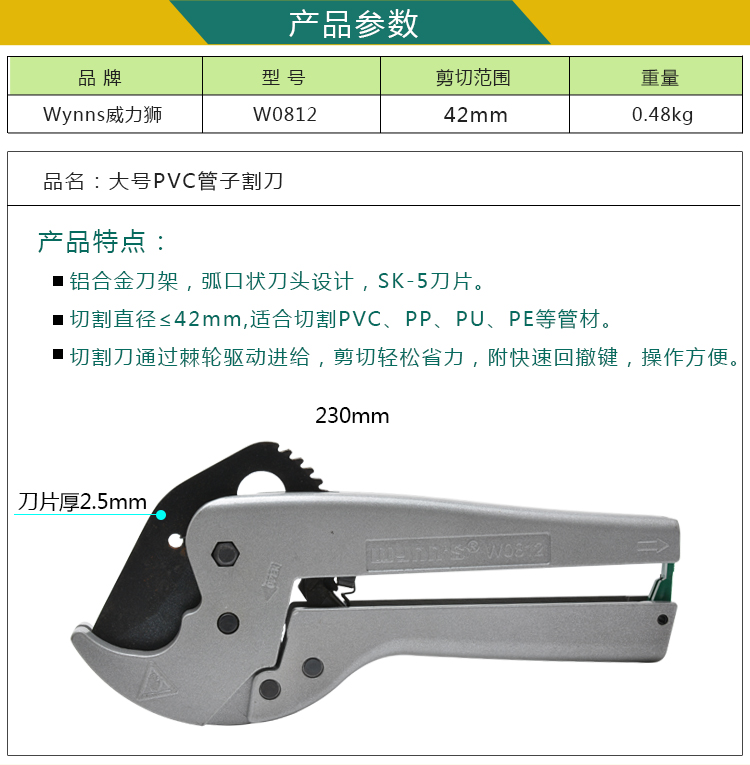 Power Lion (wynn s) ratchet pipe cutter, fast PVC pipe cutter, 42mm pipe cutting, quick pipe cutter W201B