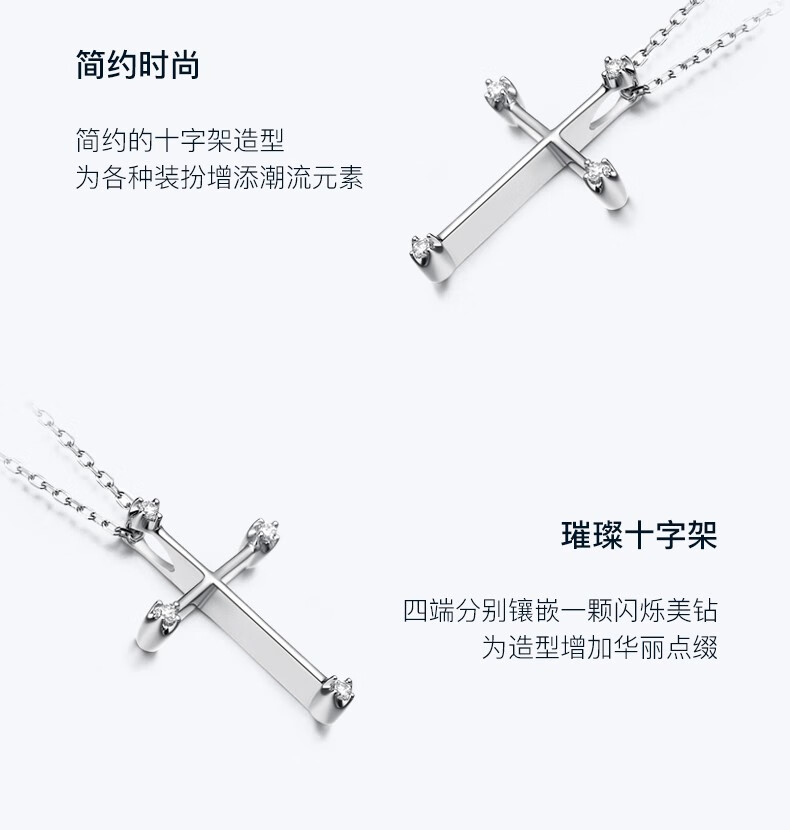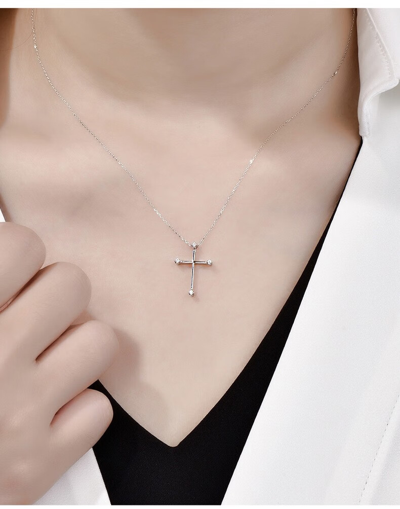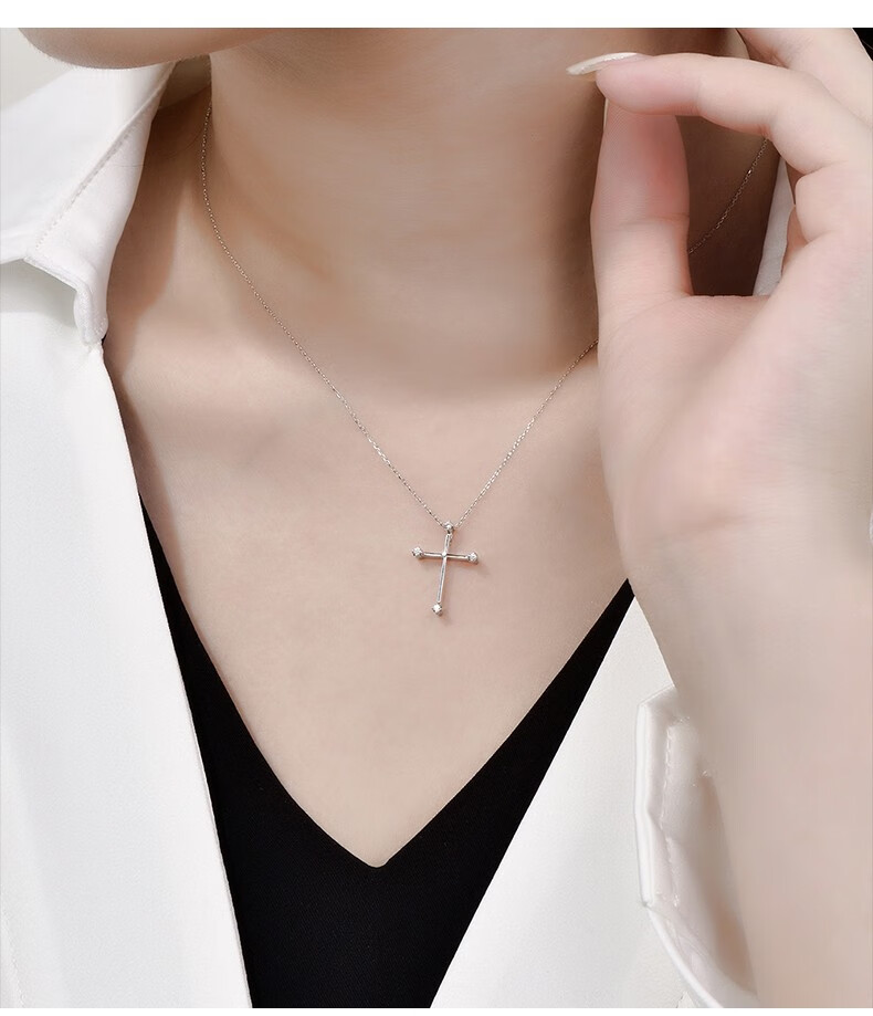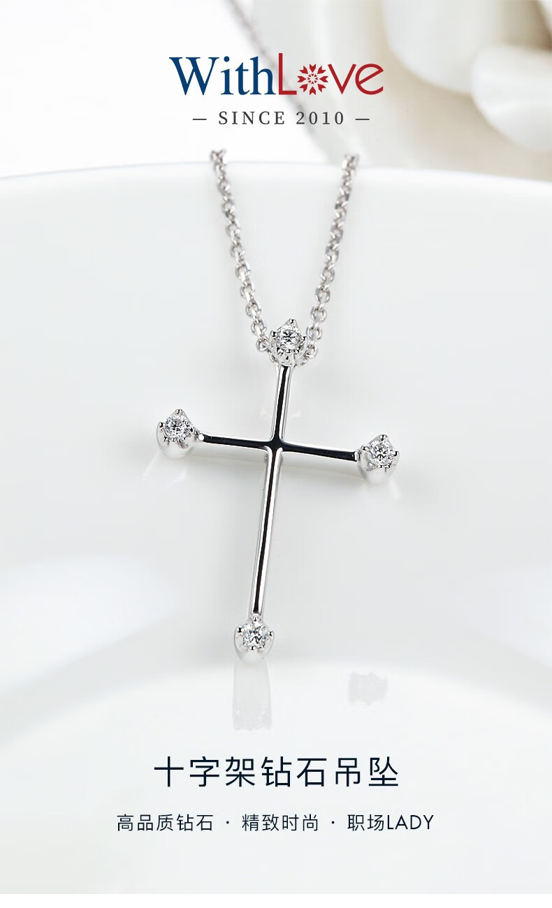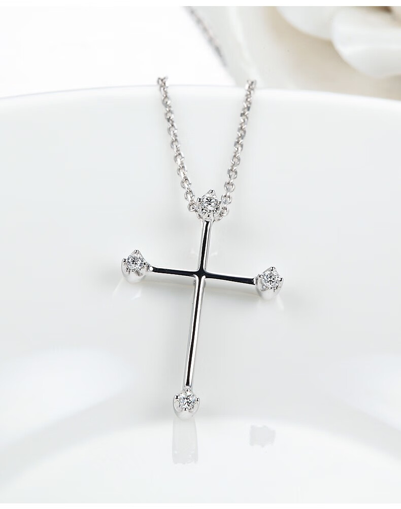 WithLove Weiaipinyue White 18K Gold Personalized Simple Diamond Pendant Women's Cross Necklace Pt950 Platinum/Ready Stock (Free S925 Silver Chain)