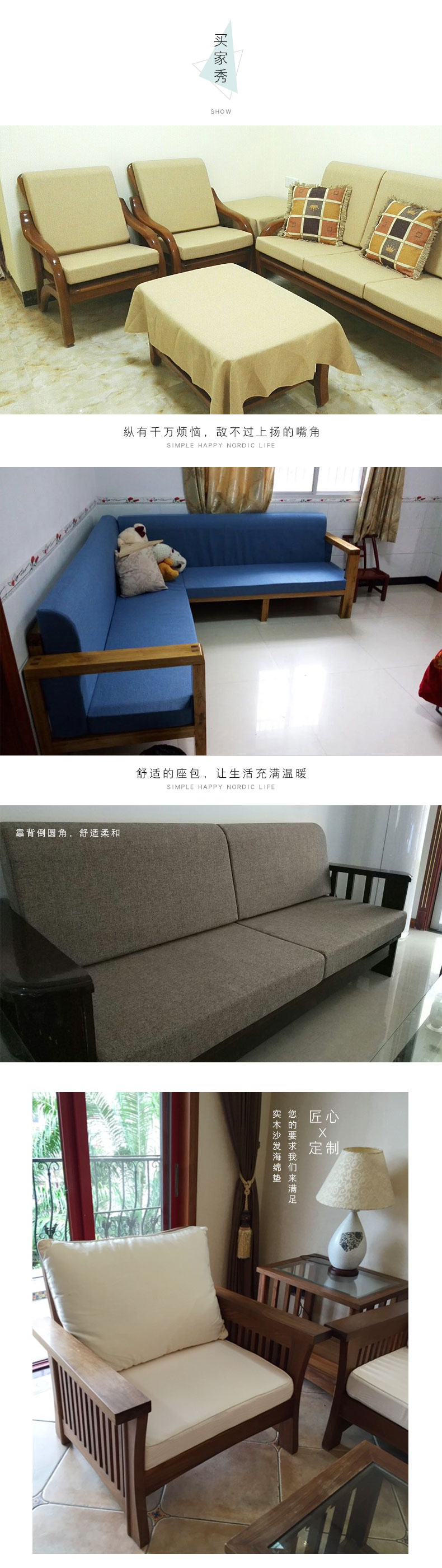 Love crystal custom-made 35D/60D high-density sponge sofa cushions mahogany solid wood cushions sofa cushions and chair cushions custom-made 60D high-density sponge (thickened and hardened) customized special shooting