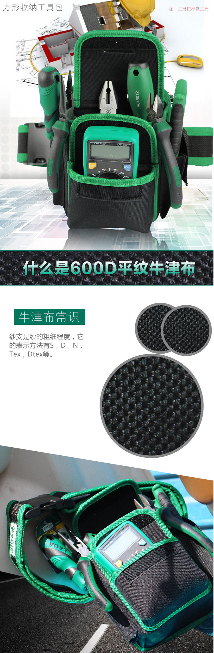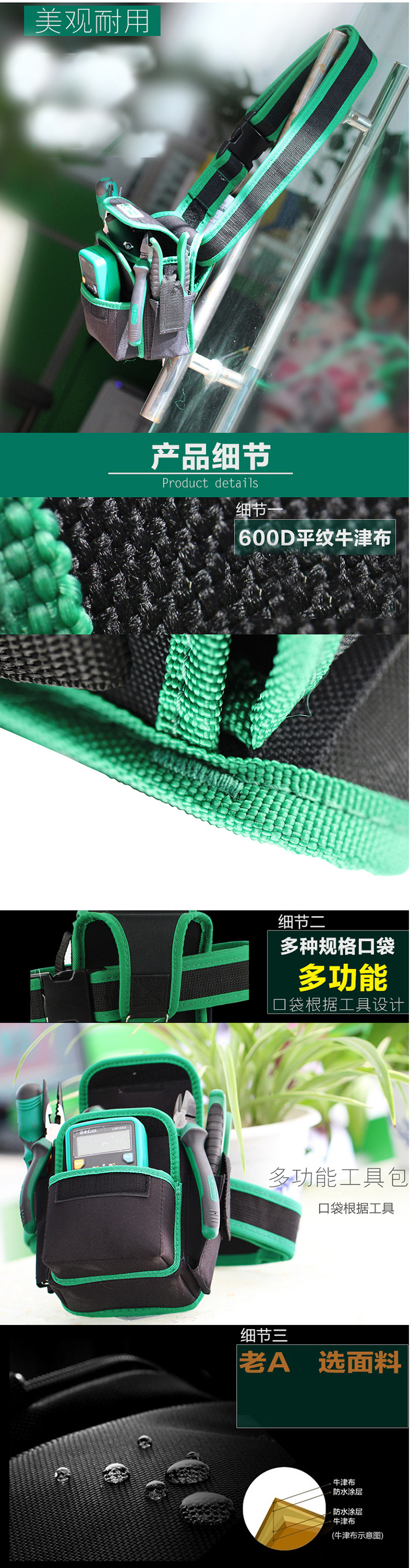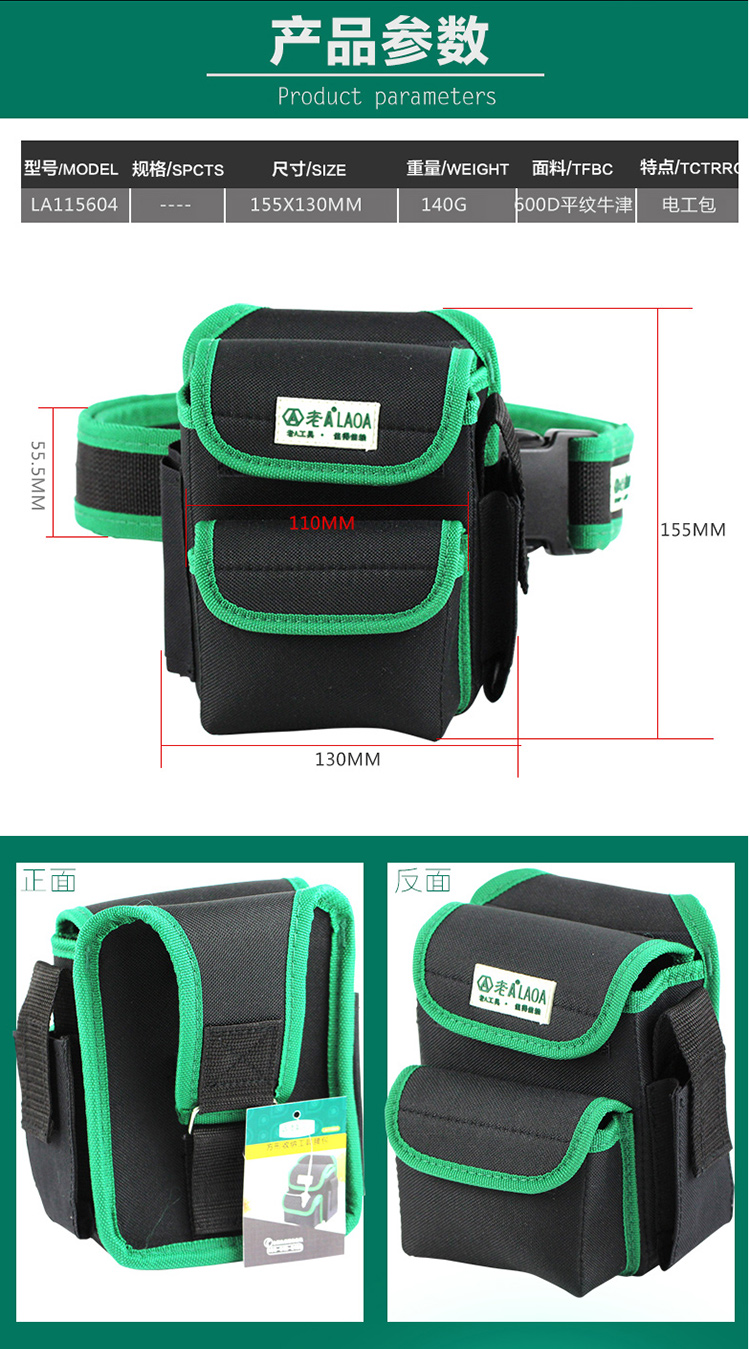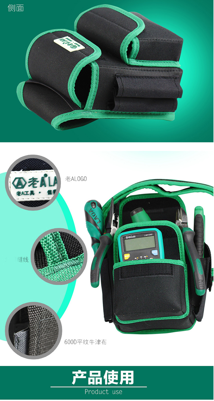 LAOALA115604 Electrician's Waist Bag Waist Bag Multifunctional Repair Tool Bag Crossbody Bag Strap Wear-Resistant Electrician's Bag Tool Waist Bag + Belt