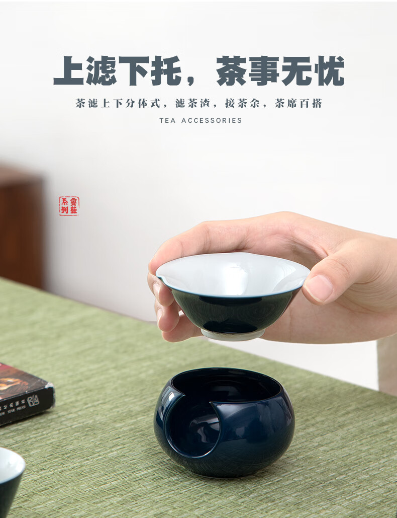 Mr. Nanshan Kung Fu tea set ceramic tea separator filter tea ceremony accessories porcelain tea drain Ji blue gold tea filter Ji blue gold tea filter