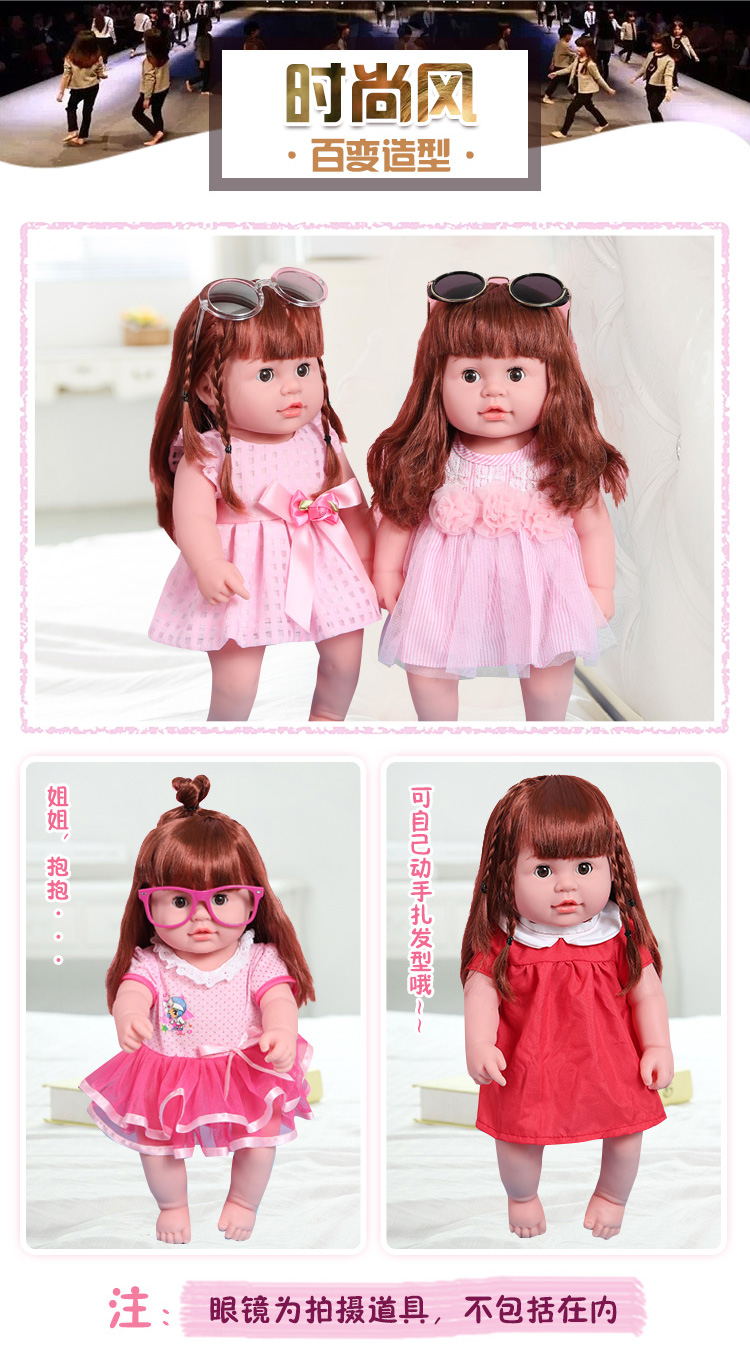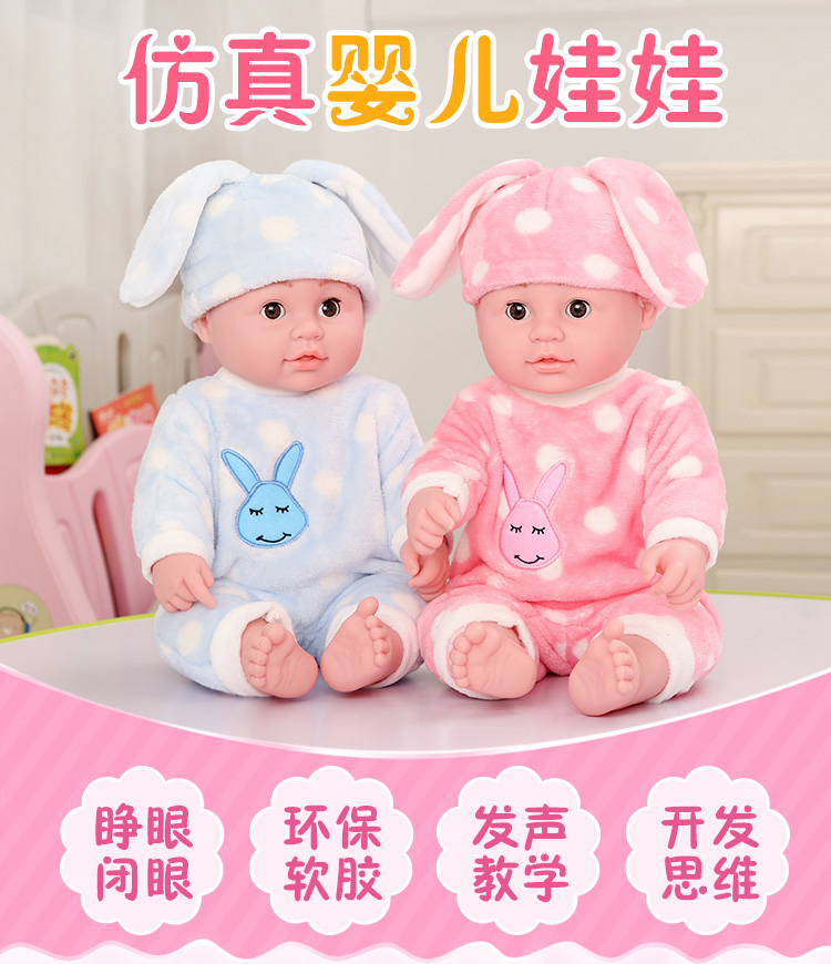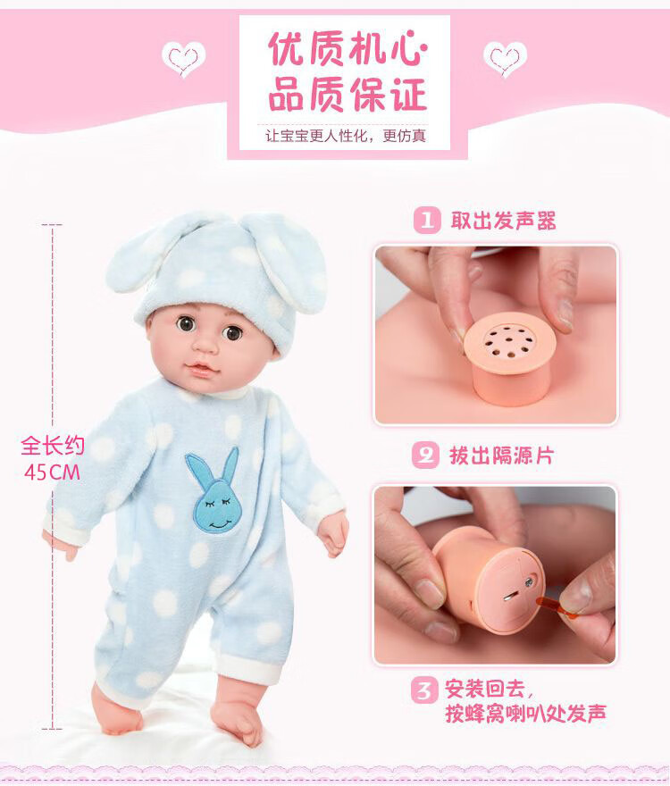 Happy Note Doll Simulation Talking Rag Doll Full Soft Plastic Children's Toy Early Education Doll Doll Princess Birthday Gift JQ-018 Pink Bear (Female) 45CM + 248 Sounds + Free Clothes