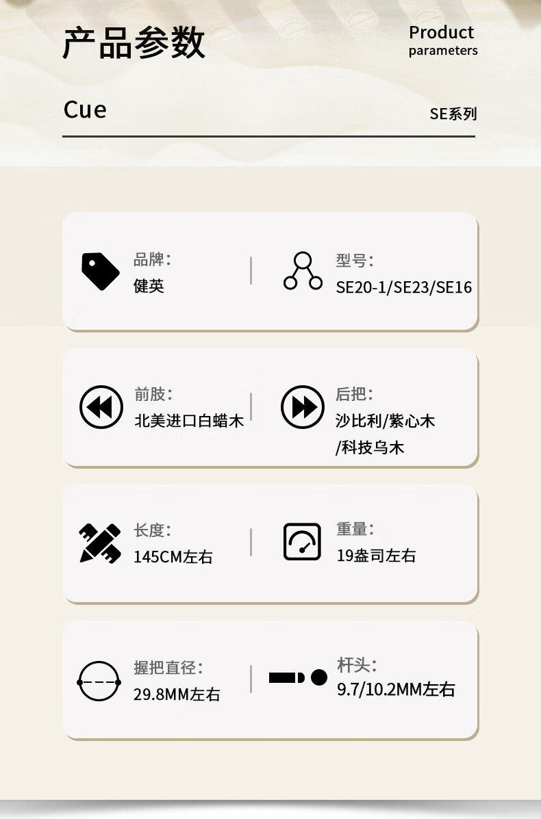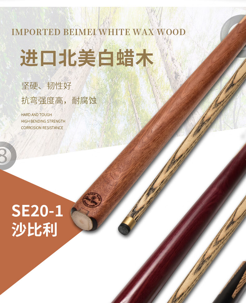 Jianying billiards JIANYING billiard cue small head black 8 English snooker cue Chinese black eight-piece male SE20 1 piece (10.3mm) Sapele 1 piece
