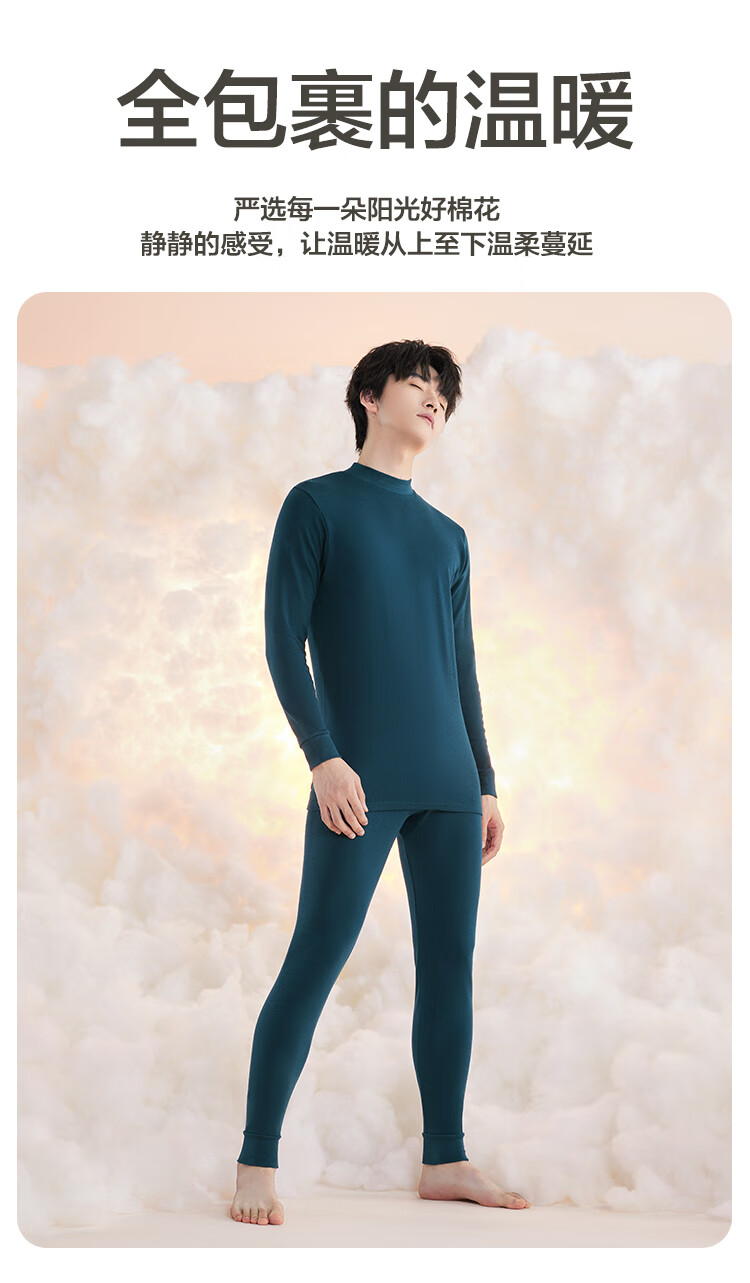Red Bean Underwear Men's 7A Antibacterial Upgraded Autumn Clothes and Autumn Pants Pure Cotton Suit Half Turtle Collar Thin Bottoming Thermal Underwear