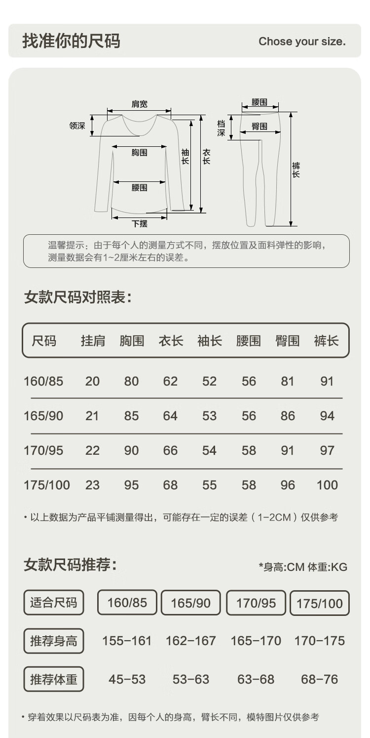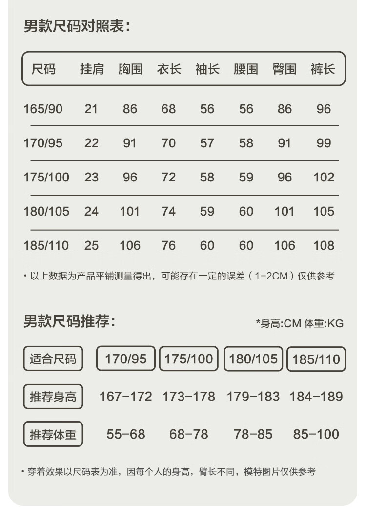 China (cm) 160-165/84-86 165-170 / 88-90 167-172 / 92-96 168-173 / 98-102 170-176 / 106-110