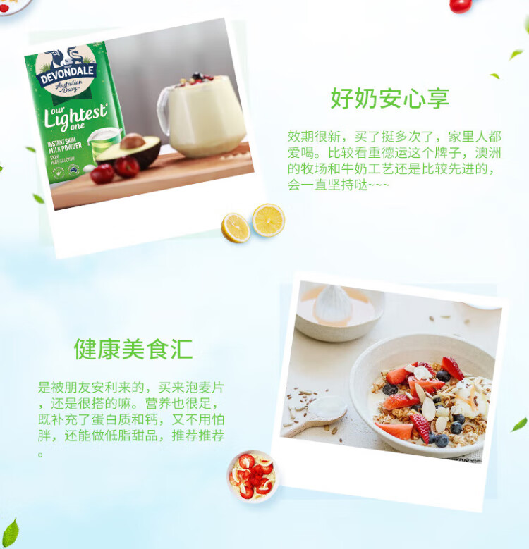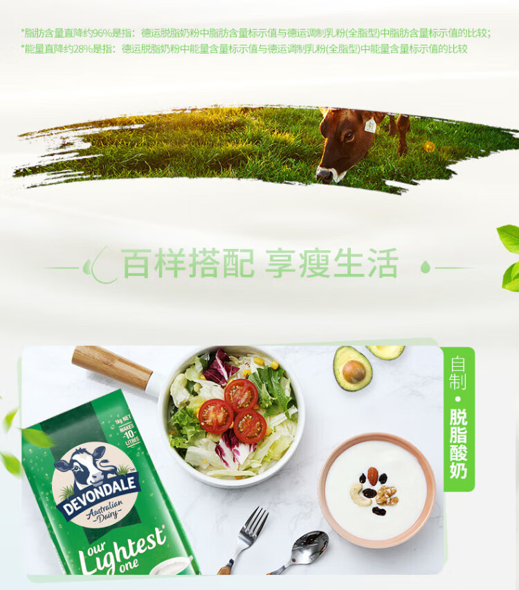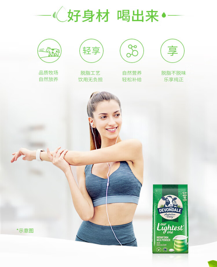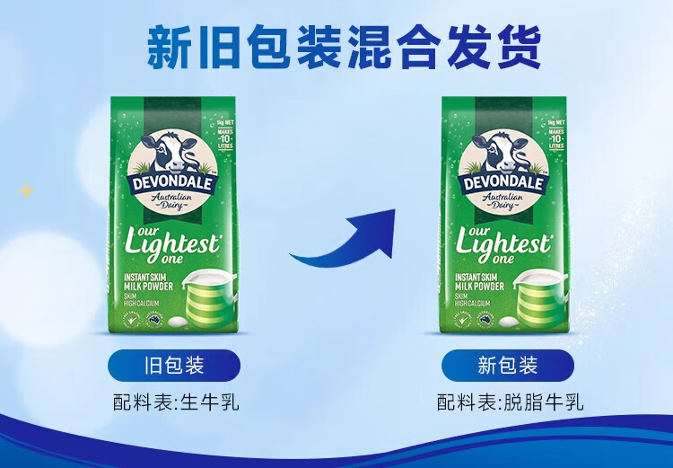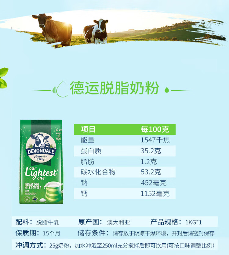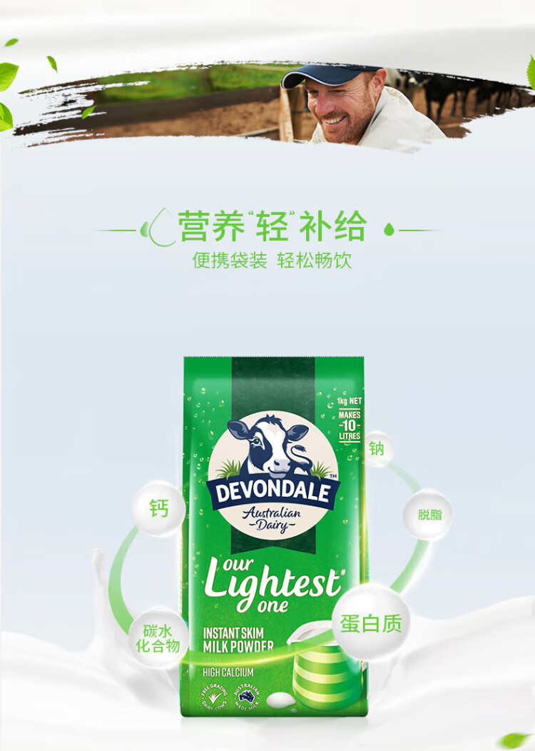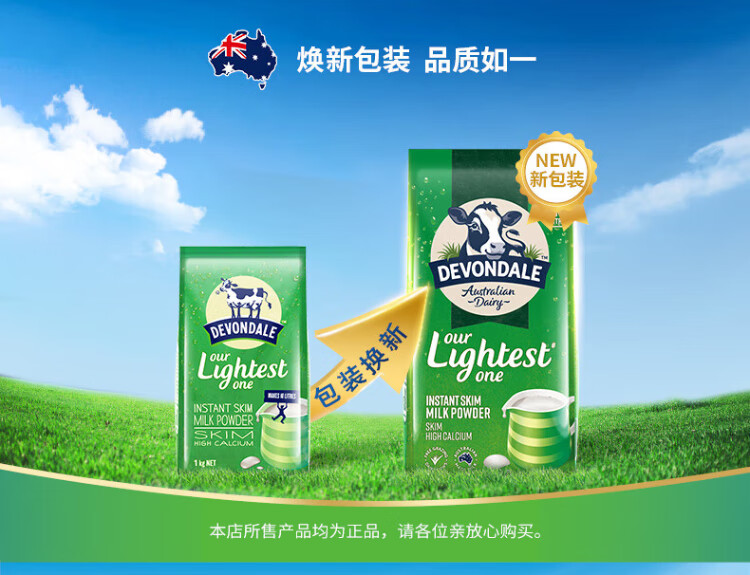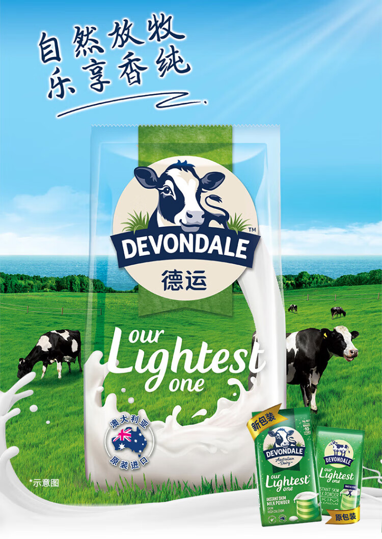 Devondale Skimmed Adult Milk Powder 1kg Bag Skimmed Milk Powder Student and Children's Milk Powder High Calcium Australian Original Imported Breakfast