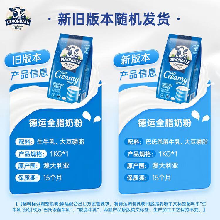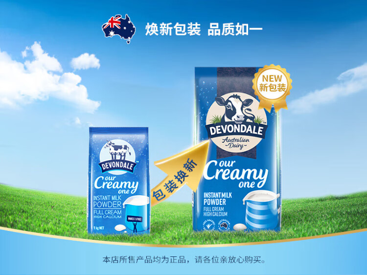 Devondale leche en polvo entera para adultos 1 kg de leche en polvo modificada en bolsas leche en polvo para estudiantes para niños con alto contenido de calcio desayuno importado original australiano