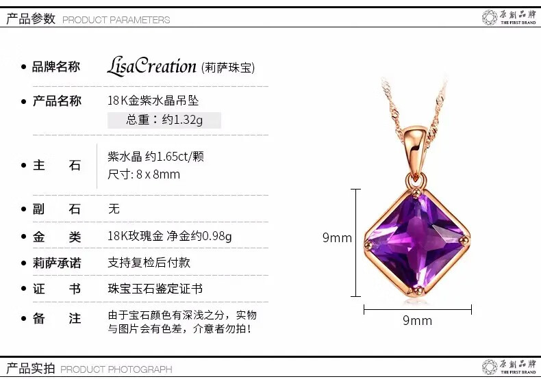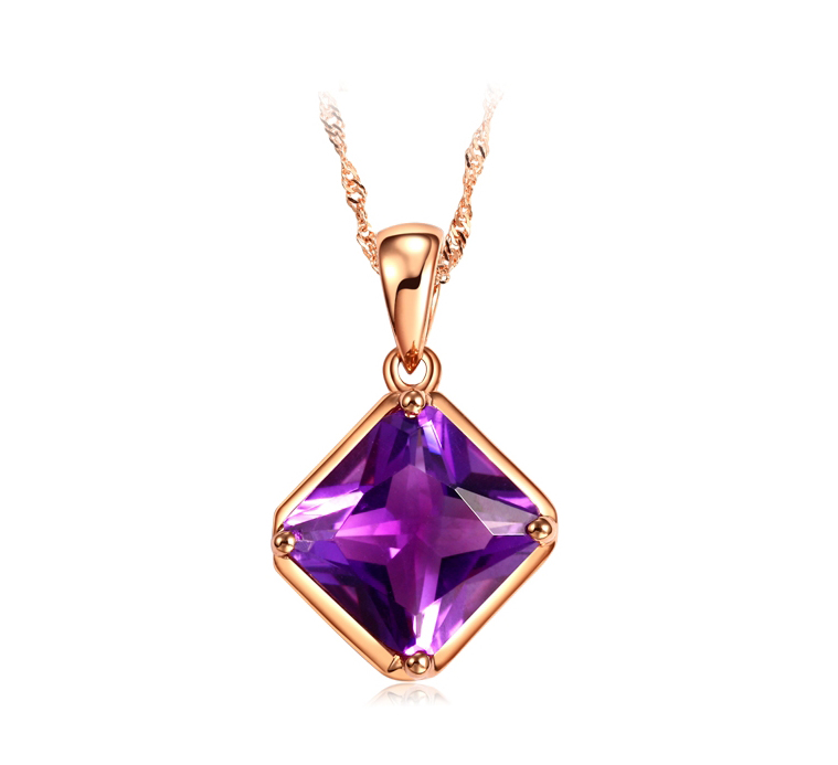 Lescreation Lisa Jewelry 18K rose gold set with 1.65 carat amethyst pendant women's purple gemstone 1.65 carat 18K gold amethyst pendant