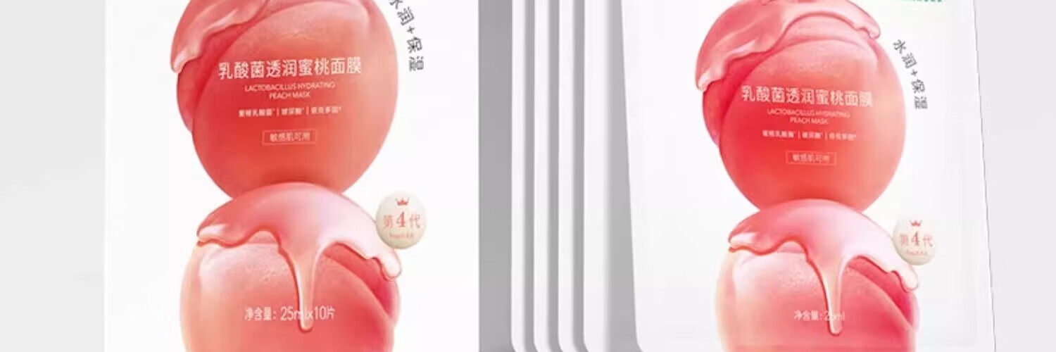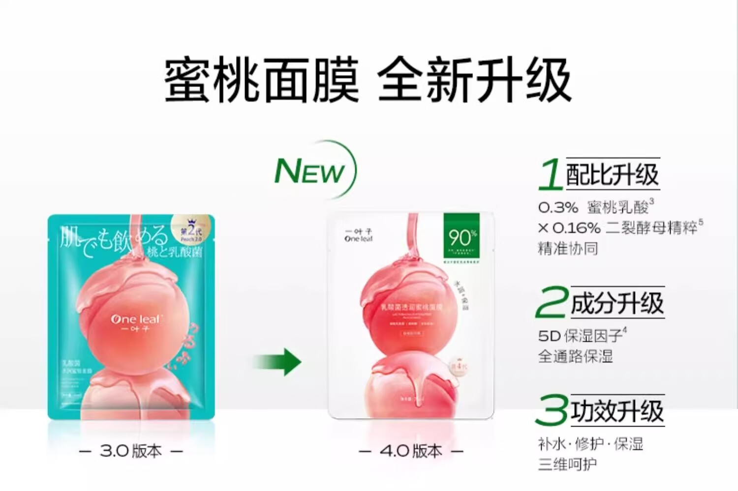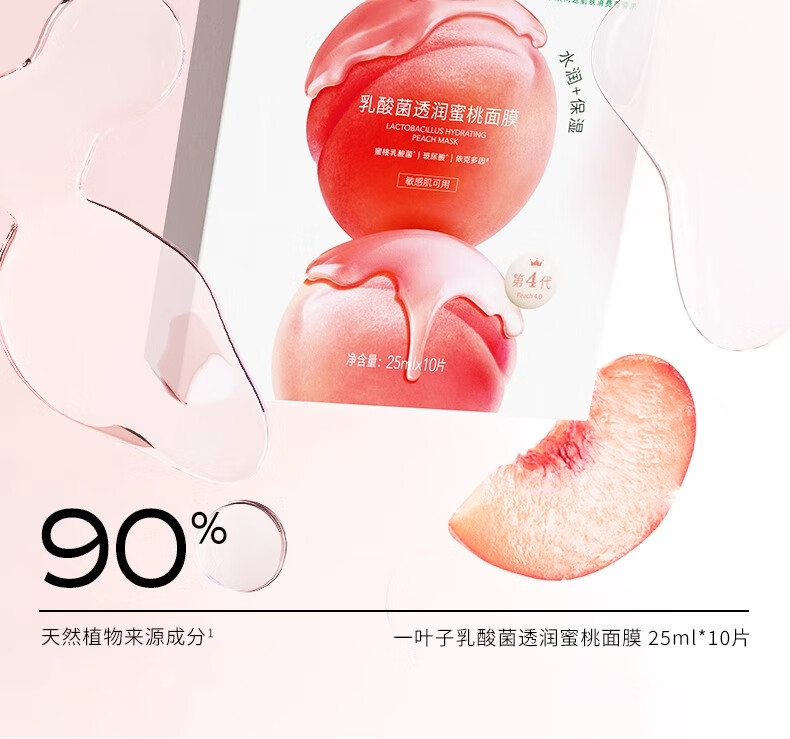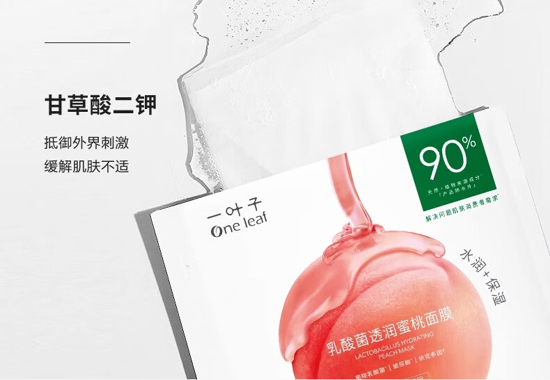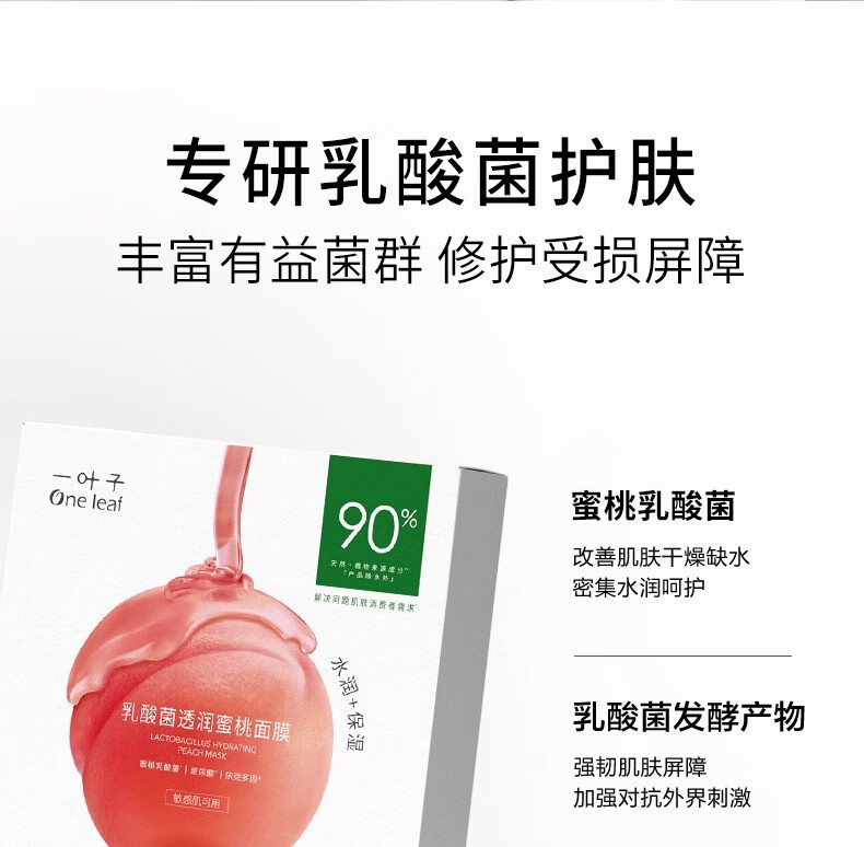 One leaf facial mask, lactobacillus peach mask for women, 30 pieces, hyaluronic acid hydrating and moisturizing skin care products, birthday gift for girlfriend, the second one is more cost-effective, peach mask, 30 pieces