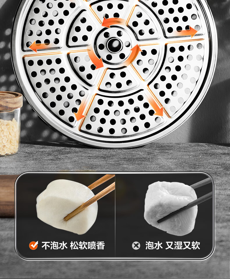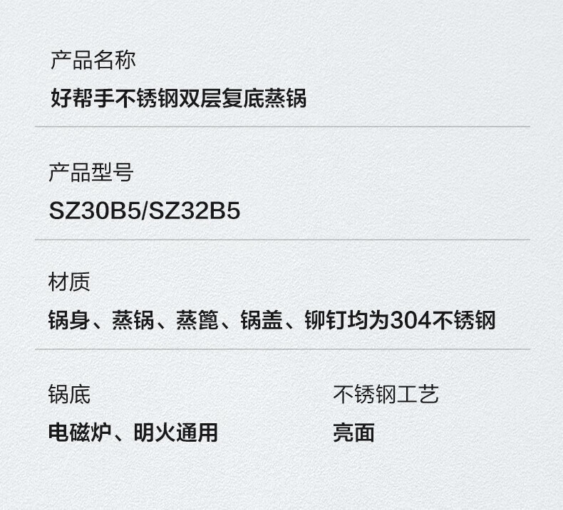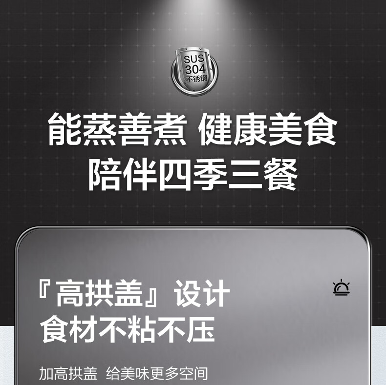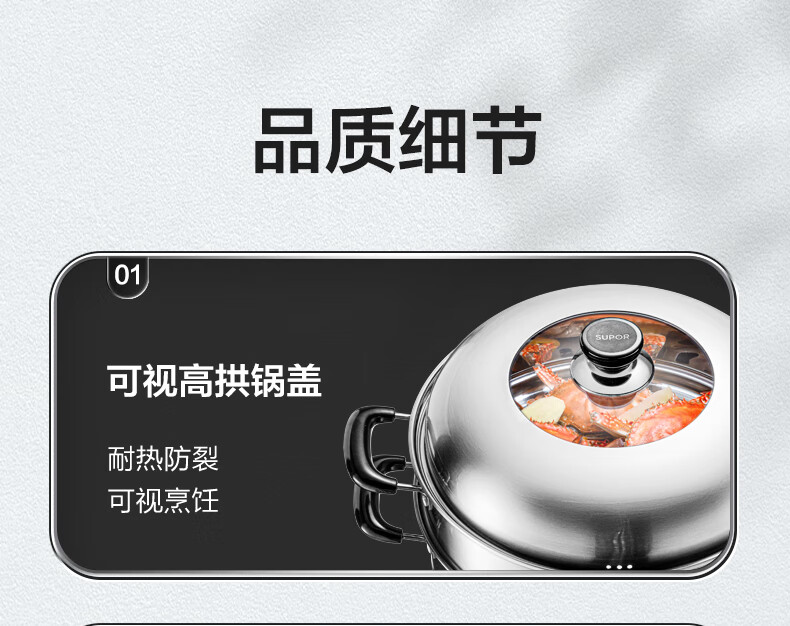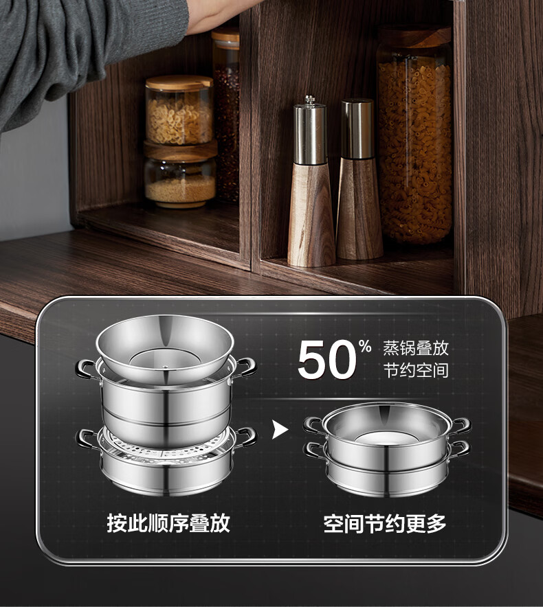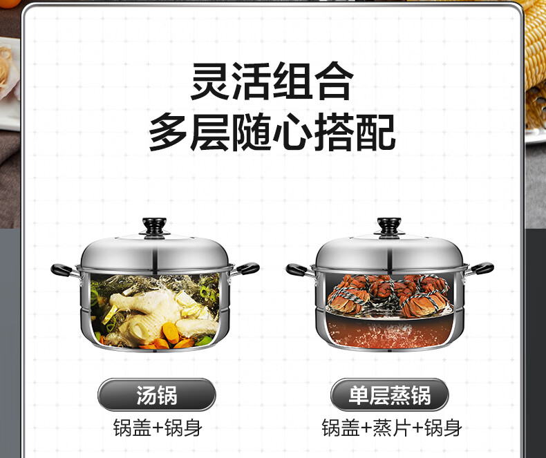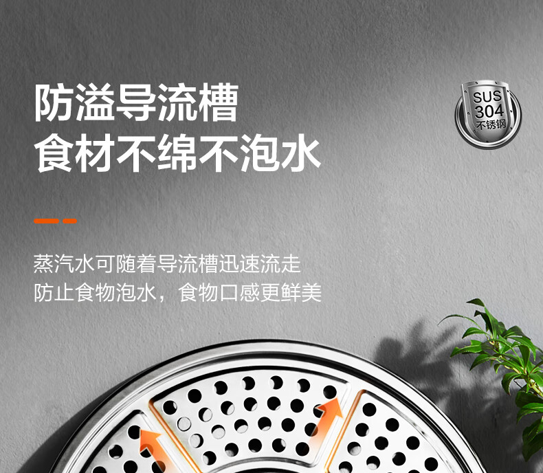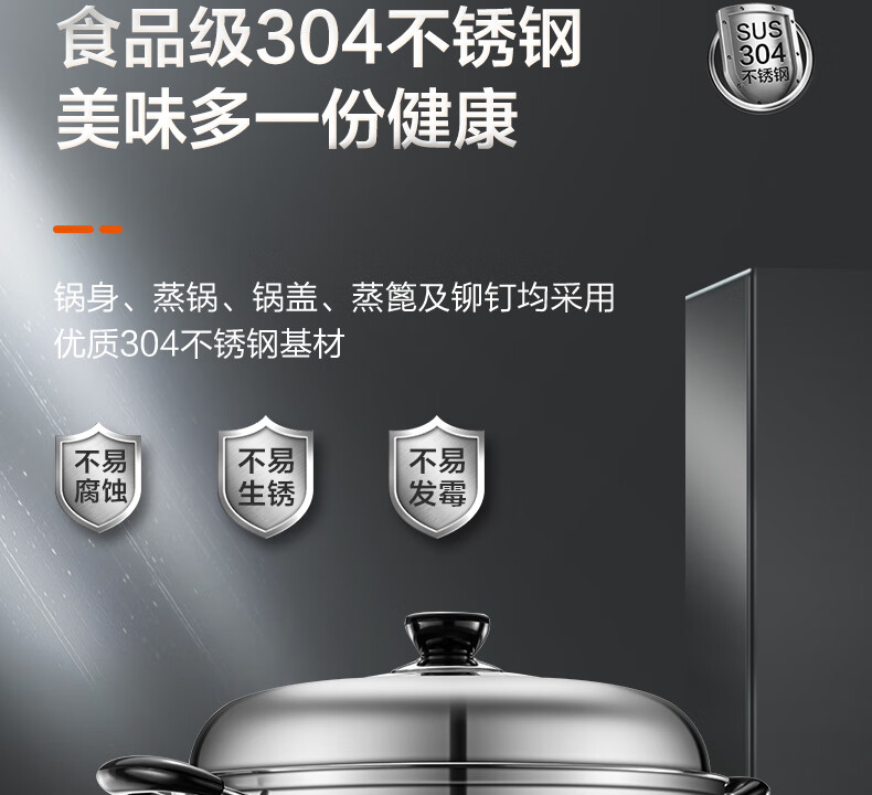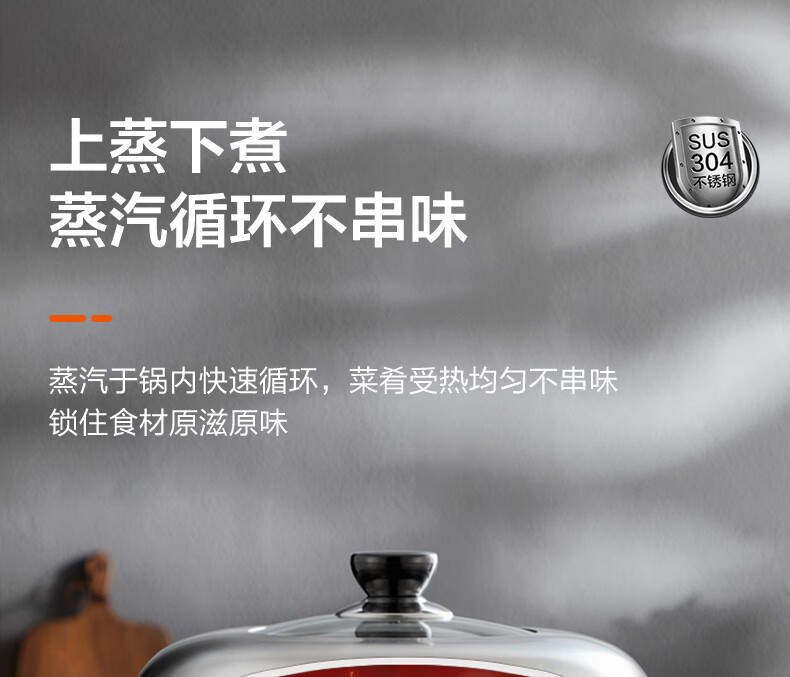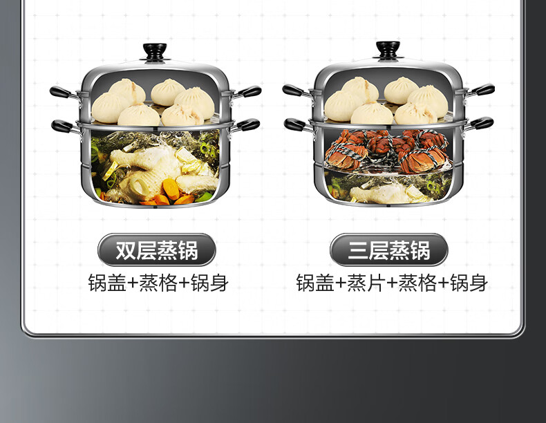 SUPOR large fish steamer double-layered large steamer thickened 304 stainless steel steamed buns universal gas stove induction cooker SZ32B5 diameter 32cm