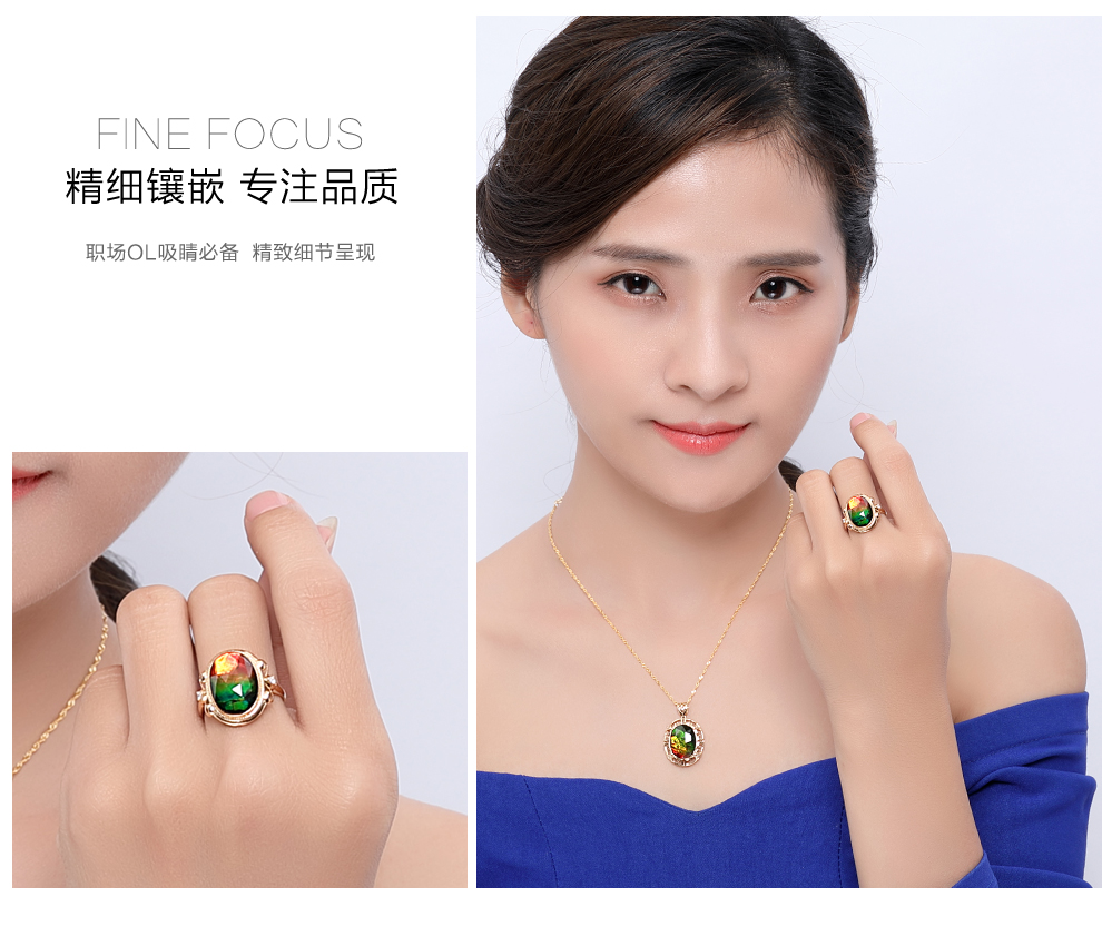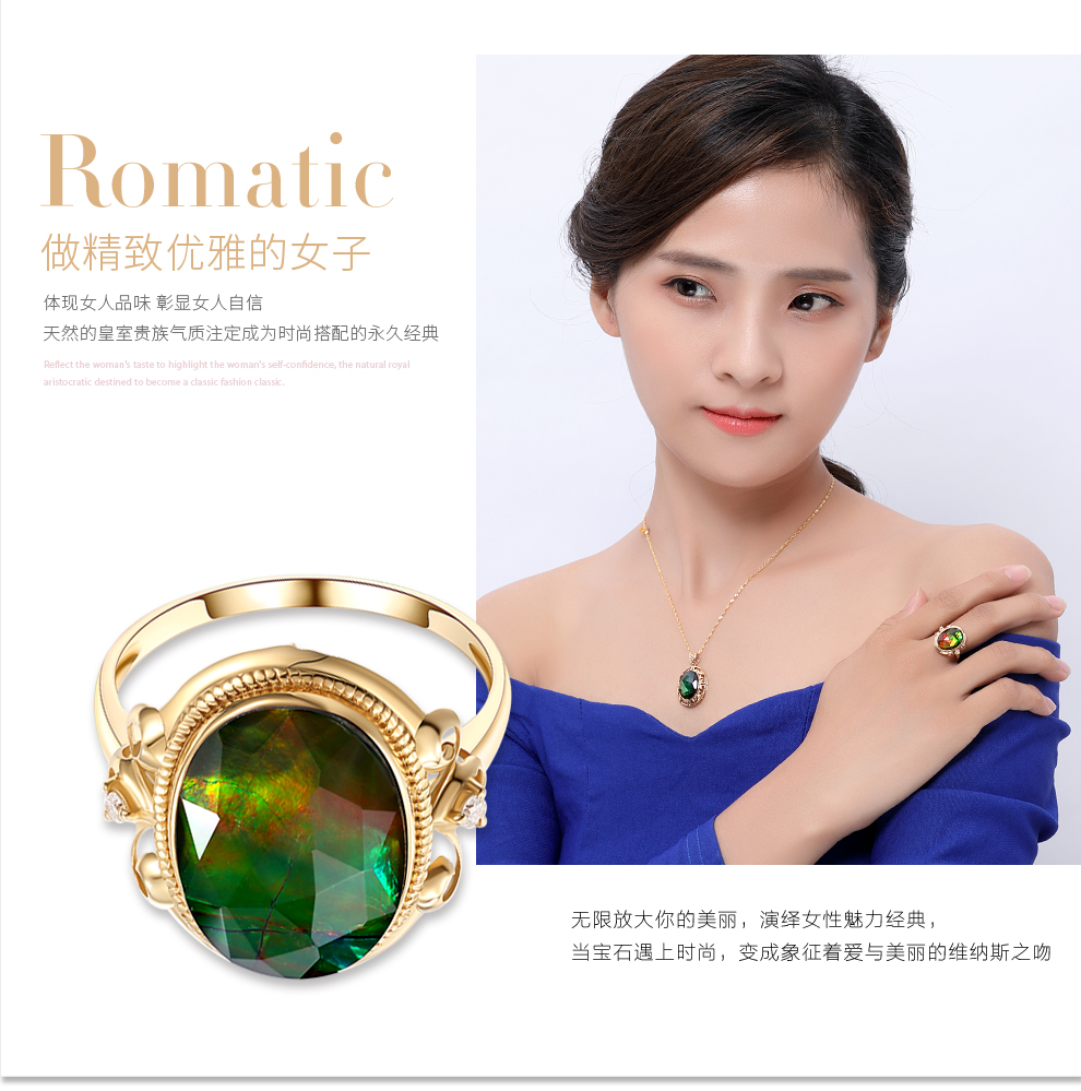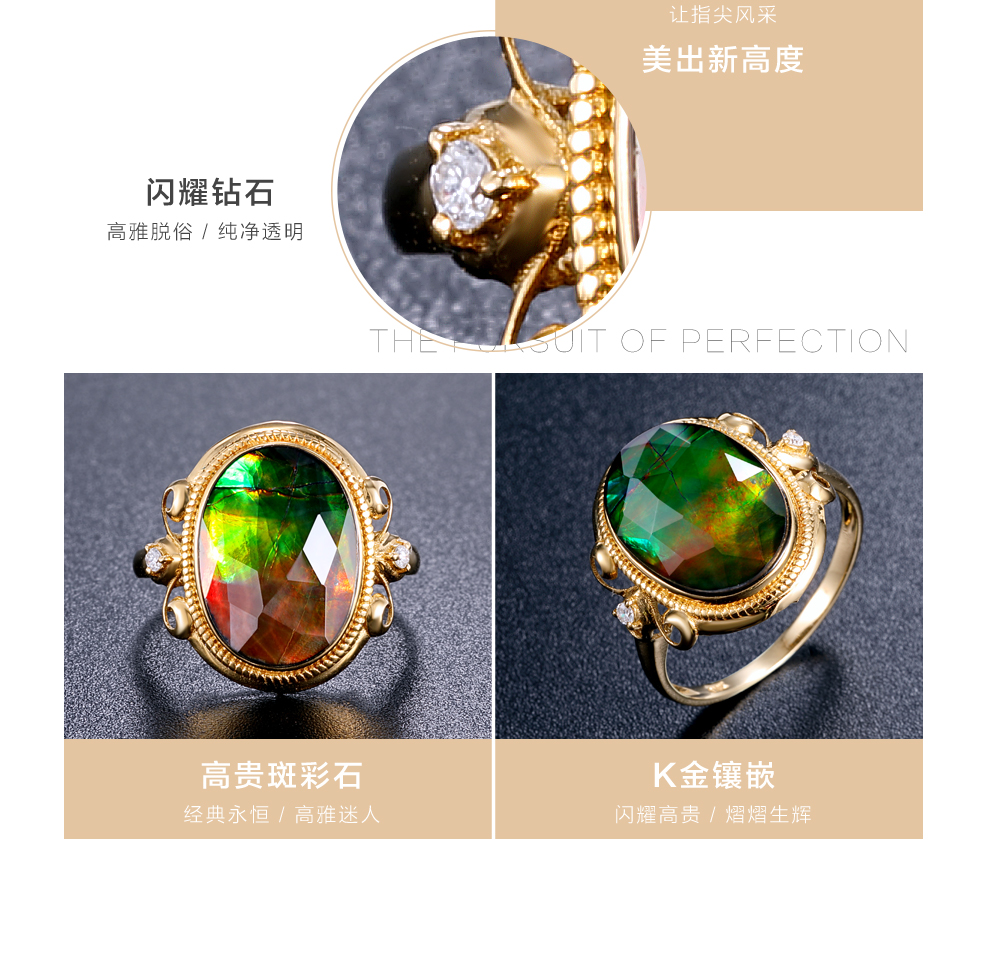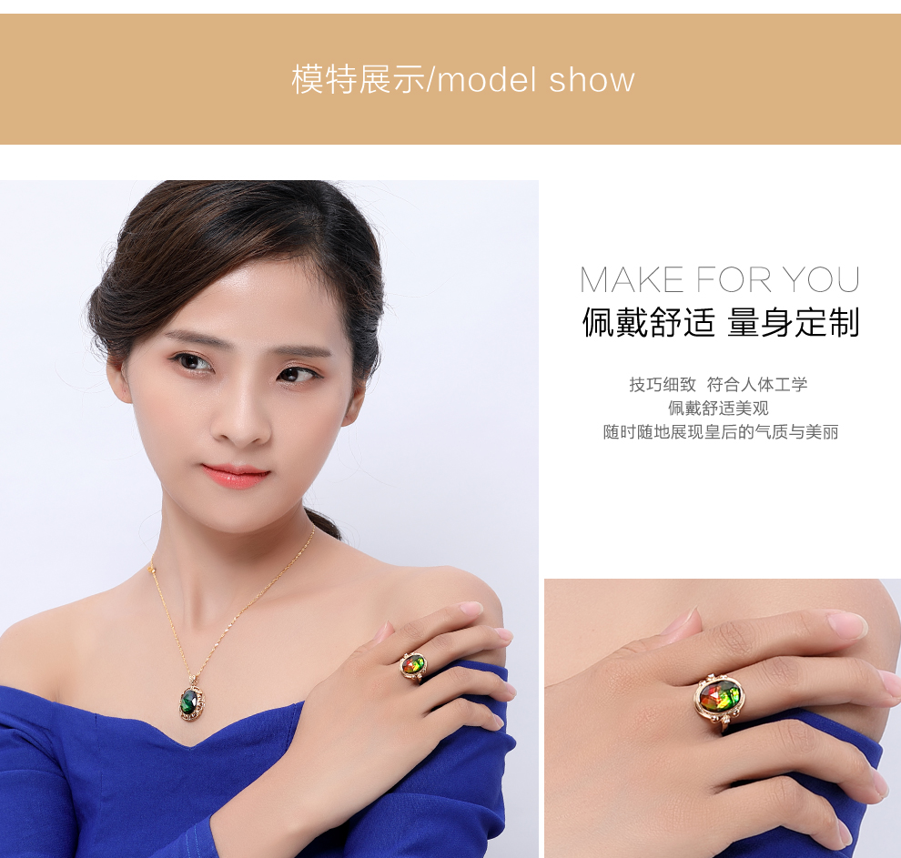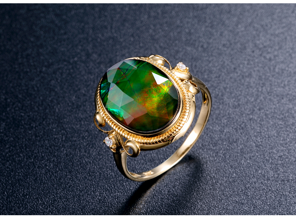 OUCERNY ammolite ring 18k rose gold set with diamond natural ammonite ring colorful women's ring women's model needs to be customized 5-7 days