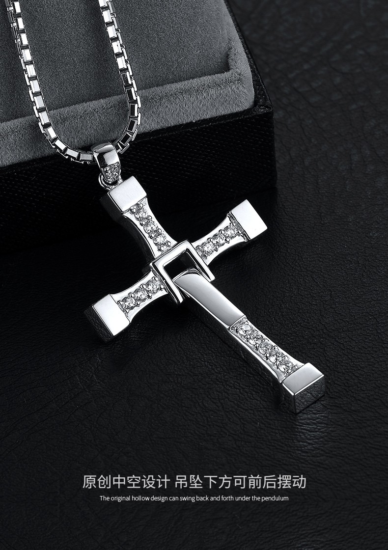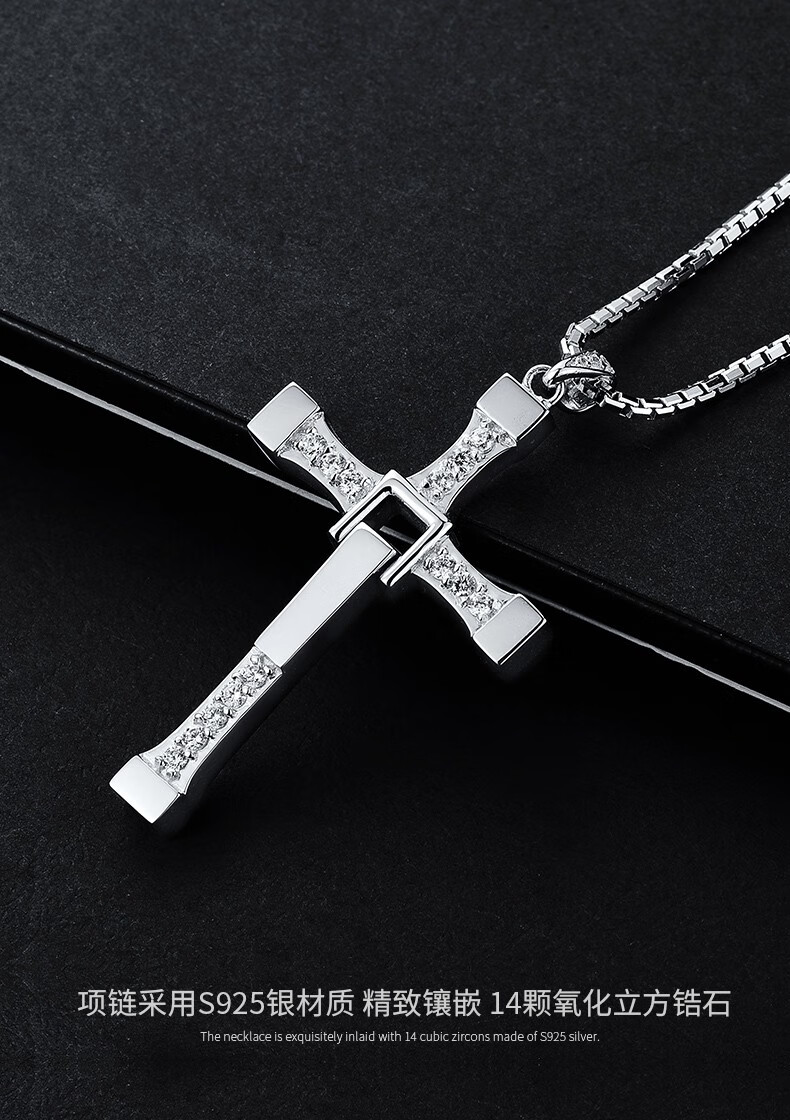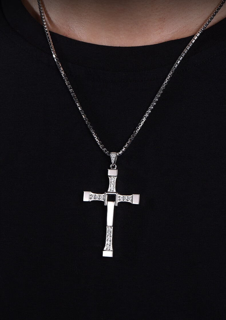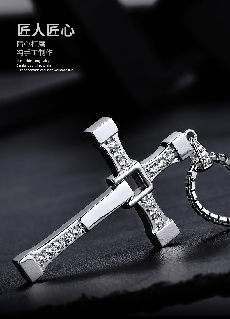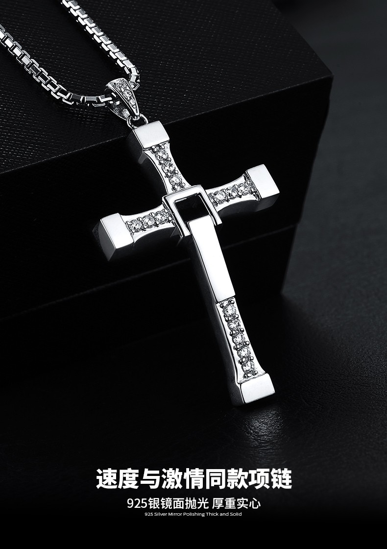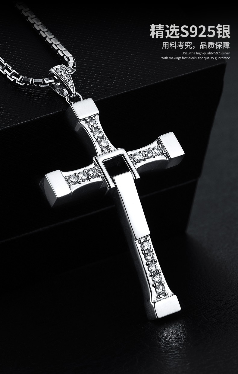 Mingyang Decorative Sea 925 Silver Cross Necklace Men's Trendy Fast and Furious Pendant Birthday Gift for Boyfriend Cross Pendant with Hexagonal Silver Chain 60CM