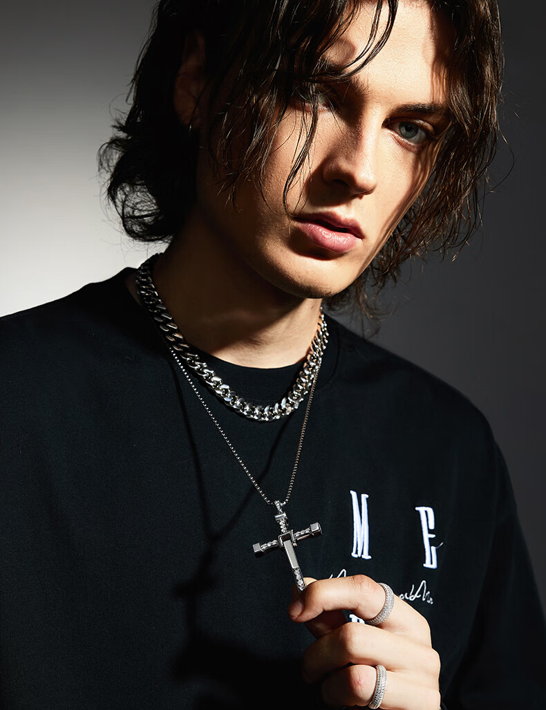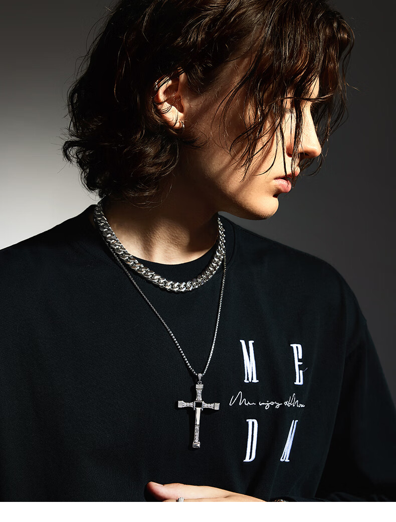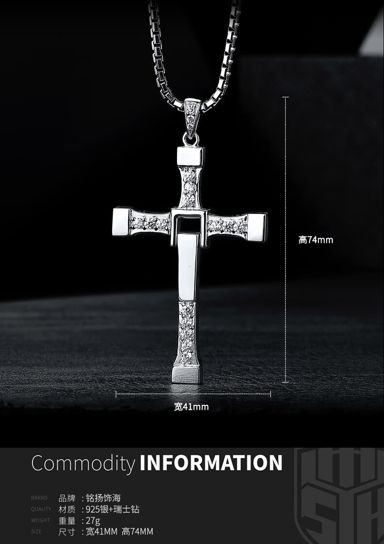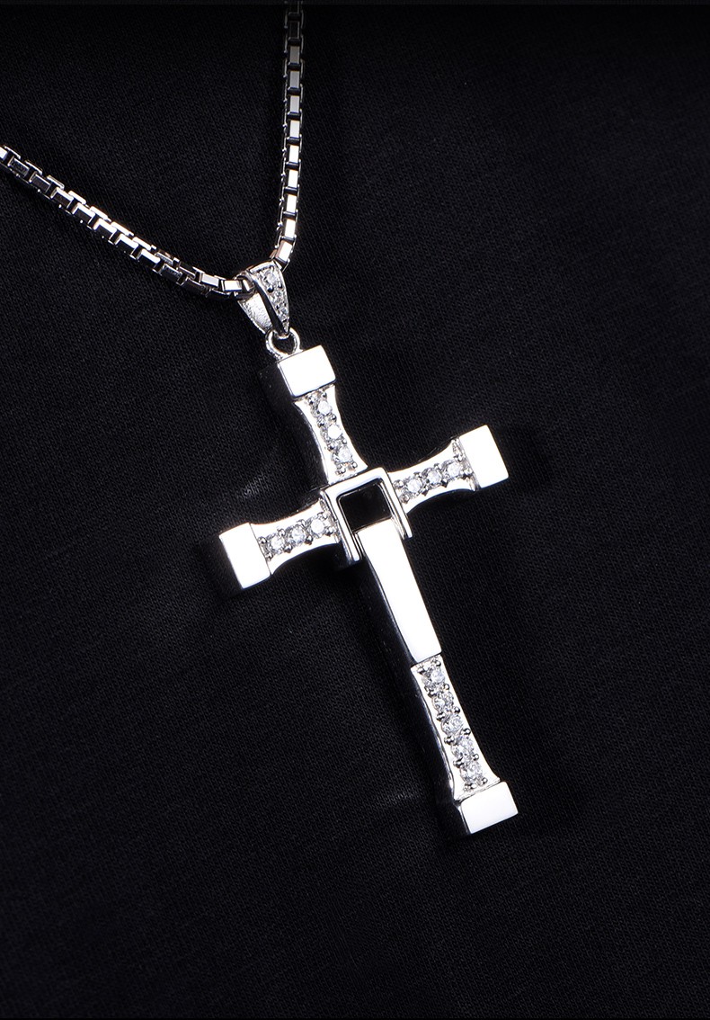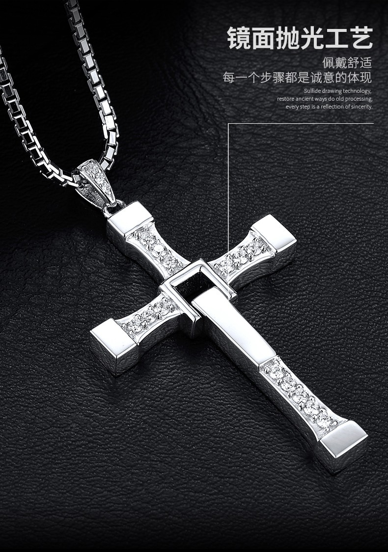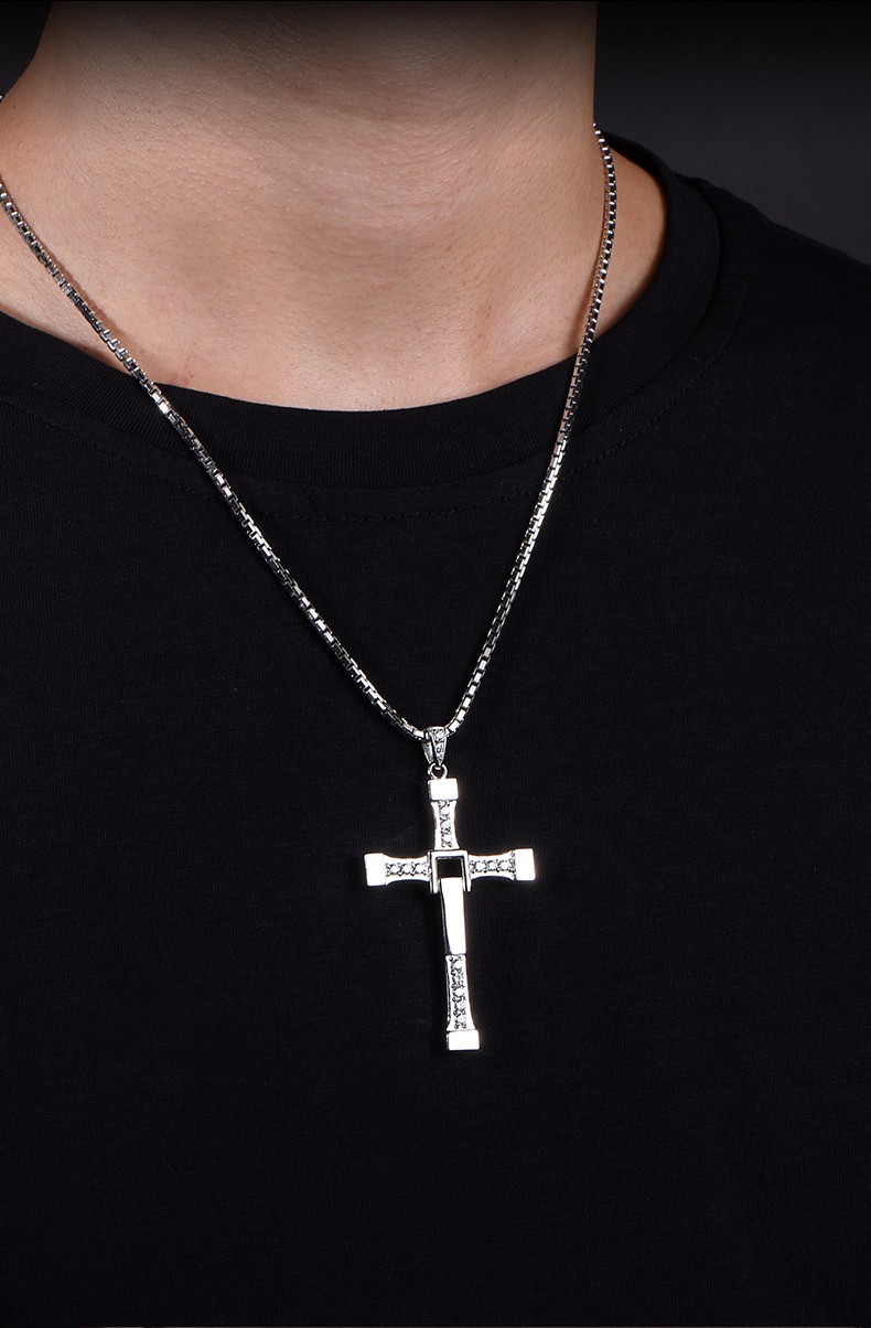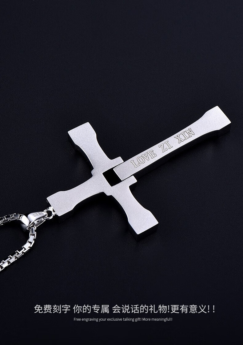 Mingyang Decorative Sea 925 Silver Cross Necklace Men's Trendy Fast and Furious Pendant Birthday Gift for Boyfriend Cross Pendant with Hexagonal Silver Chain 60CM