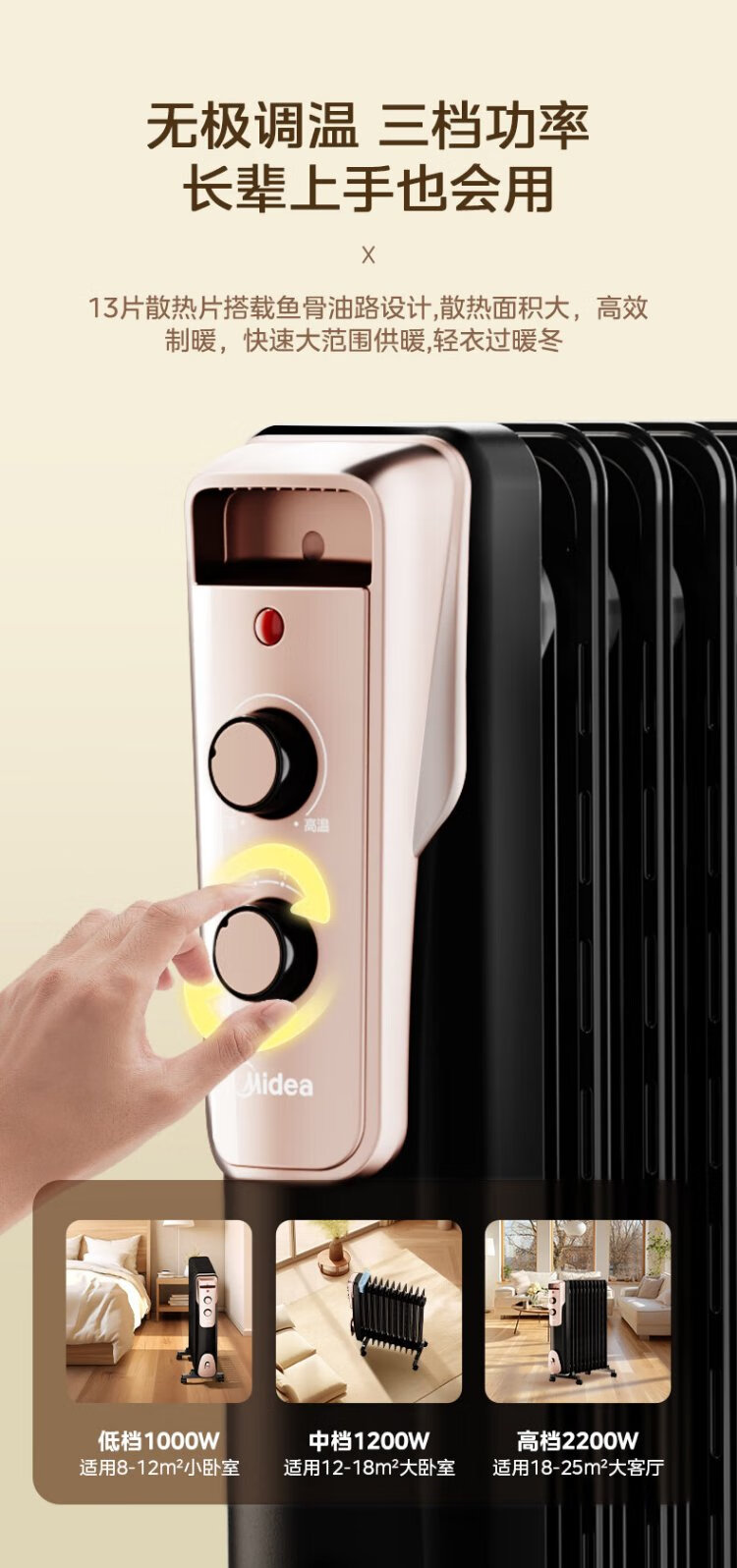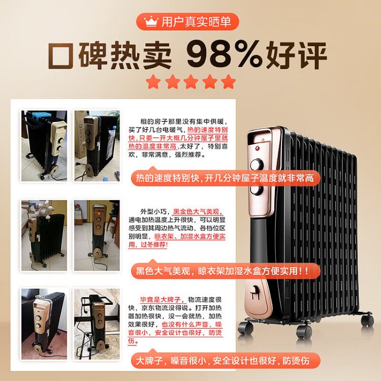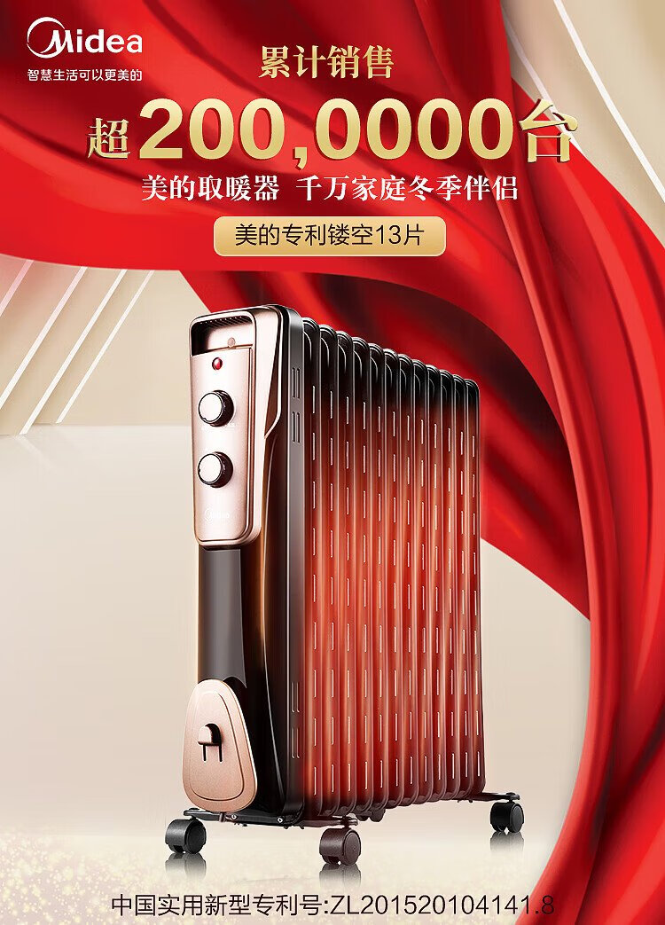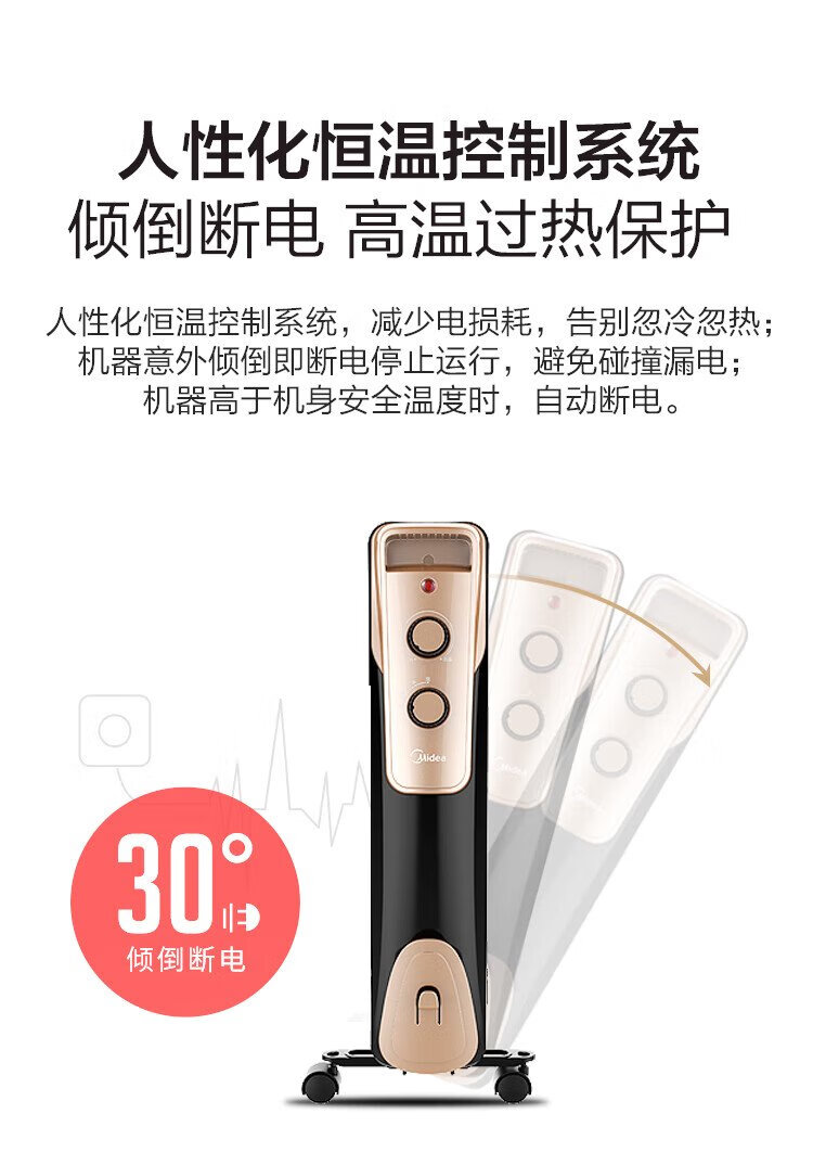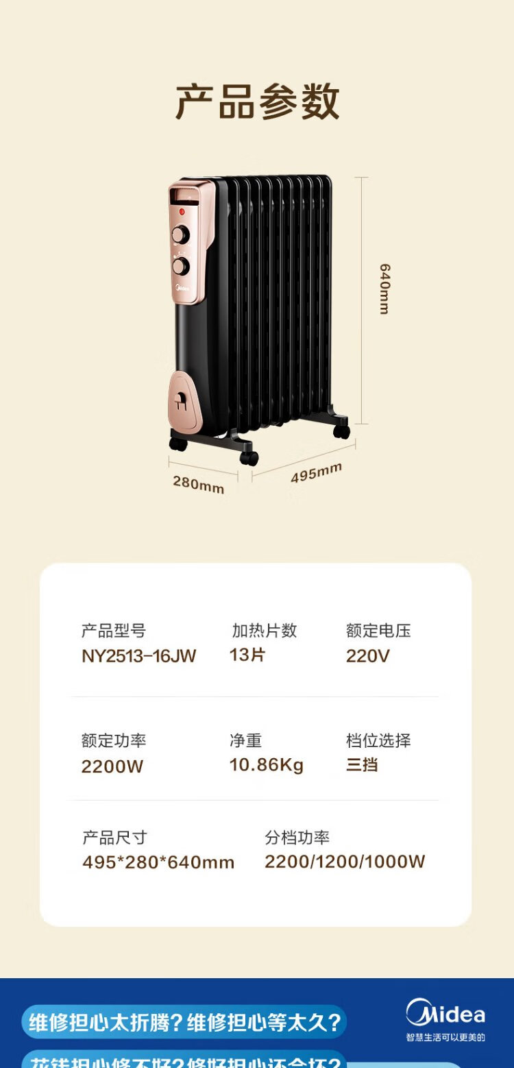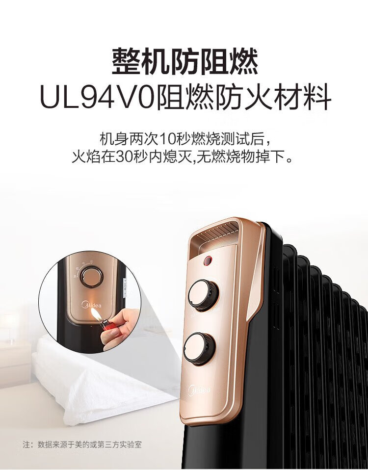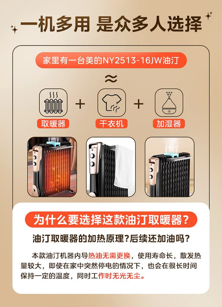 Midea super single product 13-piece electric oil heater, household electric heater, humidifying electric radiator heater, whole-house heating and fast-heating stove NY2513-16JW