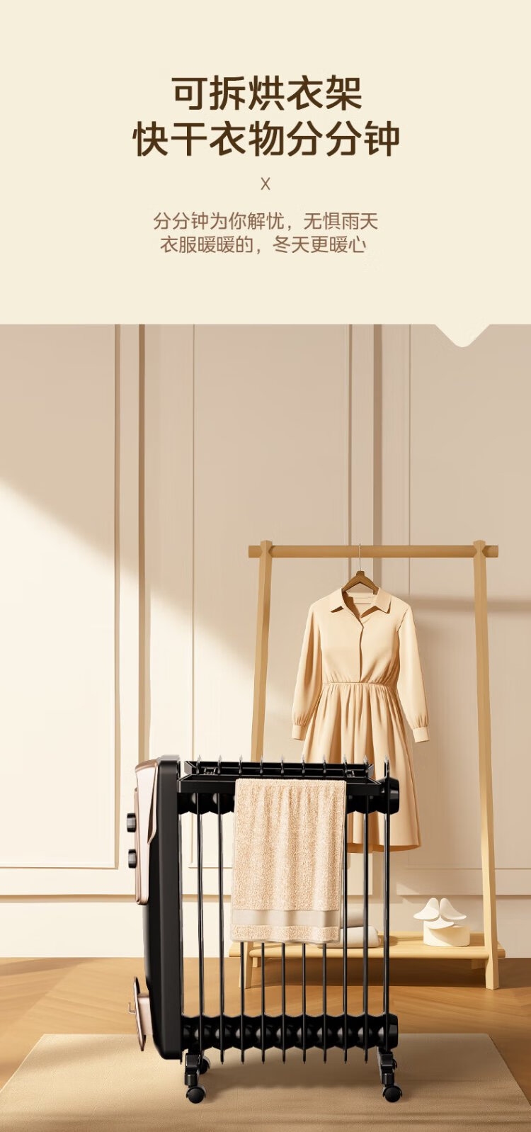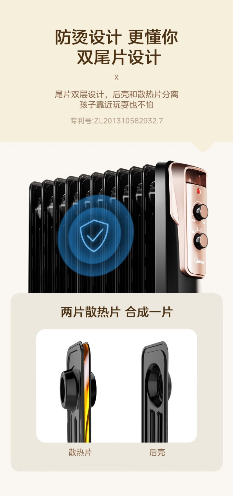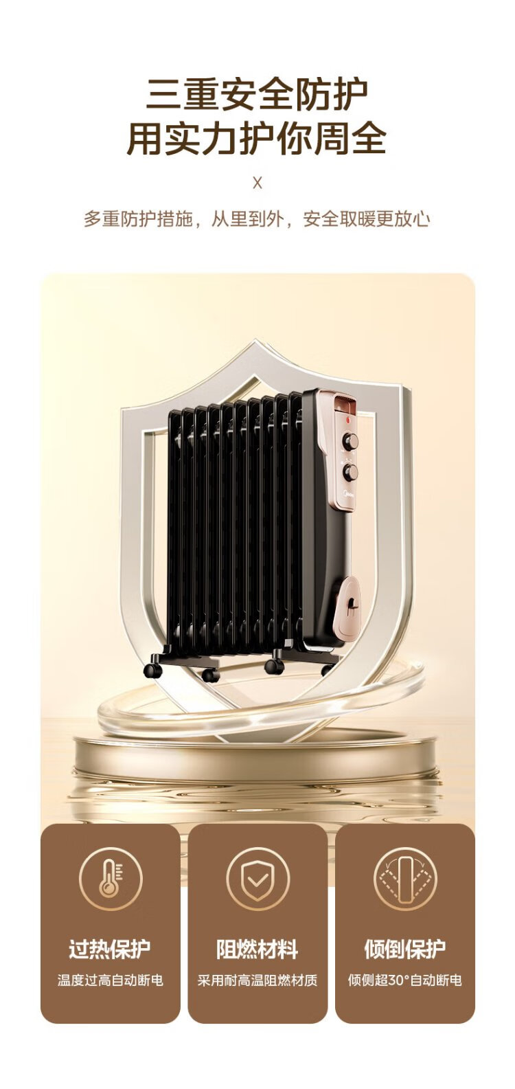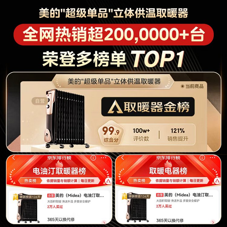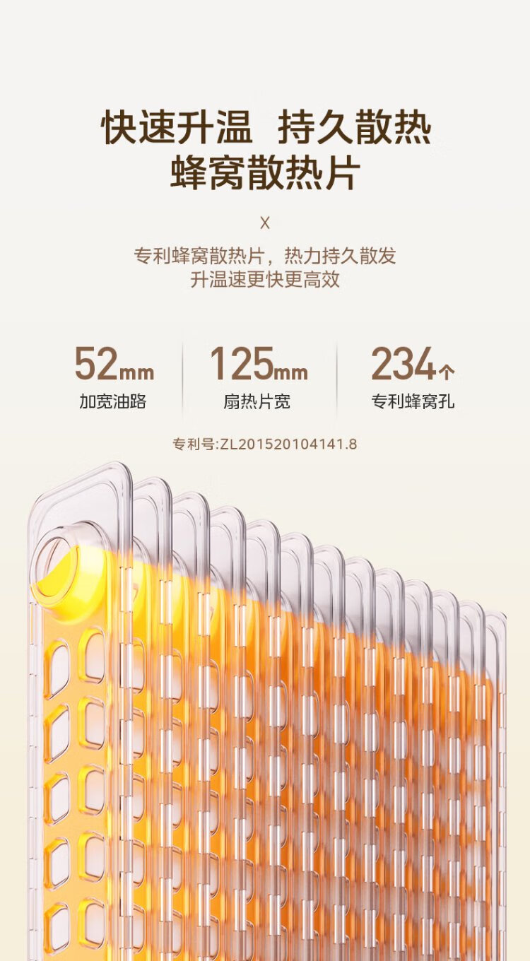 Midea super single product 13-piece electric oil heater, household electric heater, humidifying electric radiator heater, whole-house heating and fast-heating stove NY2513-16JW