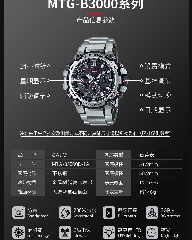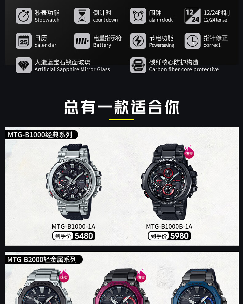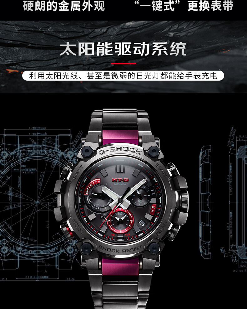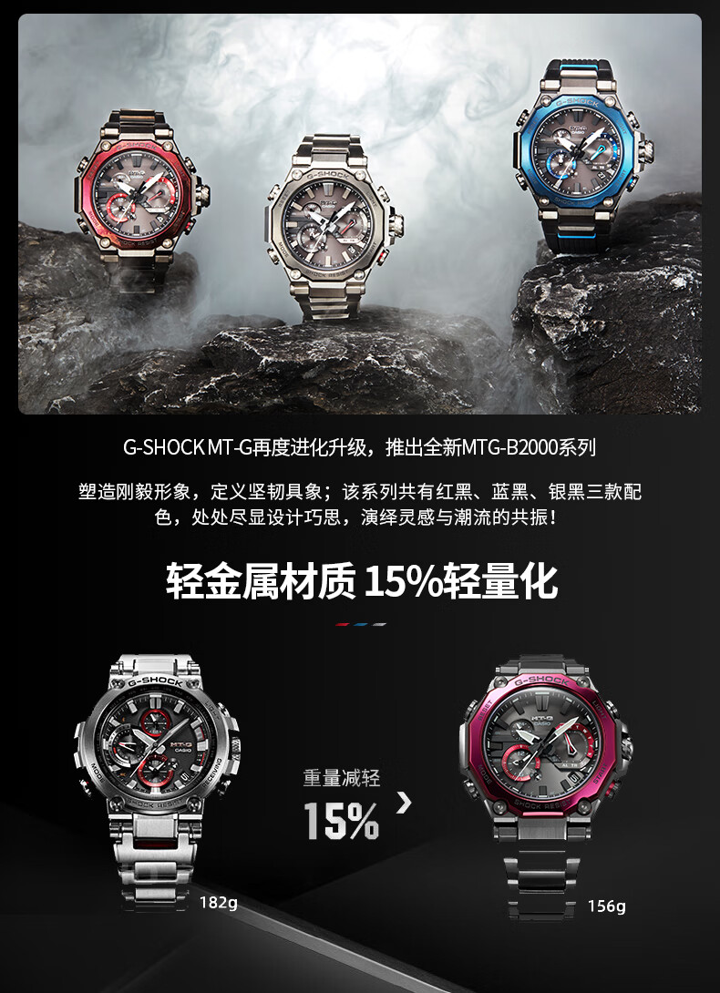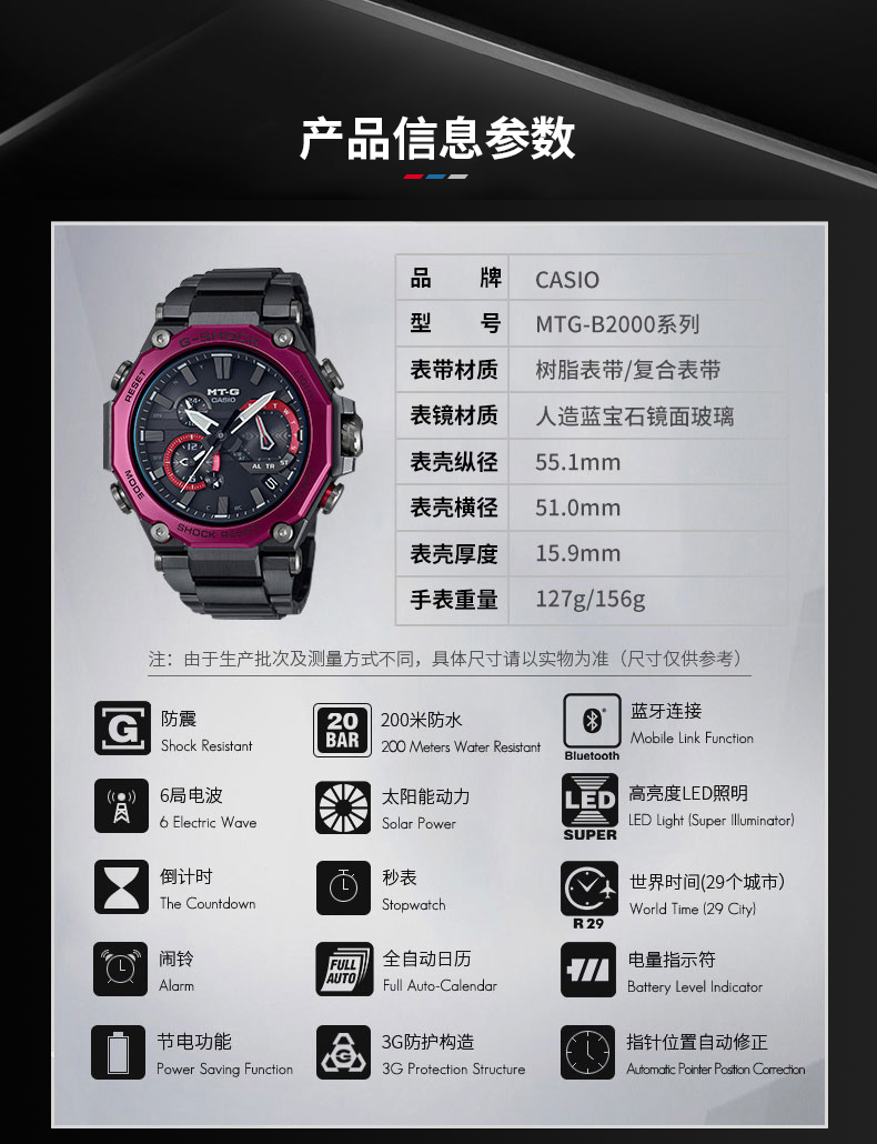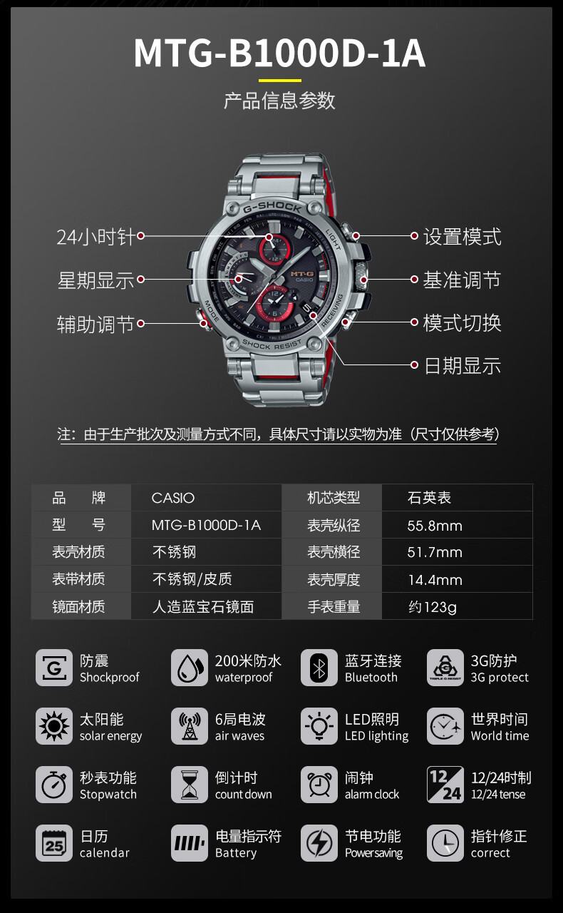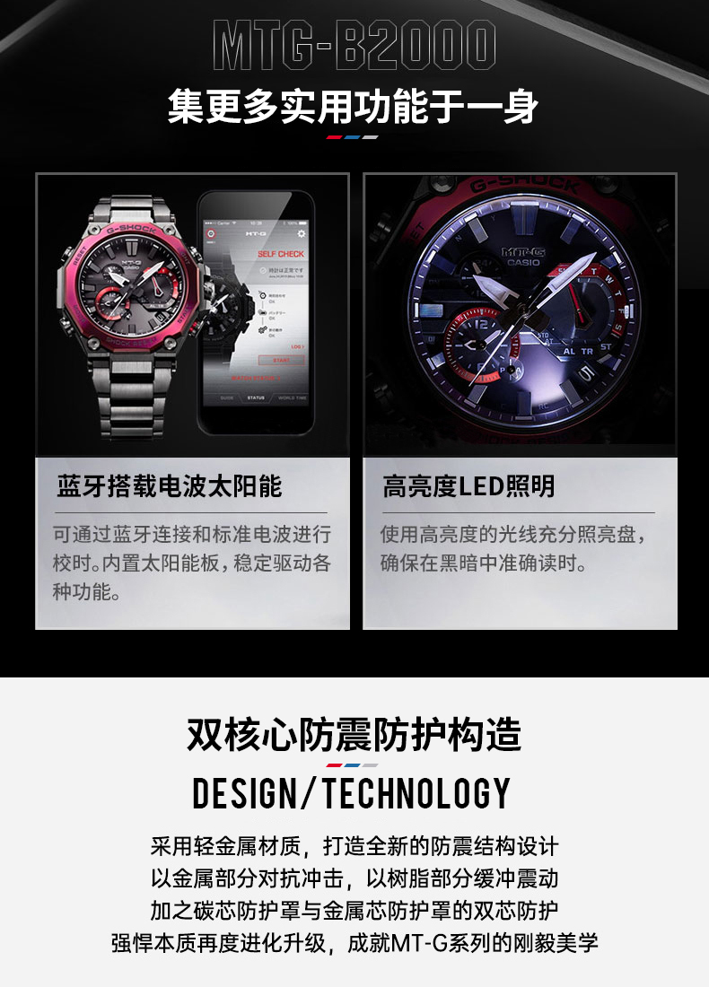 CASIO men's watch G-SHOCK MTG high-end business solar waterproof and shockproof sports watch MTG-B1000B-1A solar