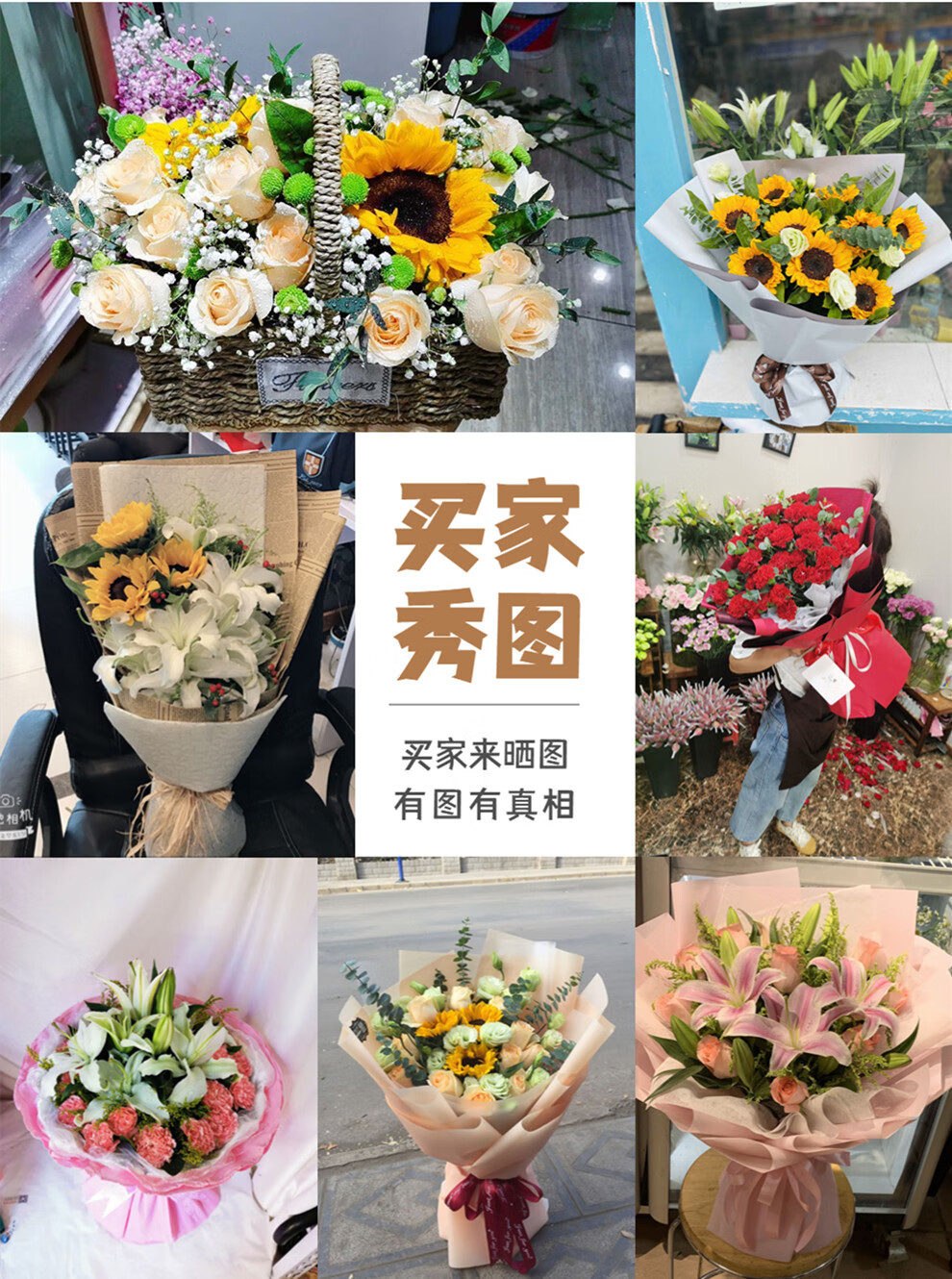 Eswina Flower Express mixed and matched bouquets birthday gifts delivered to flower shops in the same city nationwide Sunflowers and lilies mixed and matched