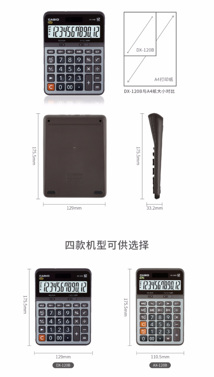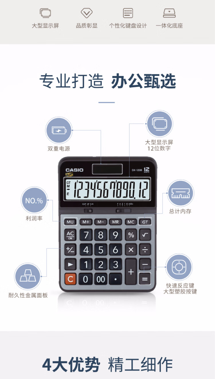 CASIO DX-120B business calculator mainframe desktop office gray silent model